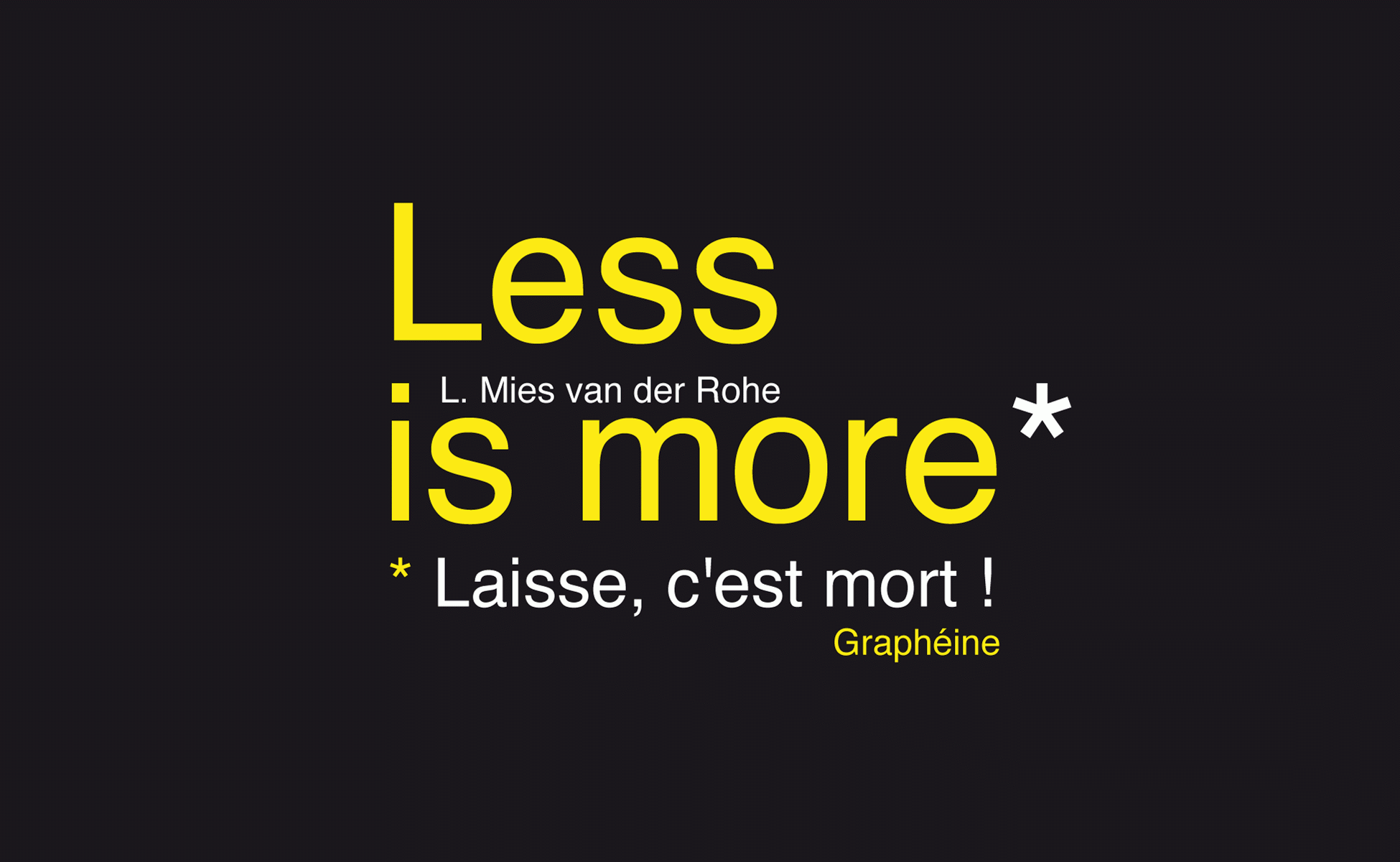 Less is more, ou laisse c'est mort ? En matière de graphisme, comme en architecture, on oscille depuis des siècles entre deux voies... le minimalisme ou le baroque... la simplicité ou la surcharge visuelle.