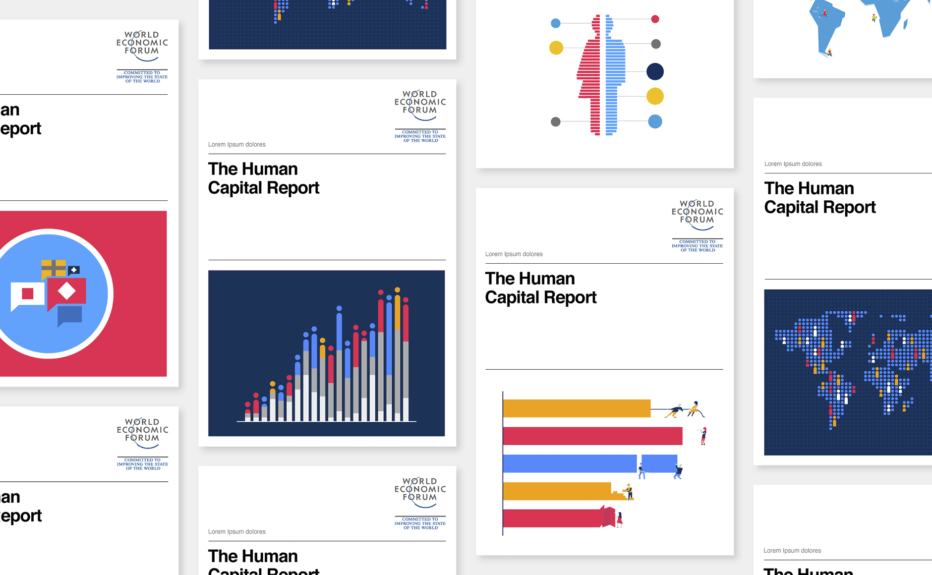 Depuis 2015 nous accompagnons le World Economic Forum (Forum économique mondial) par la réalisation d’illustrations de couvertures de rapports. Ces publications examinent en détail des enjeux d’ordre mondial.