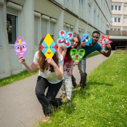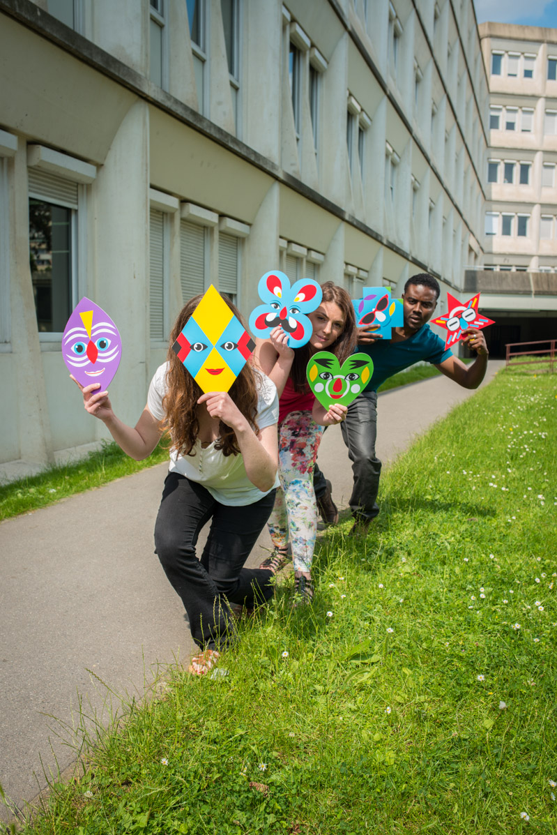 Afin de prolonger la campagne de communication, nous avons imaginé un concours photo. Il s'agit de proposer aux étudiants de se prendre en photo avec un masque Happy-Upec. A cet effet, les flyers de la manifestation ont été réalisés en forme de masque et distribués sur tout le campus. Des séances photo vont être organisées sur tout le campus la semaine prochaine.