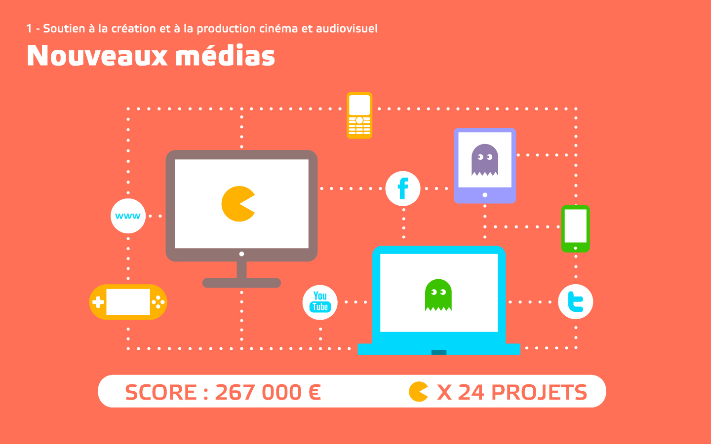 Il s'agissait de concevoir des écrans synthétisant le bilan de la politique régionale en matière de cinéma et d'audiovisuel.