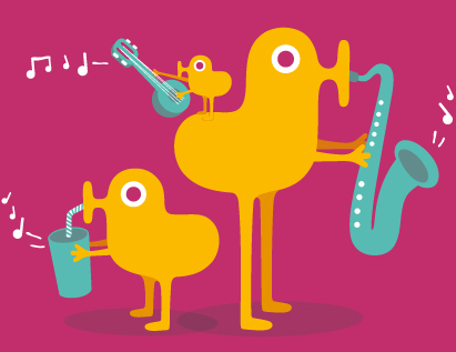 Cette année, pour le nouveau visuel de "Ramp'art festif", il s'est passé quelque chose d'étrange... Ce qui était au départ des poussins ou des canards... on a jamais trop su en fait ?! Bref ça n'a plus vraiment d'importance vu la dégaine qu'ils sont en train de prendre ! Regardez moi ces pieds et ces bras ridicules... et je ne vous parle pas de l'espèce de trompe qu'ils ont à la place du bec !!! Qui a pondu un truc pareil ? .... Ah !