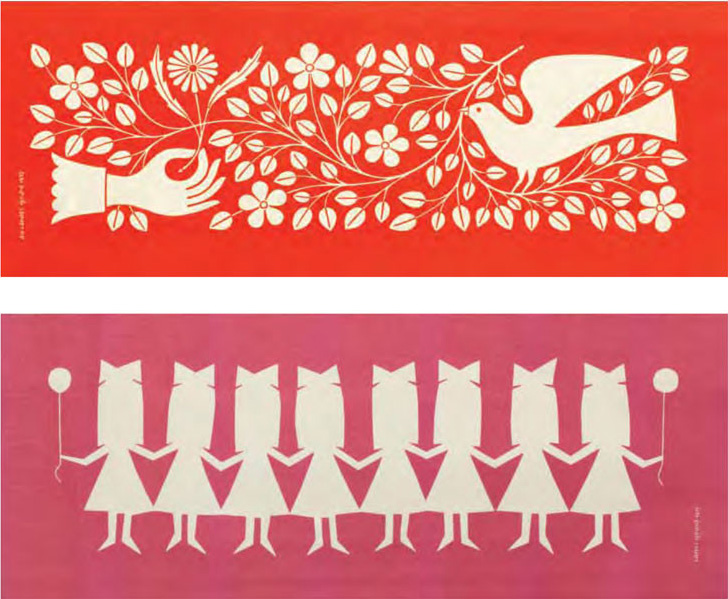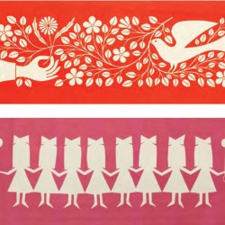 L'influence de l'art populaire se fera sentir tout au long de sa carrière. Cela se retrouve dans le caractère "fait main" de ses œuvres, par exemple ci-dessous, pour cette collection de papier peint.