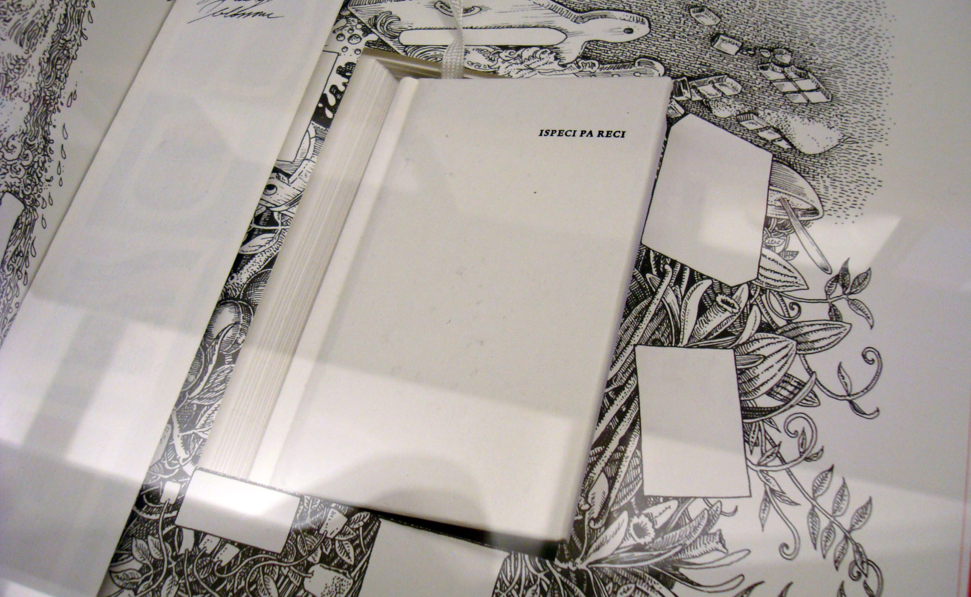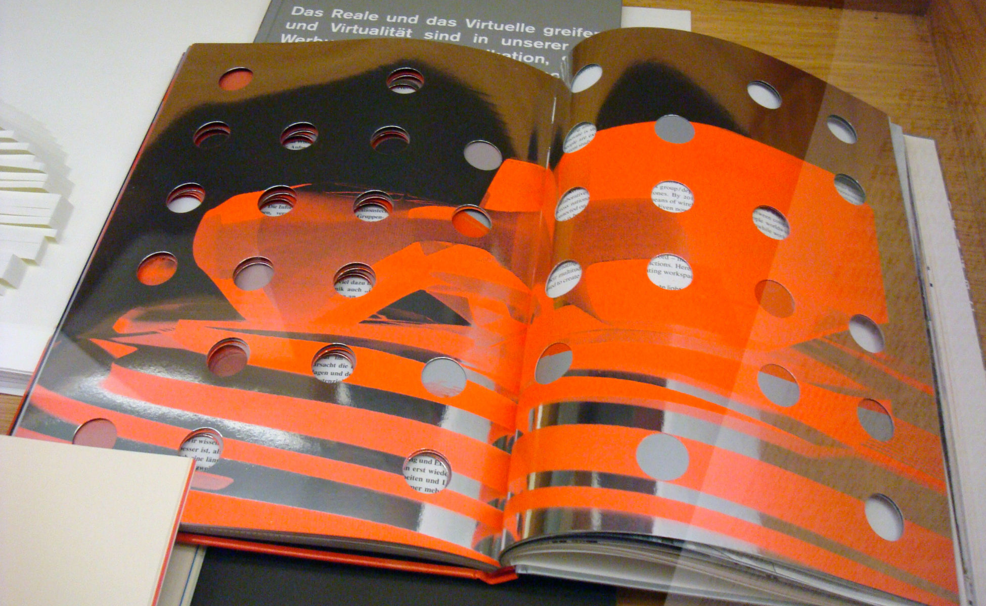 Parmi les ouvrages présentés, certains se focalisent sur la présentation de l’objet, sur la couverture, avec des choix d’impression particuliers (sérigraphie, vernis sélectif, absence de massicotage), un livre niché dans un autre plus gros, une couverture-objet, ou encore une reliure apparente… D’autres s’attardent davantage sur la mise en page, avec l’insertion d’intercalaires, de photos argentiques volantes, l’utilisation des techniques de pop-up, d’encarts qui se déplient, de la découpe laser, de perforations … Cette exposition offre un panorama des possibilités de l’imprimé.