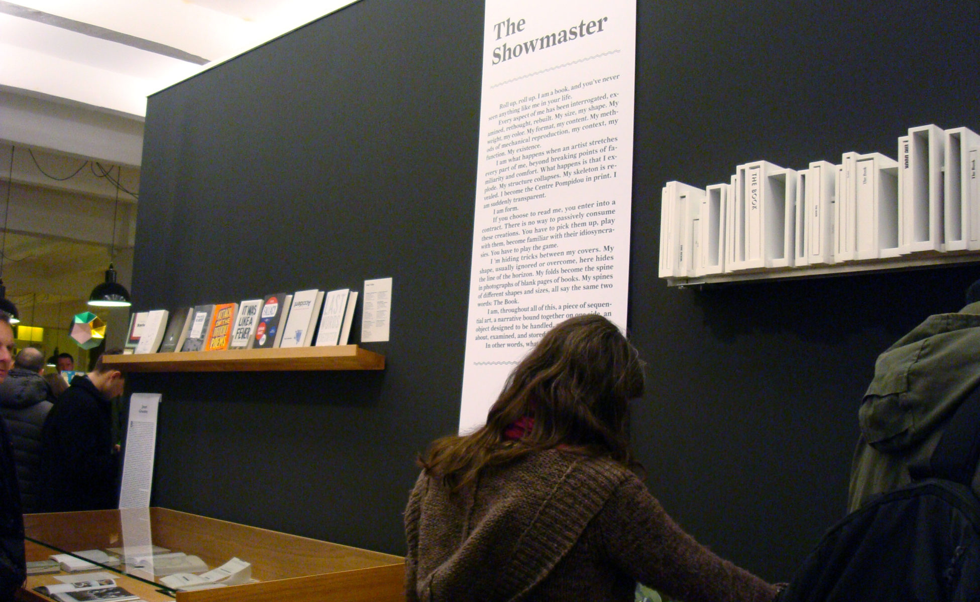 L’exposition suit l’organisation du livre qui se structure autour de 5 chapitres : The Storyteller, The Showmaster, The Teacher, The Businessman, et The Collector. Cette exposition présente plus de 200 ouvrages innovants que l’on retrouve dans le livre qui porte le même nom.