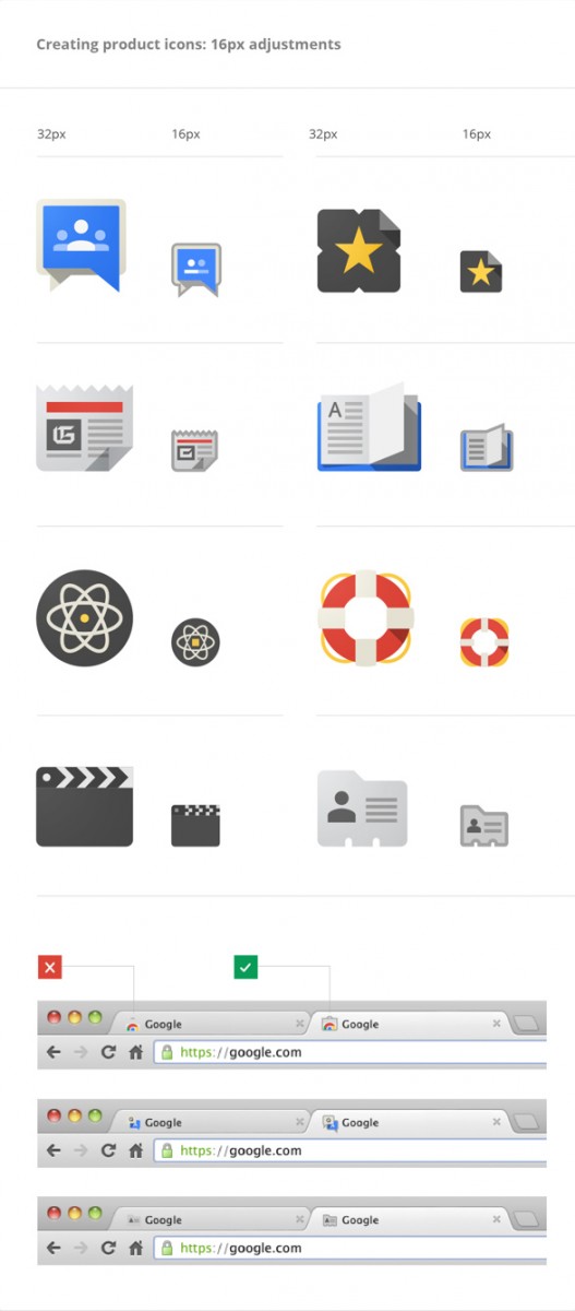 Récemment, la charte graphique qui regroupe ce travail a été publiée. Il s'agit d'une véritable leçon de design, où le moindre pixel n'est jamais envisagé à la légère. Quand on connait l'histoire de Google, et comment ils ont su s'imposer grâce à une page de recherche toute blanche (no-design) face à la bavarde page de Yahoo, cette charte graphique minimaliste n'étonnera personne. La voici en détail :