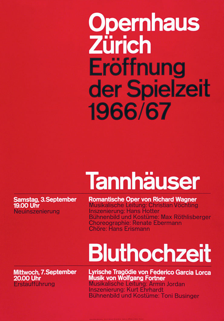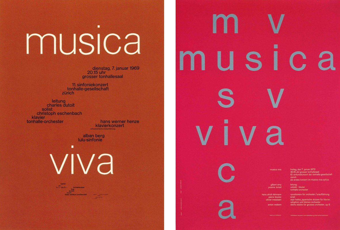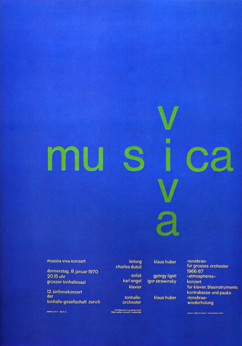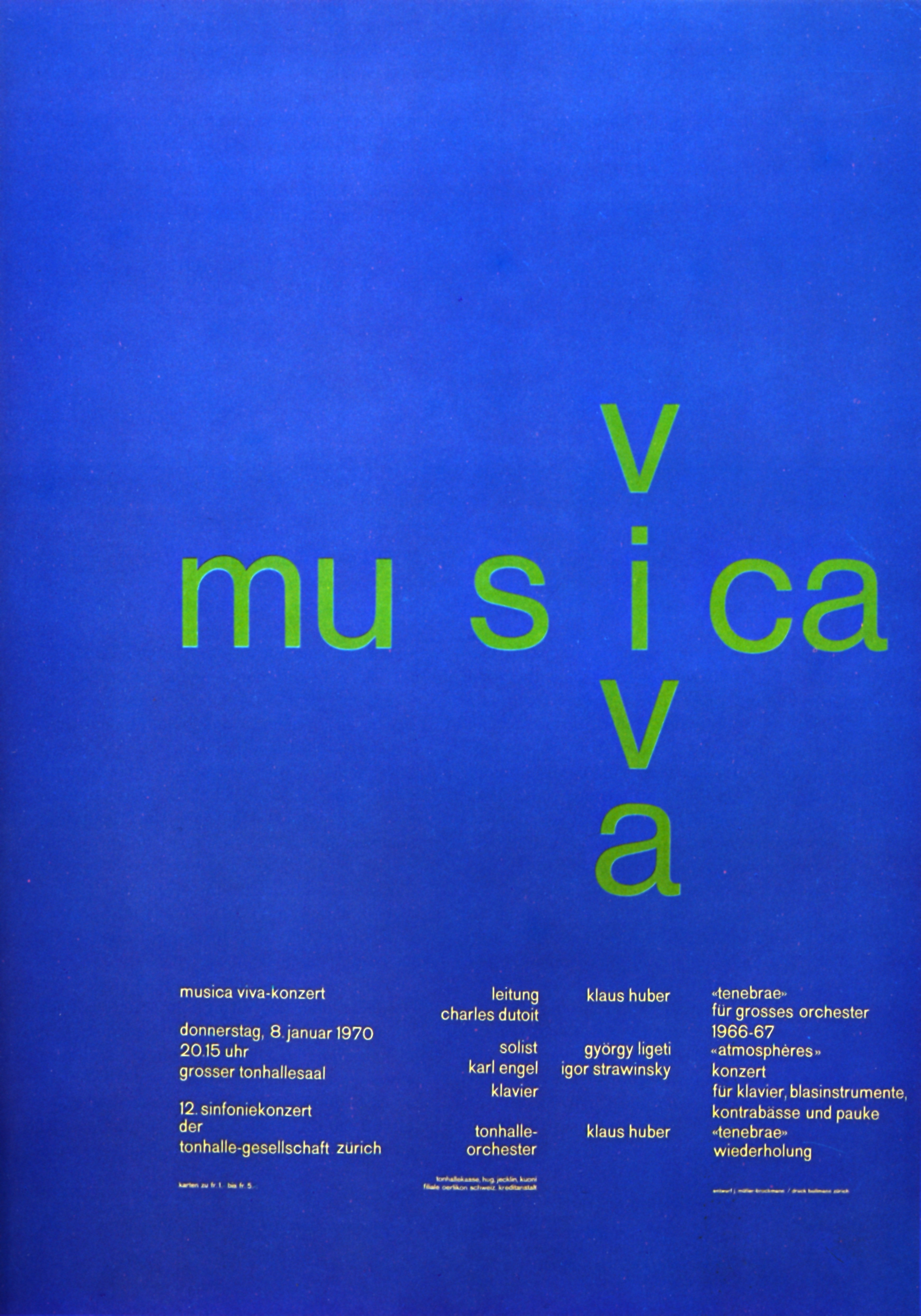 Nous-mêmes chez Graphéine, nous ne pouvons nier son influence. Les affiches que nous avons réalisées pour le Chœur et Orchestre de l'Université Paris-Sorbonne en sont un bon exemple ! D'ailleurs elles sont composées en Akzidenz Grotesk, la typographie de prédilection de Brockmann !