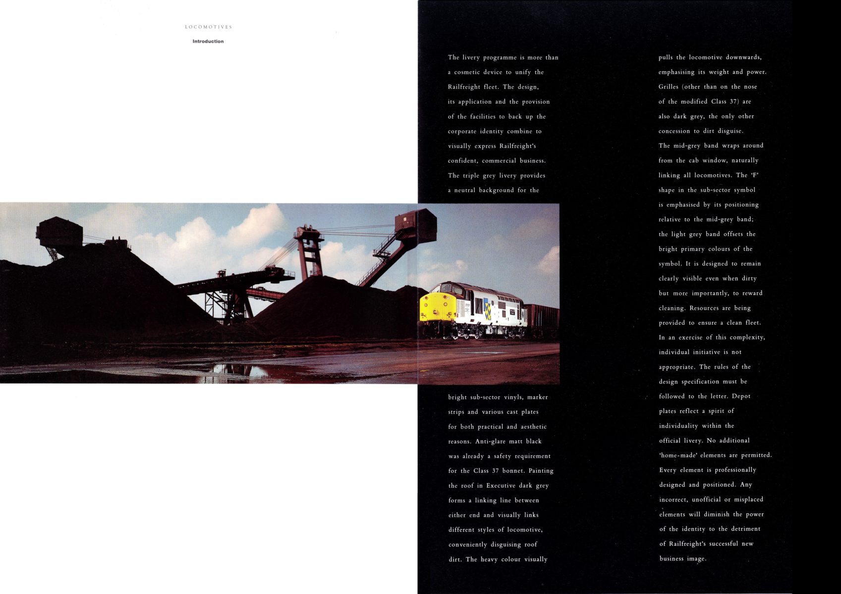 D'une part parce que le secteur du fret est loin d'être le plus glamour, et parce qu'il traversait à l'époque (c'est toujours le cas) des difficultés financières. Ces trains qui transportaient charbon, pétrole et autres marchandises faisaient plutôt profil bas et passaient inaperçus, parce qu'ils représentaient le côté obscur de la compagnie. C'est l'agence Roundel Design Group qui se charge en 1987 d'ajouter un peu de couleur à ces trains naturellement gris métallisés.