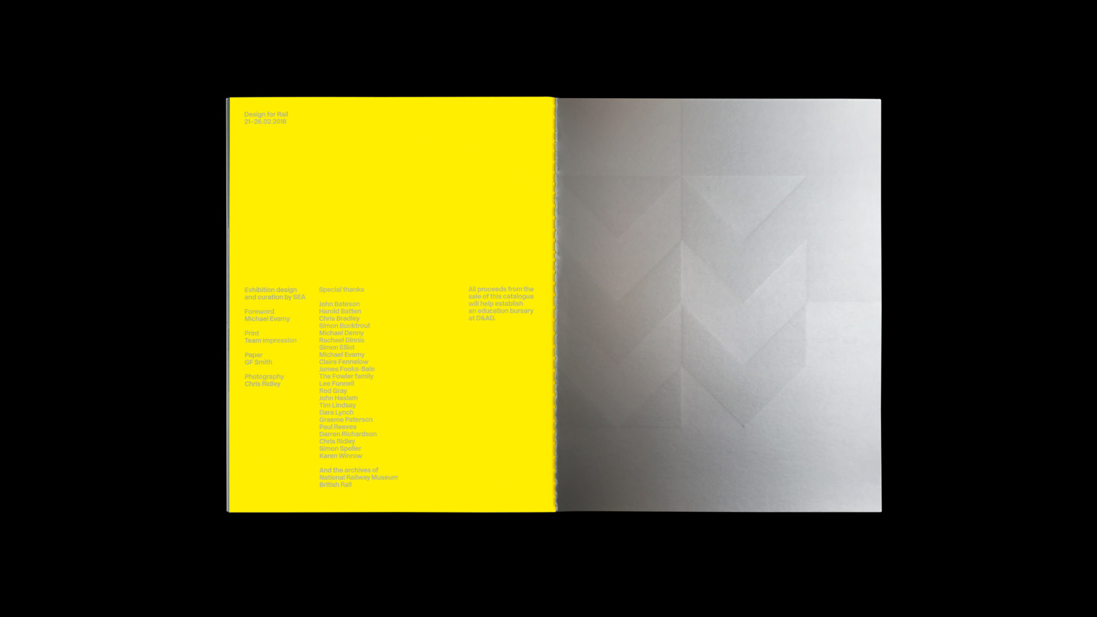 L'exposition se s'organise autour d'archives de l'époque. Nous avons mis l'accent sur les documents imprimés tels que la charte graphique, les brochures, les calendriers, la signalisation et les icônes. J'avais personnellement quelques archives du projet, mais la plupart ont été prêtées par les fondateurs de chez Roundel avec le soutien du Musée National des Chemins de Fer. Nous avons également localisé et récupéré un panneau de dépôt de train existant du Hampshire - avec la permission de l'opérateur ferroviaire actuel !