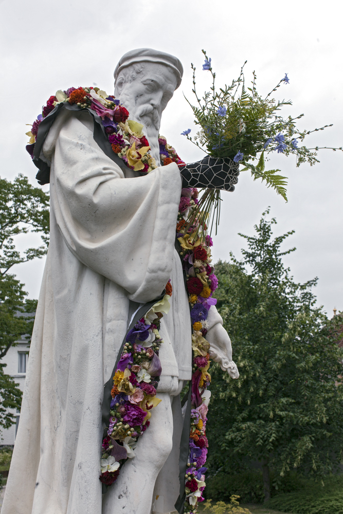 Autre style que l'on n'avait encore jamais vu, Geoffroy Mottard coiffe les statues avec des parures de fleurs. Un moyen poétique d'ajouter un peu de couleur dans la ville et d'habiller ces corps froids, et d'offrir un nouveau regard sur notre environnement urbain ! Du "street art" devenant land art, ou l'inverse ?