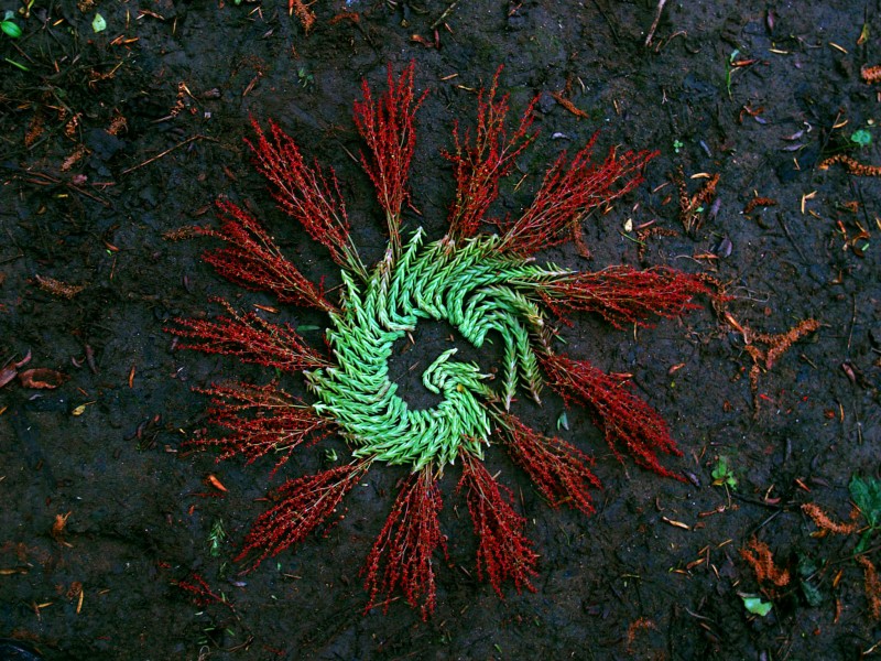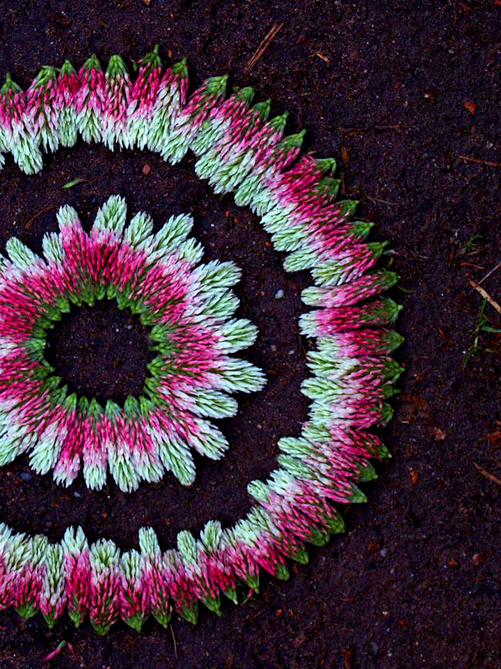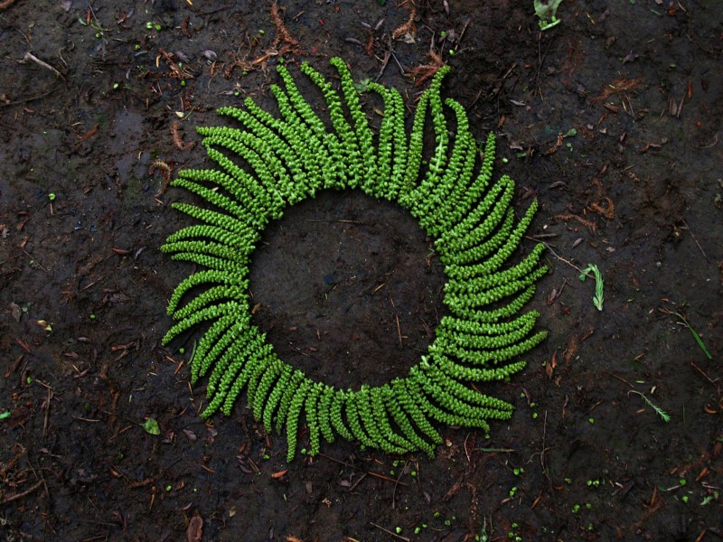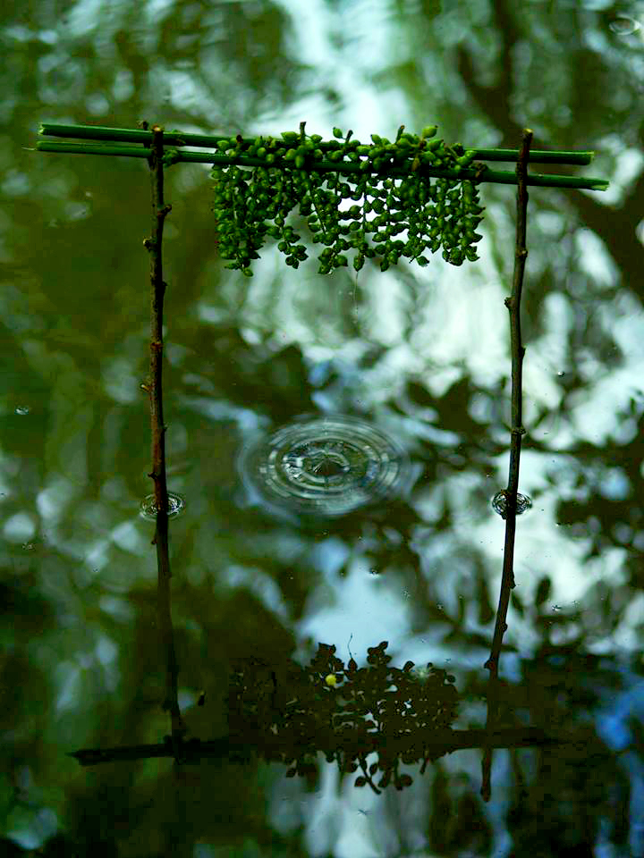 Des sculptures et géométries végétales ensorcelantes réalisées au cœur de la nature. "woodwork", "Mirror of water"et "abyss/hell" sont des orfèvreries éphémères immortalisées en photographies.