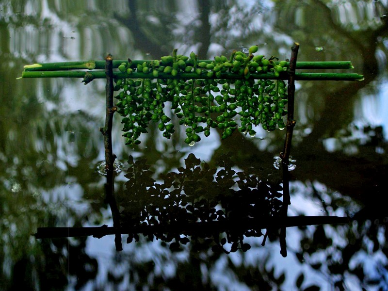pour moi je trouve toutes ces préparations photographiées superbement originales ; tous ces bambous disposés sur l’eau