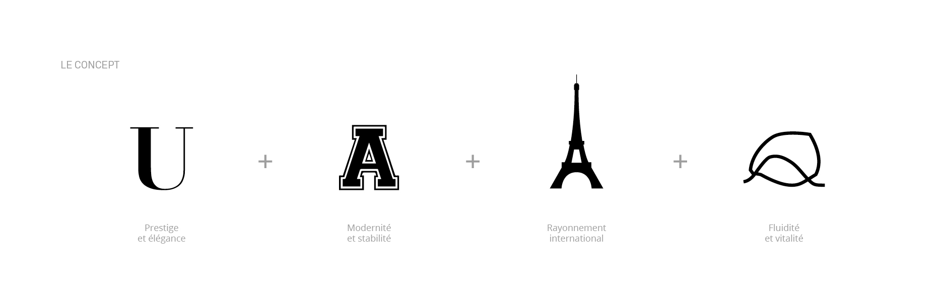 The logomark is a monogram in the tradition of seals and stamps used by craftsmen and major fashion houses to sign the quality of their works. By combining the letter U and a stylized representation of the Eiffel Tower with the appropriate design, we create a symbol that gives the impression that it has always been around.