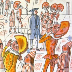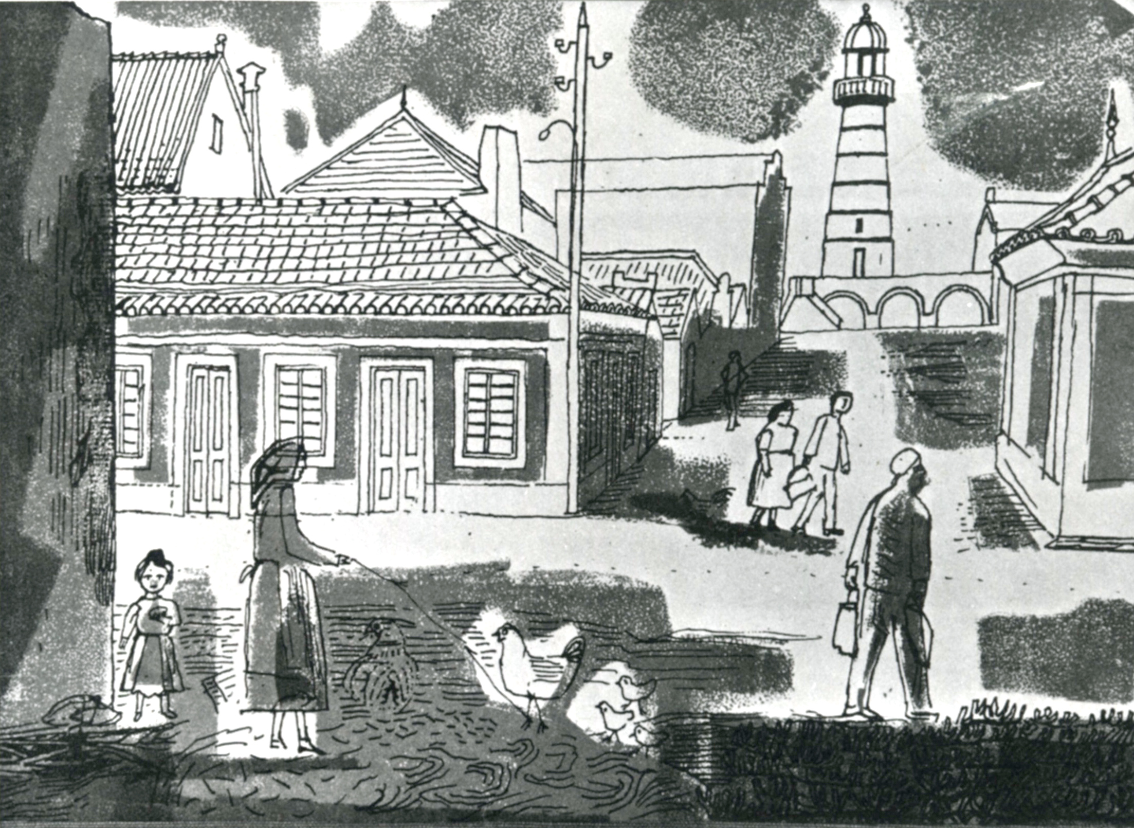 Edward Bawden (1903-1989) était apparemment un enfant solitaire. Sa jeunesse fut partagée entre des cours de dessins où il recopiait des dessins de chats et des après-midi passés à le chasse aux papillons. Sa vie fut passée à dessiner un monde avec beaucoup de féérie...