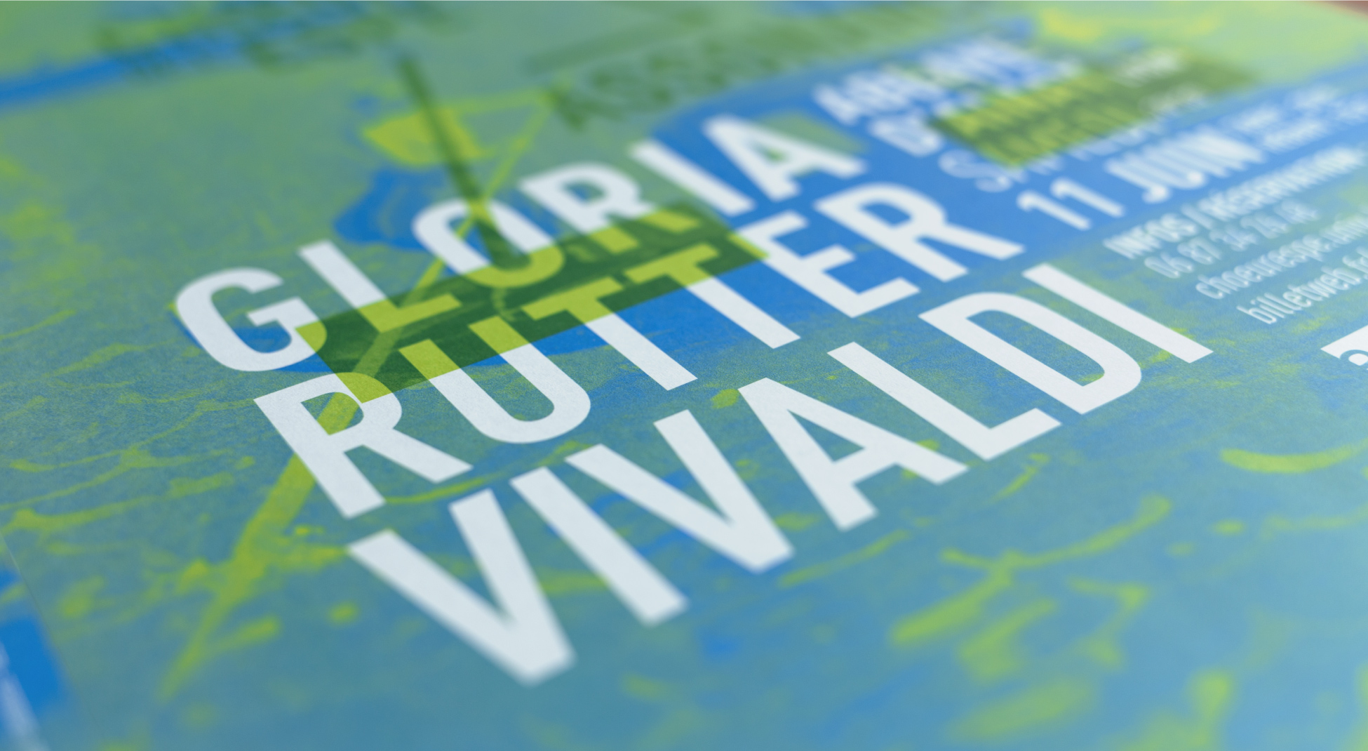 Il s'agissait là de l'enjeu principal de ce projet. Comment porter un regard actuel sur des œuvres anciennes, sans dénaturer le propos ? En choisissant de nous plonger dans un répertoire pictural classique, généralement des œuvres contemporaines aux compositeurs joués, nous n'engagions pas spécifiquement une relecture contemporaine. C'est donc à travers le cadrage, et le choix de la couleur que cette modernité va transparaitre. La composition typographique qui s'articule autour d'un logo moderniste vient danser avec la peinture classique. C'est à cet instant que l'ensemble prend un sens nouveau, comme une relecture contemporaine.