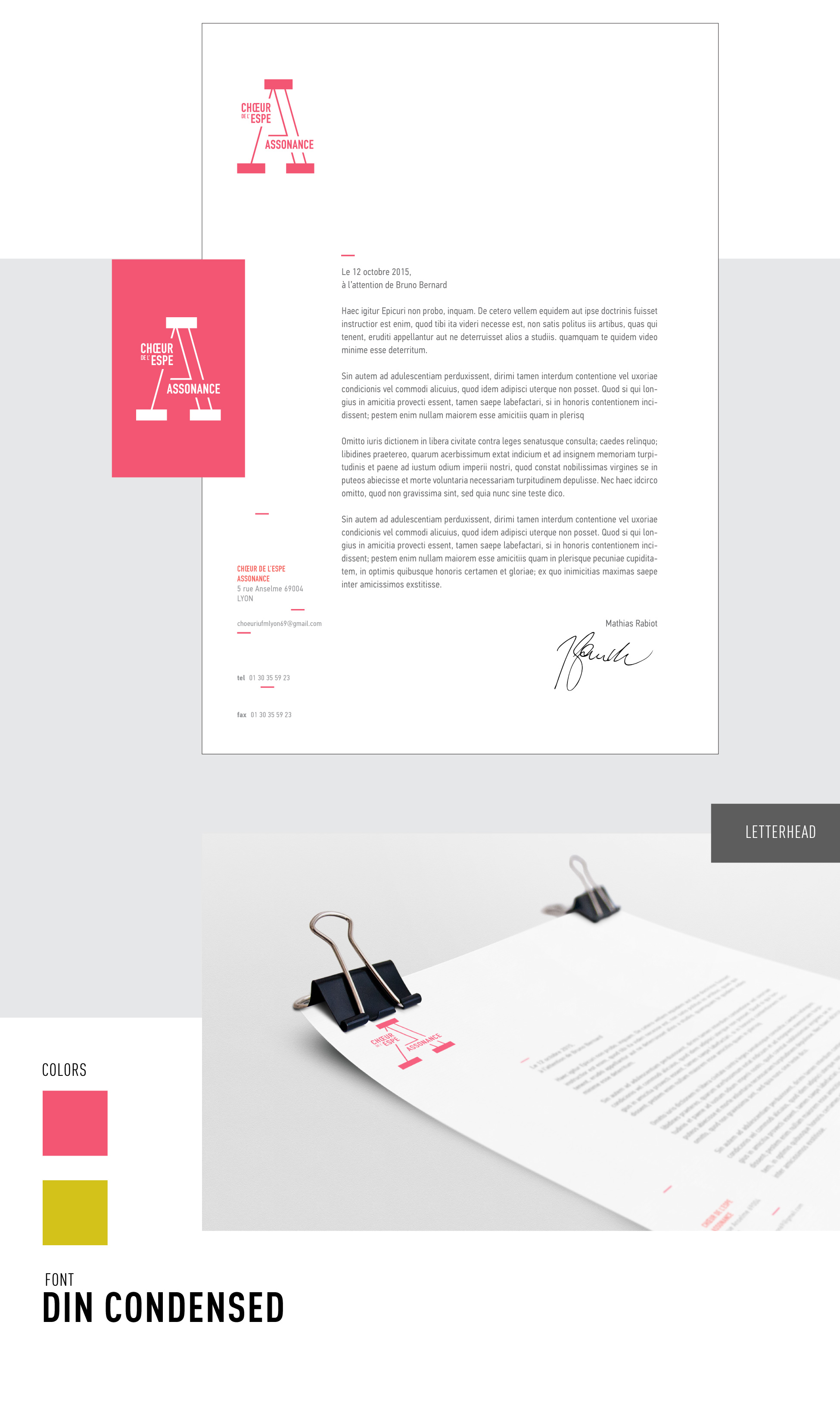 Conception de l'identité du Chœur de l’ESPE – Assonance, il s’agit d’un chœur mixte de plus d’une centaine de voix. Ce choeur s’adresse aux enseignants actifs ou retraités, aux étudiants et stagiaires le l’ESPE (Ex-IUFM). Il est également ouvert à toute autre personne. Il a pour but de faire pratiquer une activité vocale d’ensemble afin de prolonger, au sein de l’ESPE, la formation musicale et pédagogique des étudiants, des stagiaires et des enseignants.
