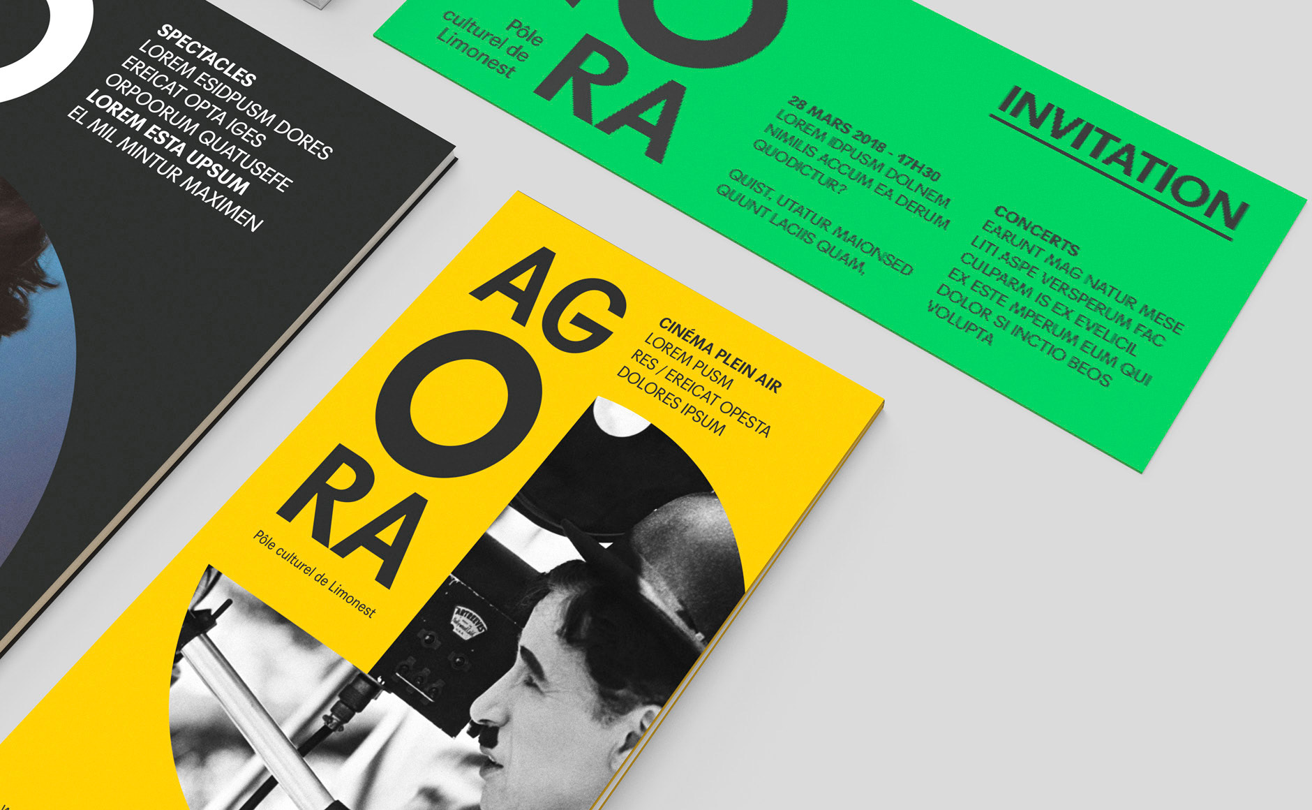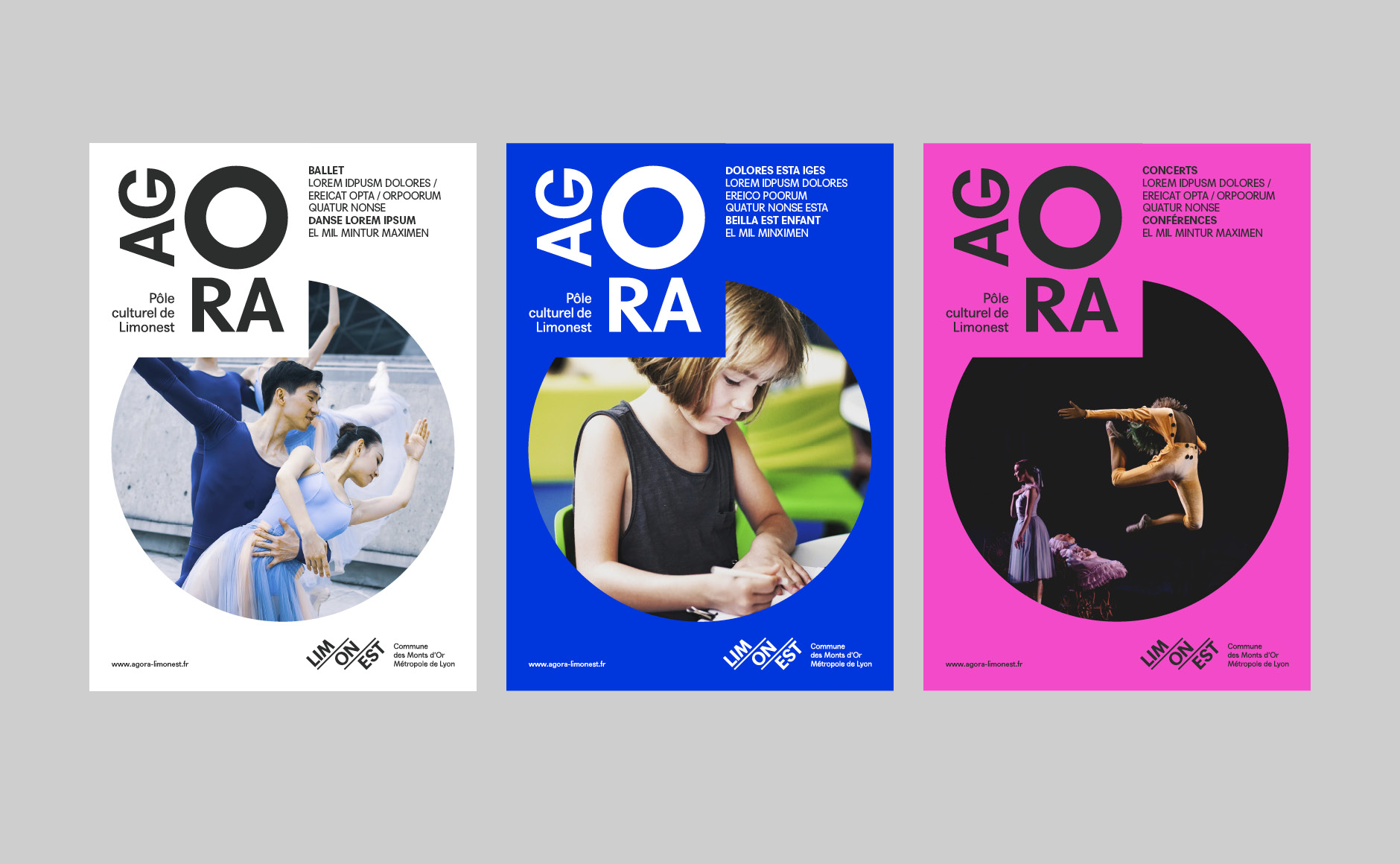 On peut constater que les logotypes de l'Agora et de la Ville de Limonest, par leur simplicité géométrique (triangle / rond) et le lien typographique qui les unit, fonctionnent parfaitement ensemble.