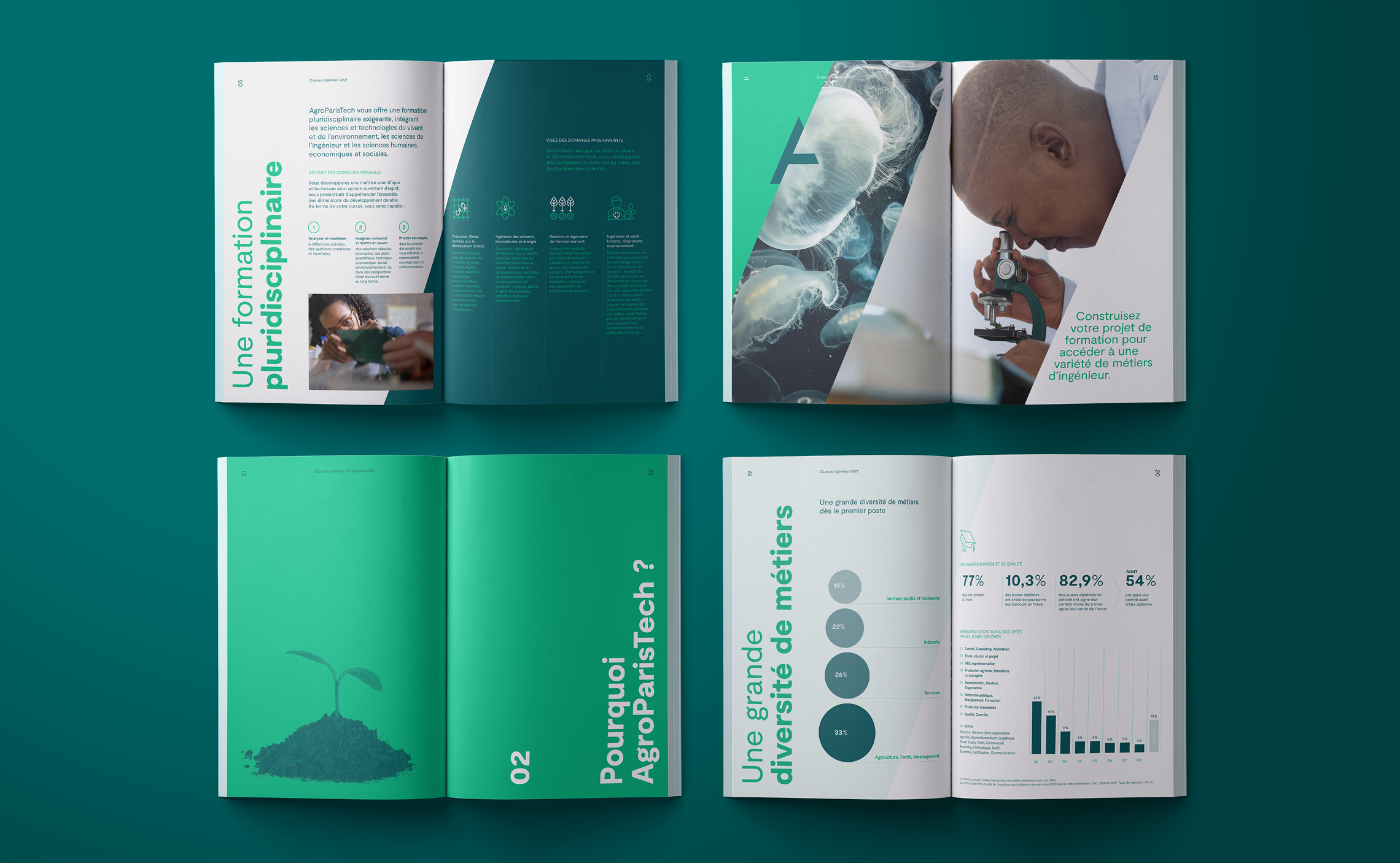 Ce projet est aussi l’occasion de renforcer l’institut en fédérant l’ensemble des équipe autour de valeurs communes. La nouvelle charte graphique inaugure ainsi une architecture de marque qui décline le logotype « mère » pour créer un ensemble de marques filles cohérentes avec le territoire graphique de la marque « AgroParisTech » (logos campus, centres, Innlabs, communautés). Nous espérons que cette identité commune et partagée sera vécue comme une source de fierté et qu’elle contribuera au développement du rayonnement et de l’excellence d’AgroParisTech.