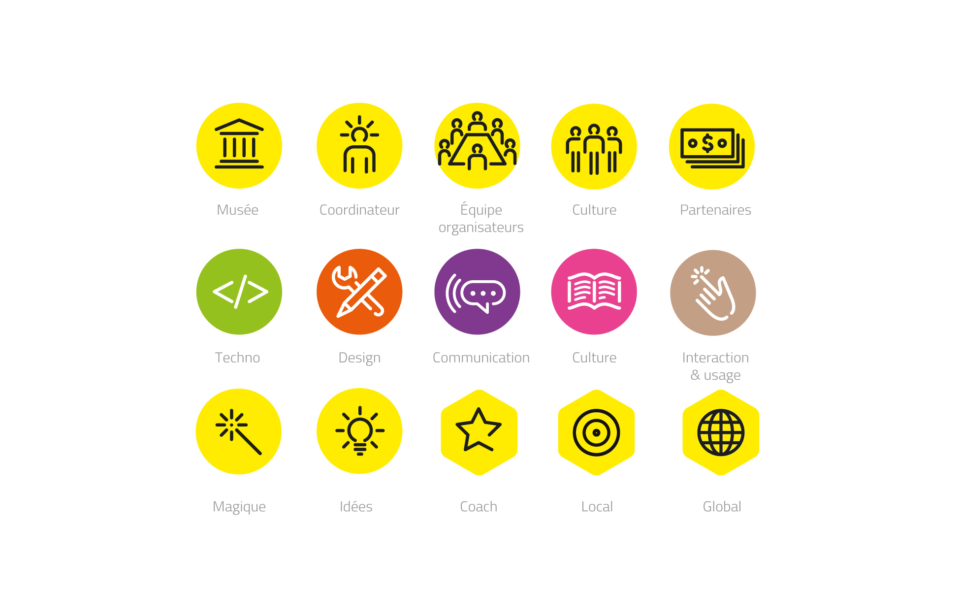Création de l'identité visuelle de Museomix : logo, typographie, affiches, pictogrammes...