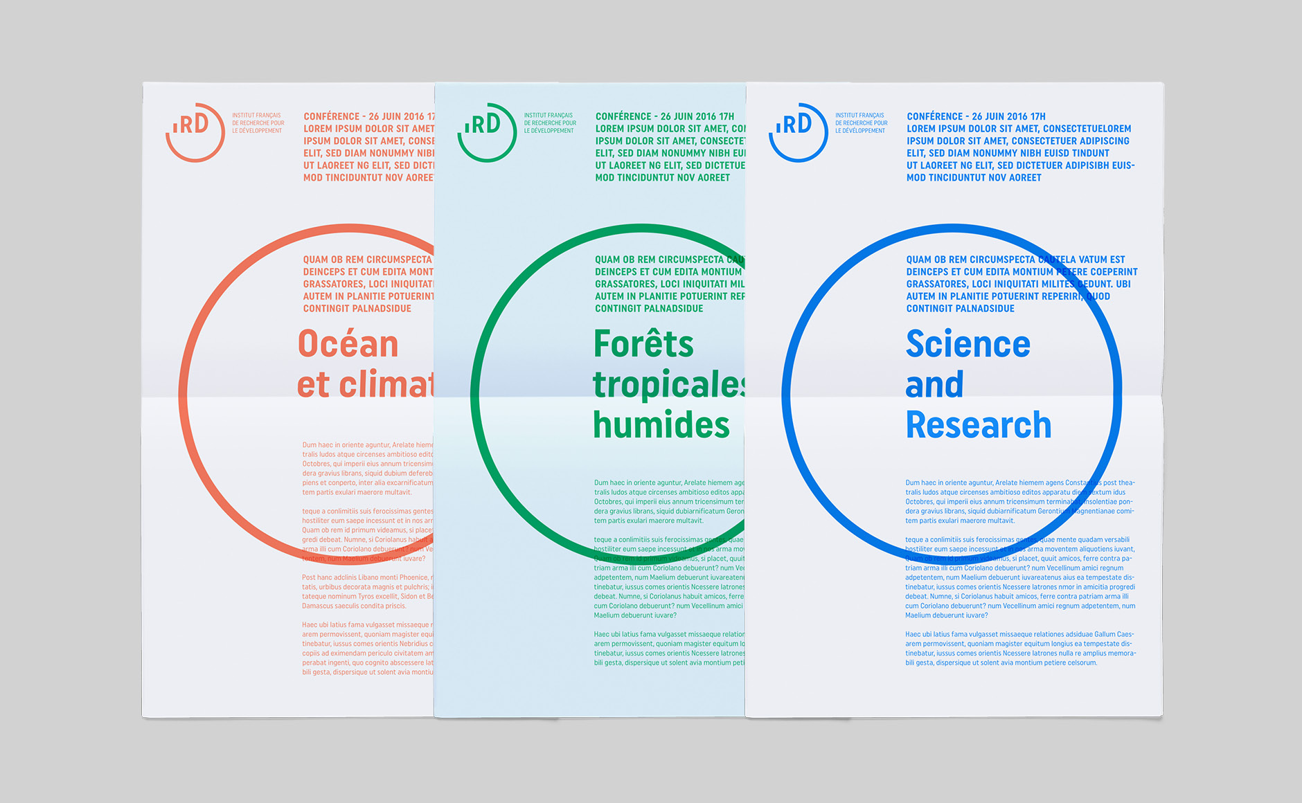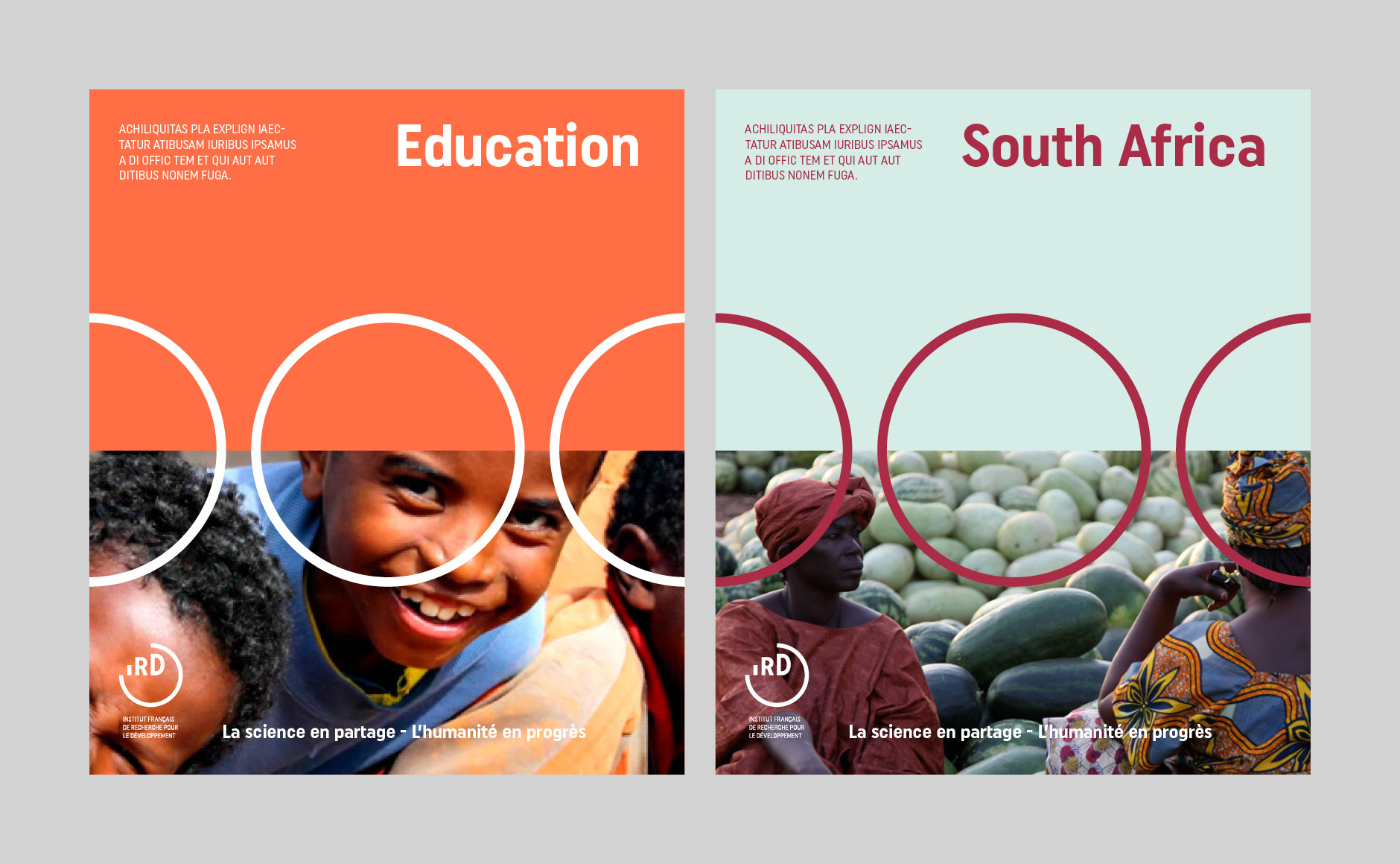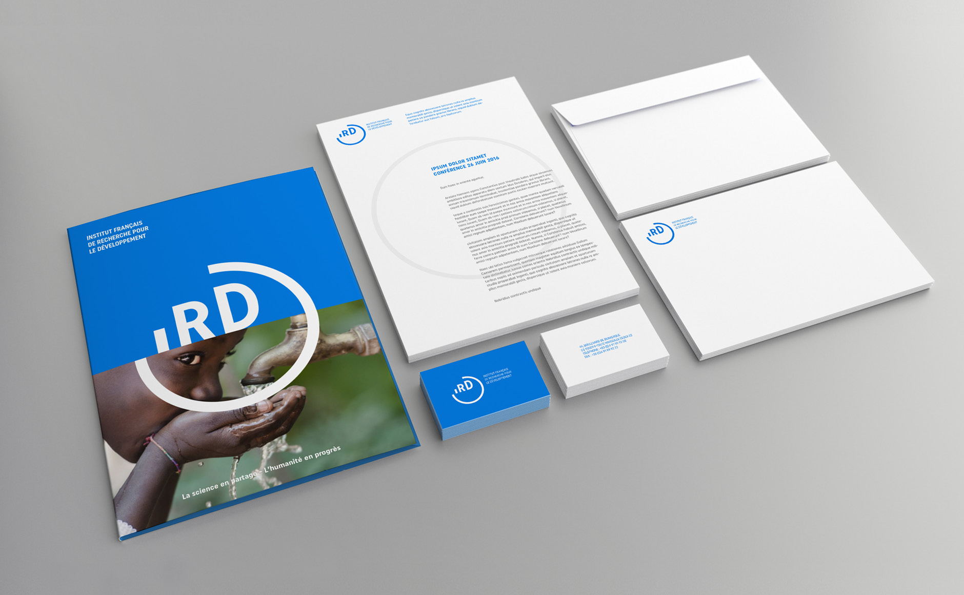 Le projet s'articule autour d'un logo dont la composition croissante des lettres «IRD» évoque très directement l’idée de développement. Le mot semble venir compléter le dessin du cercle, comme pour combler la part manquante du monde. L’idée de progression apparait dans le tracé ouvert du cercle, comme un chargement en cours, une évolution vers le progrès.