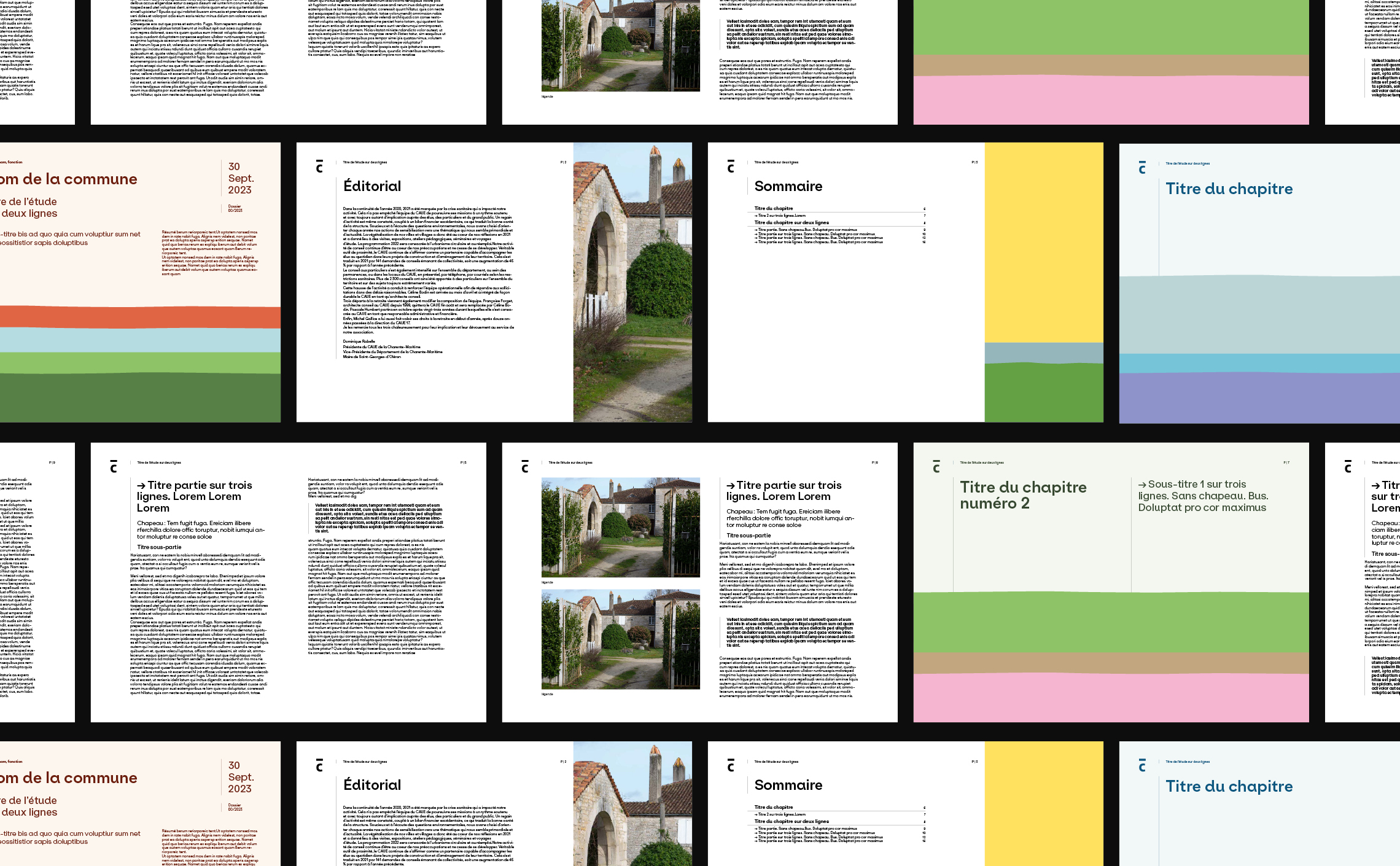 Cette charte graphique est le résultat d’échanges enrichissants entre l'agence, l'équipe du CAUE 17, les architectes et les paysagistes. Ensemble, nous avons co-créé un univers visuel solidement ancré dans un territoire en perpétuelle évolution. Le système de mise en page et la conception des visuels offrent une flexibilité illimitée, dotant ainsi cette identité d'une perspective durable.