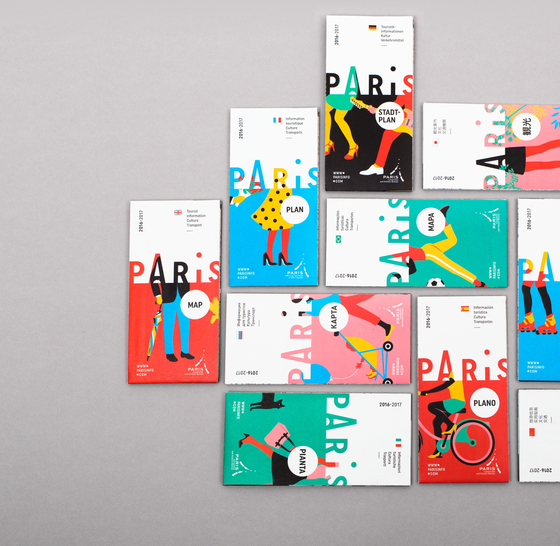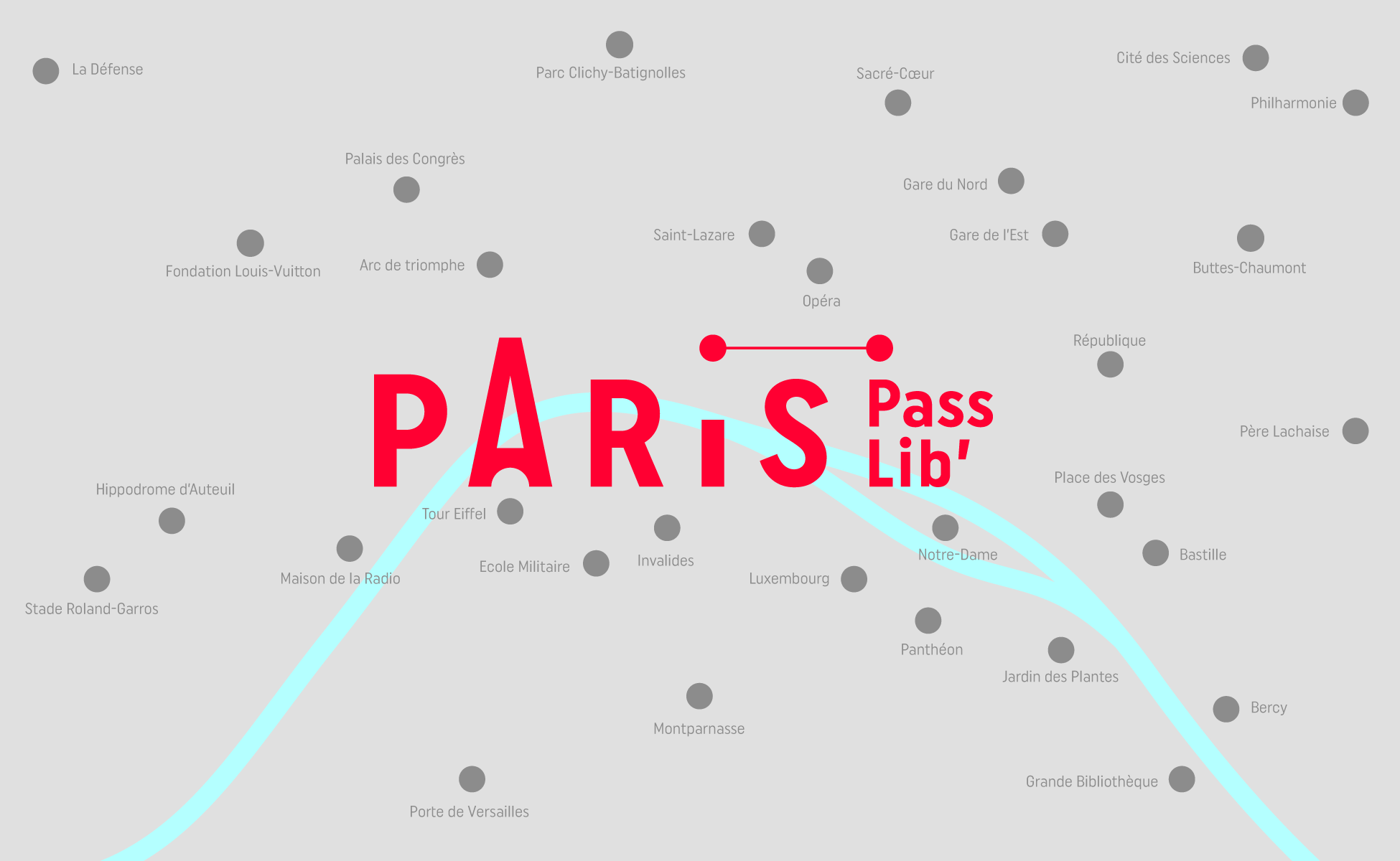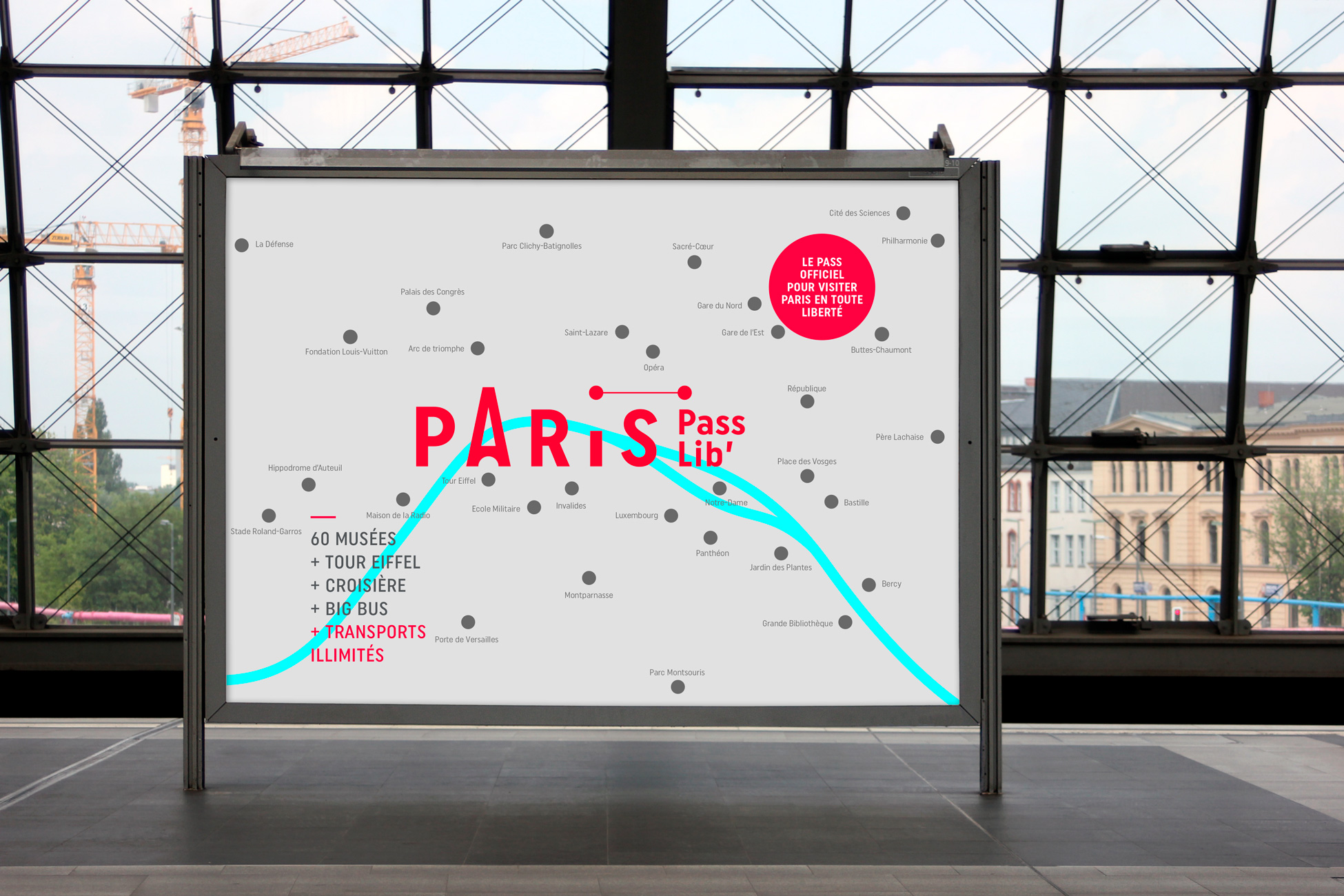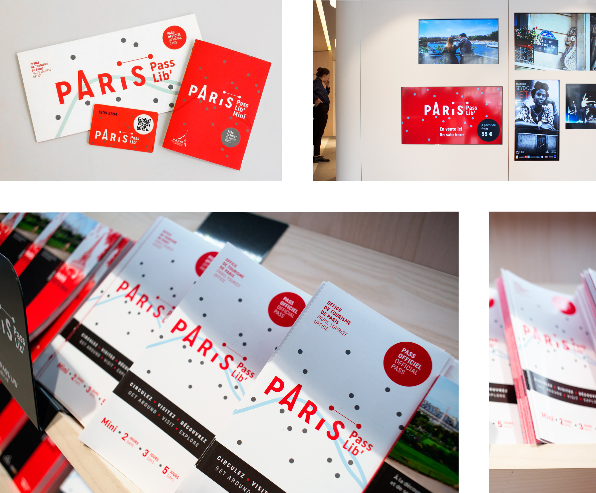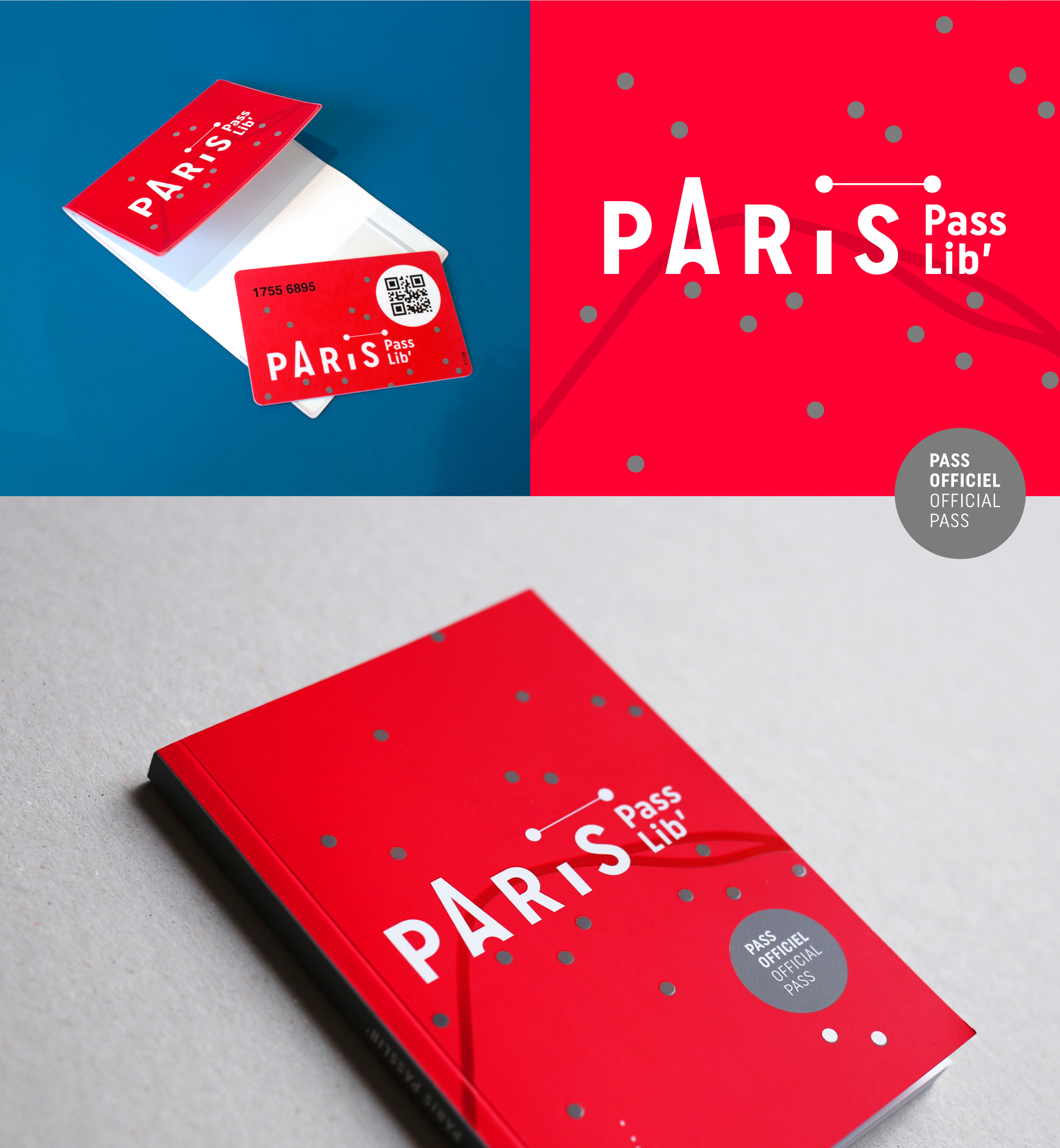 La première application de cette nouvelle charte graphique fut le "Paris Pass'lib'", le pass touristique officiel de la capitale.