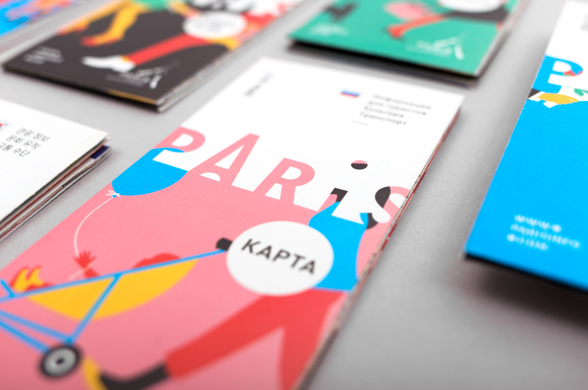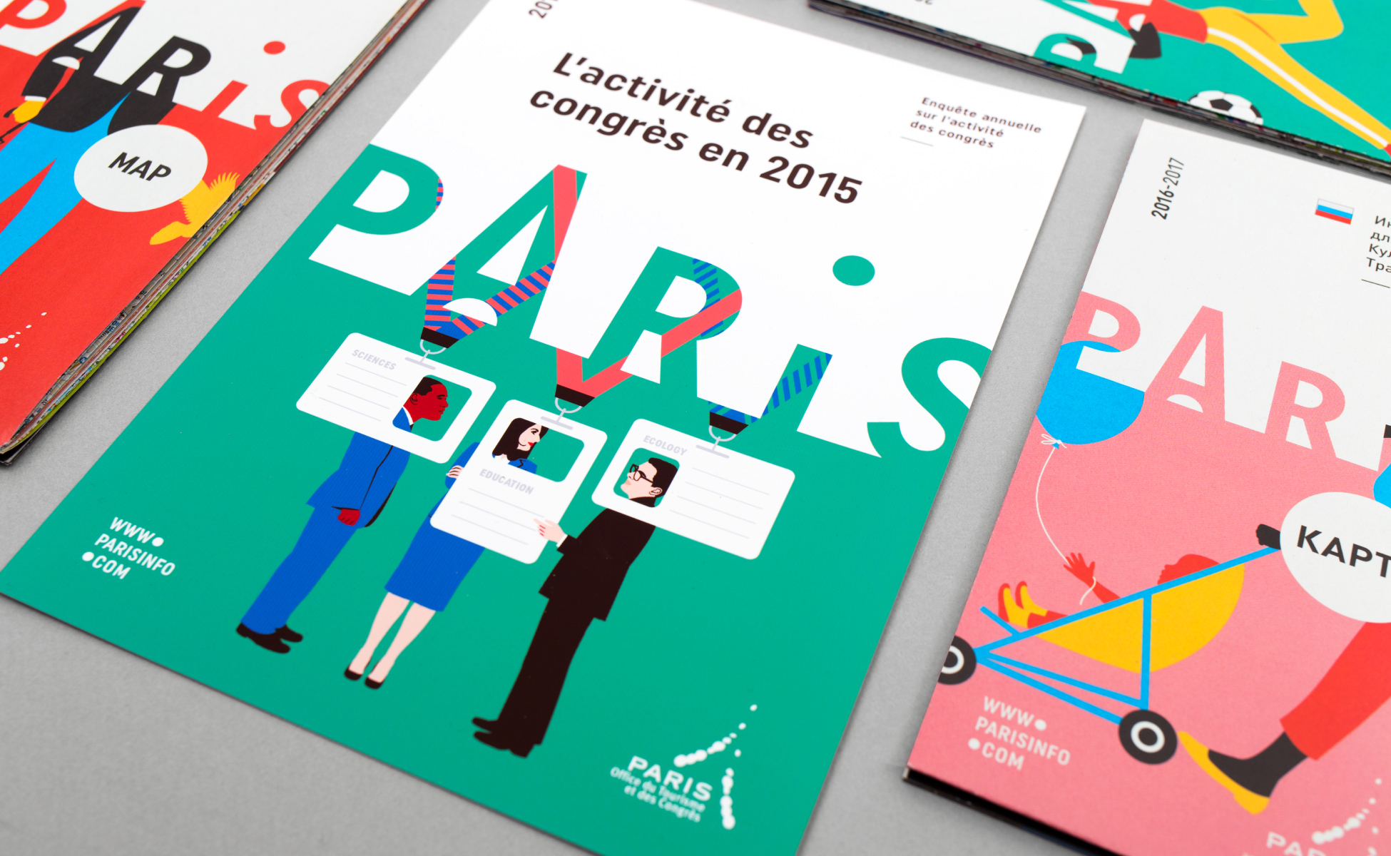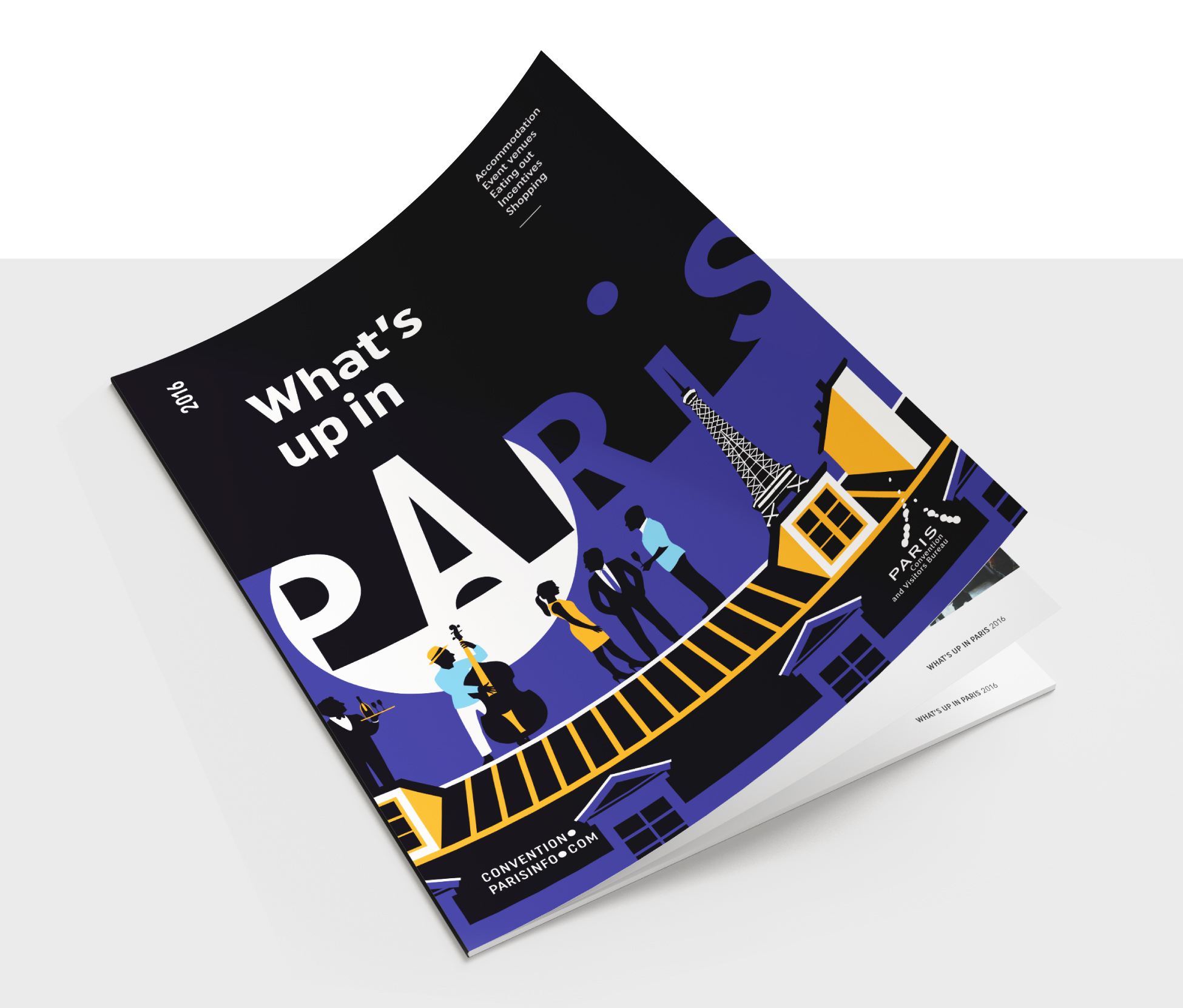 Nous avons invité un illustrateur à travailler avec nous sur l'iconographie. Le choix s'est porté sur Séverin Millet, illustrateur lyonnais, avec lequel nous avions déjà collaboré par le passé. Son travail simple et coloré s'accordant parfaitement avec la vision que nous avions du projet. L'illustration permettant de sortir des habituelles photos cartes-postales de Paris, et ainsi présenter un visage frais, décalé et poétique de la capitale.