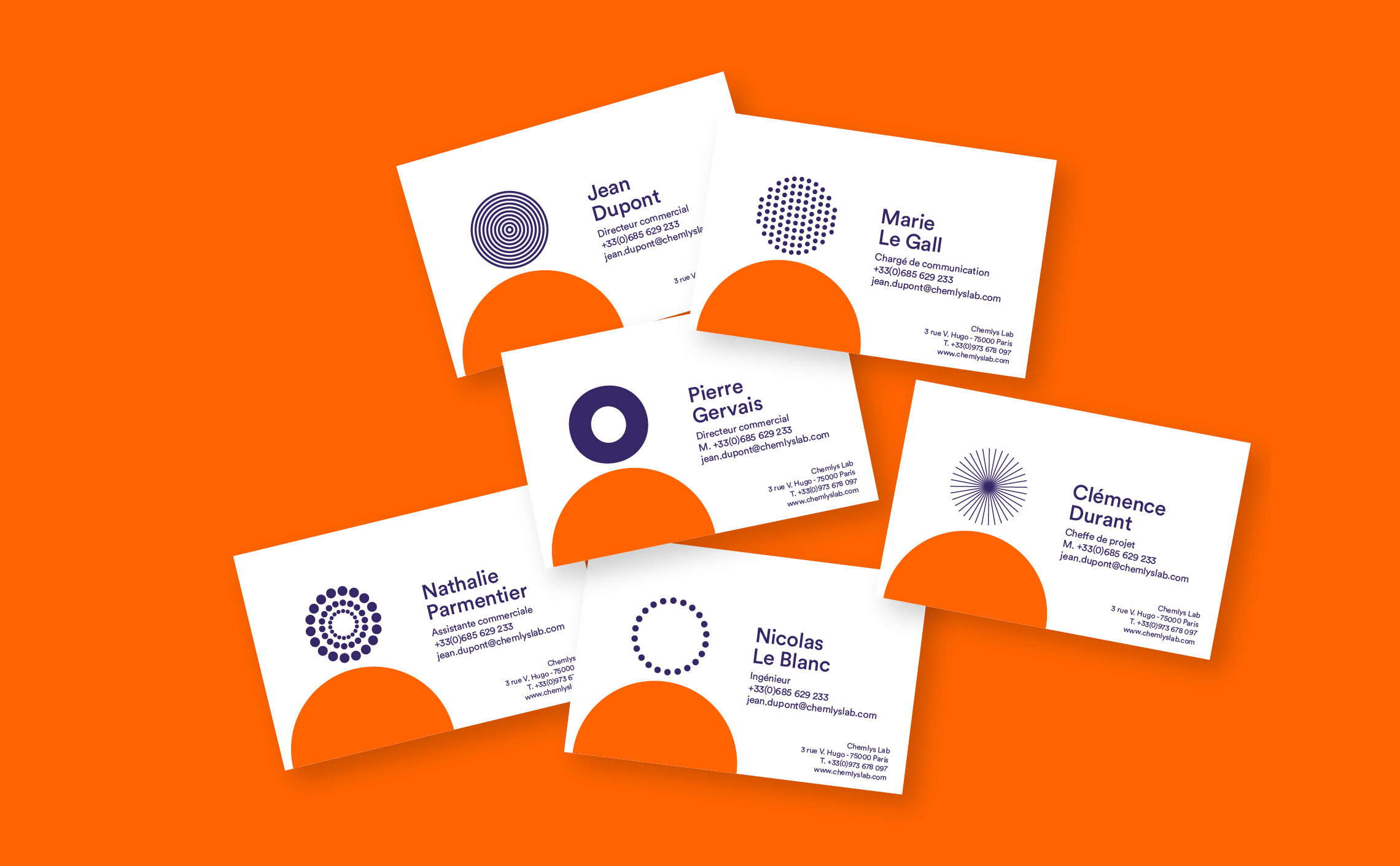 Graphéine a donc conçu l'identité visuelle de l'entreprise, puis a conçu différentes variations de cette identité pour des produits et services comme la Chembox ou le Chemlys Labs.