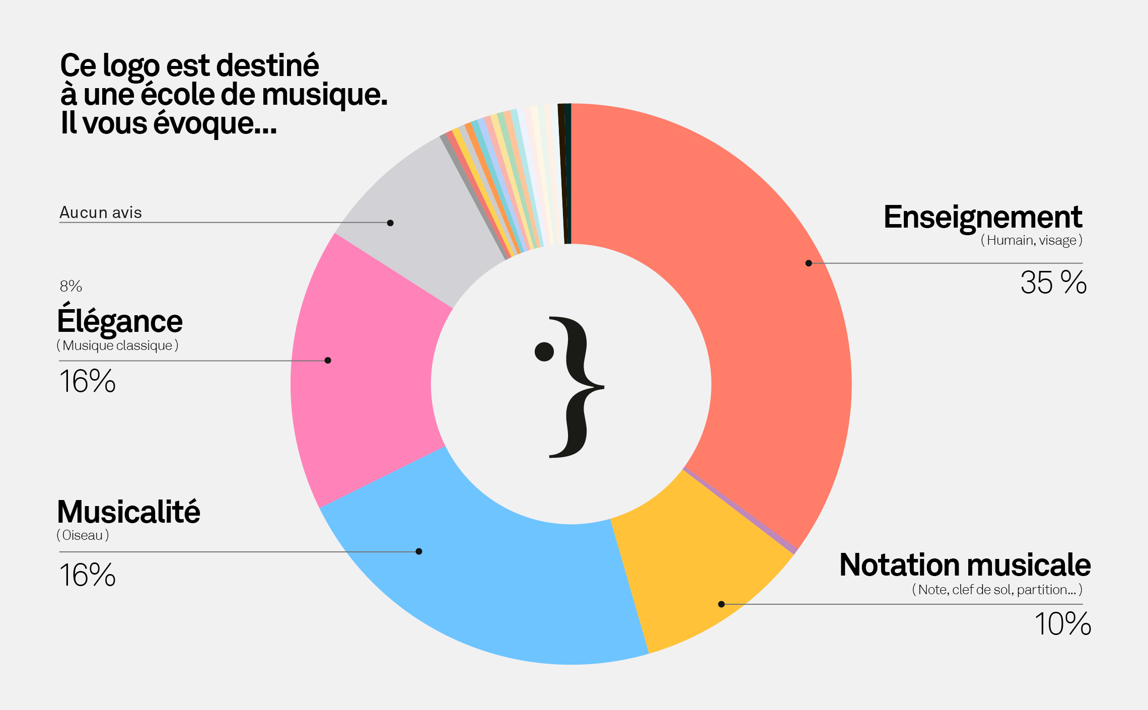 Afin de lever certains doutes de notre client sur la pertinence de ce signe (pas assez musical, trop abstrait...) nous avons lancé une enquête auprès de 250 personnes, afin de comprendre si la multi-interprétabilité de ce signe était un handicap.