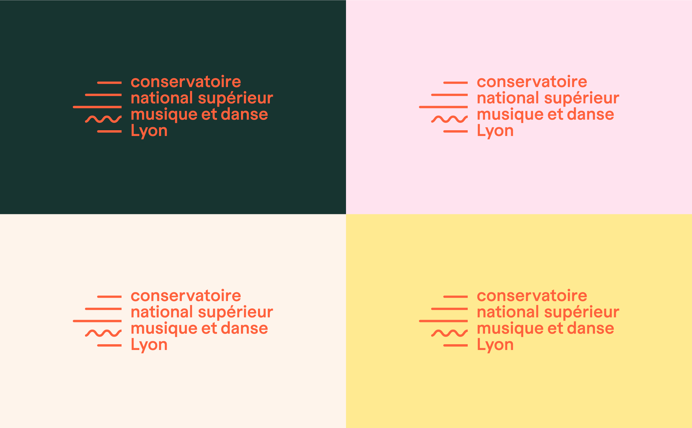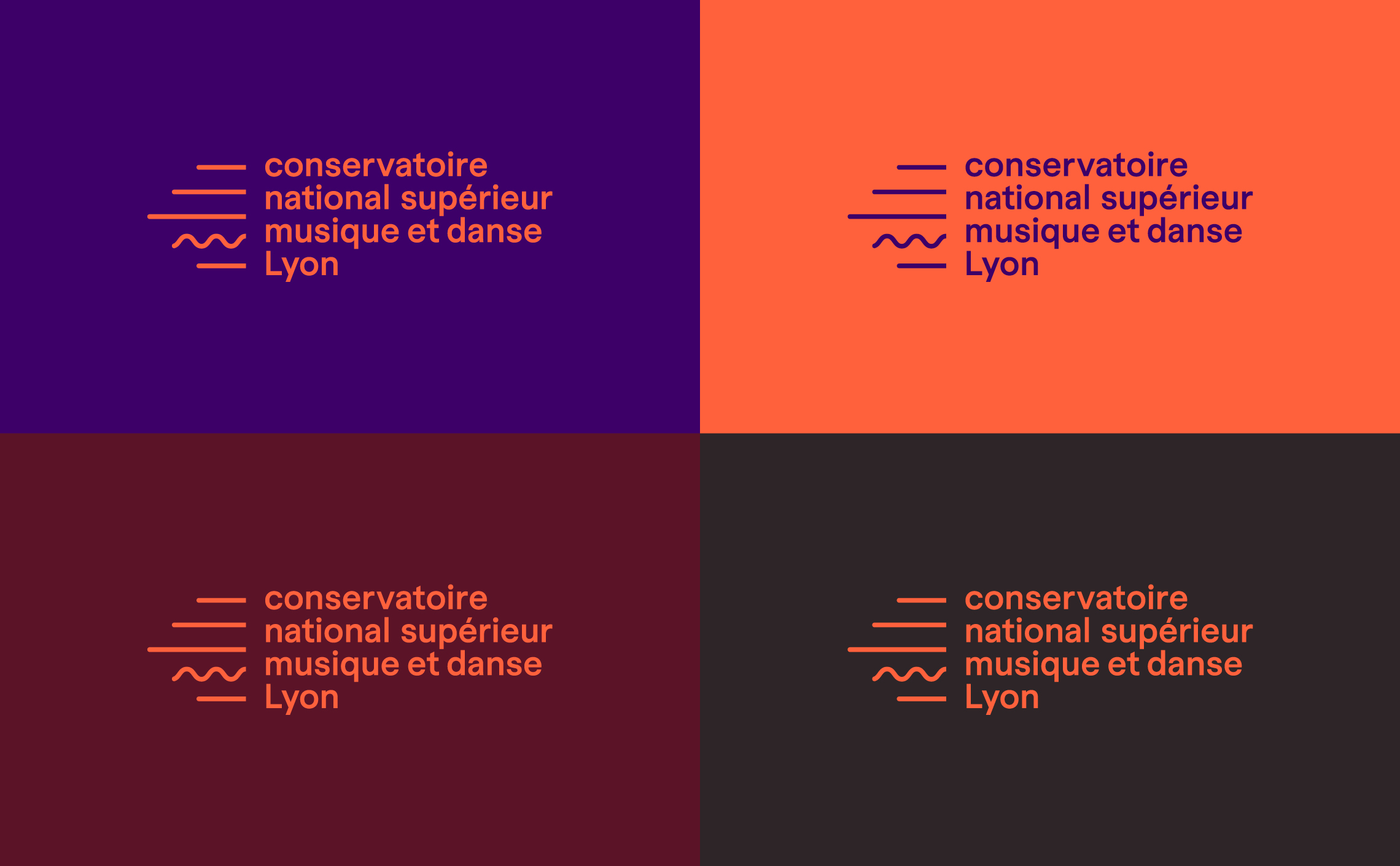 À travers ce logo et cette identité visuelle du CNSMD Lyon, Graphéine a cherché à établir un lien harmonieux entre la musique et la danse. Cette identité, à la fois sonore et dynamique, se déploie avec fluidité et élégance, capturant l'essence du mouvement et du rythme.