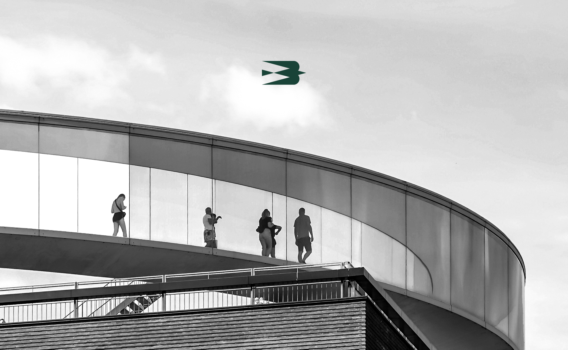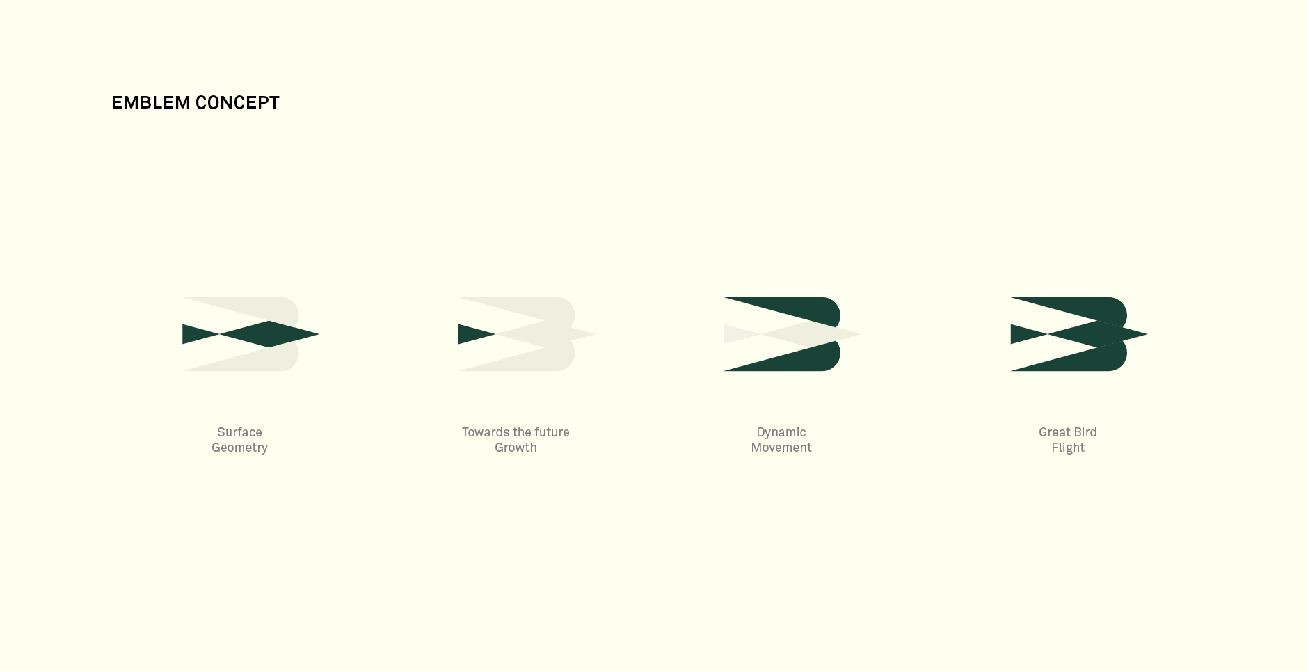 La figure retenue est celle d’un oiseau en vol. Il incarne l’idée de vision d’ensemble et d’investissement. Il traduit également une puissance discrète et sophistiquée. La construction géométrique de l’emblème évoque un univers art décoratif et permet d’y découvrir les initiales « E » et « B ».