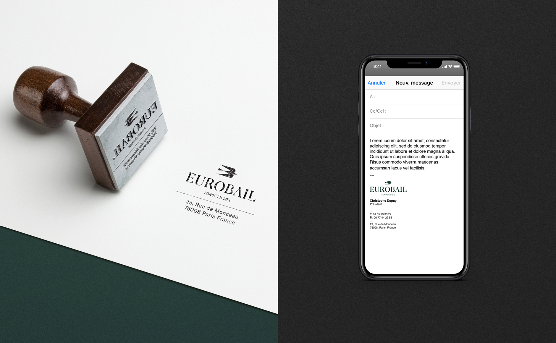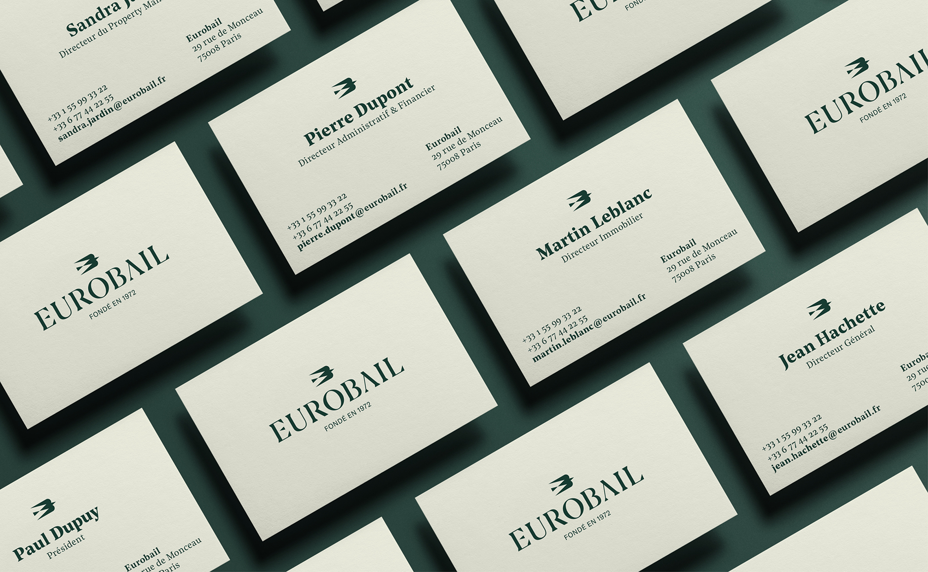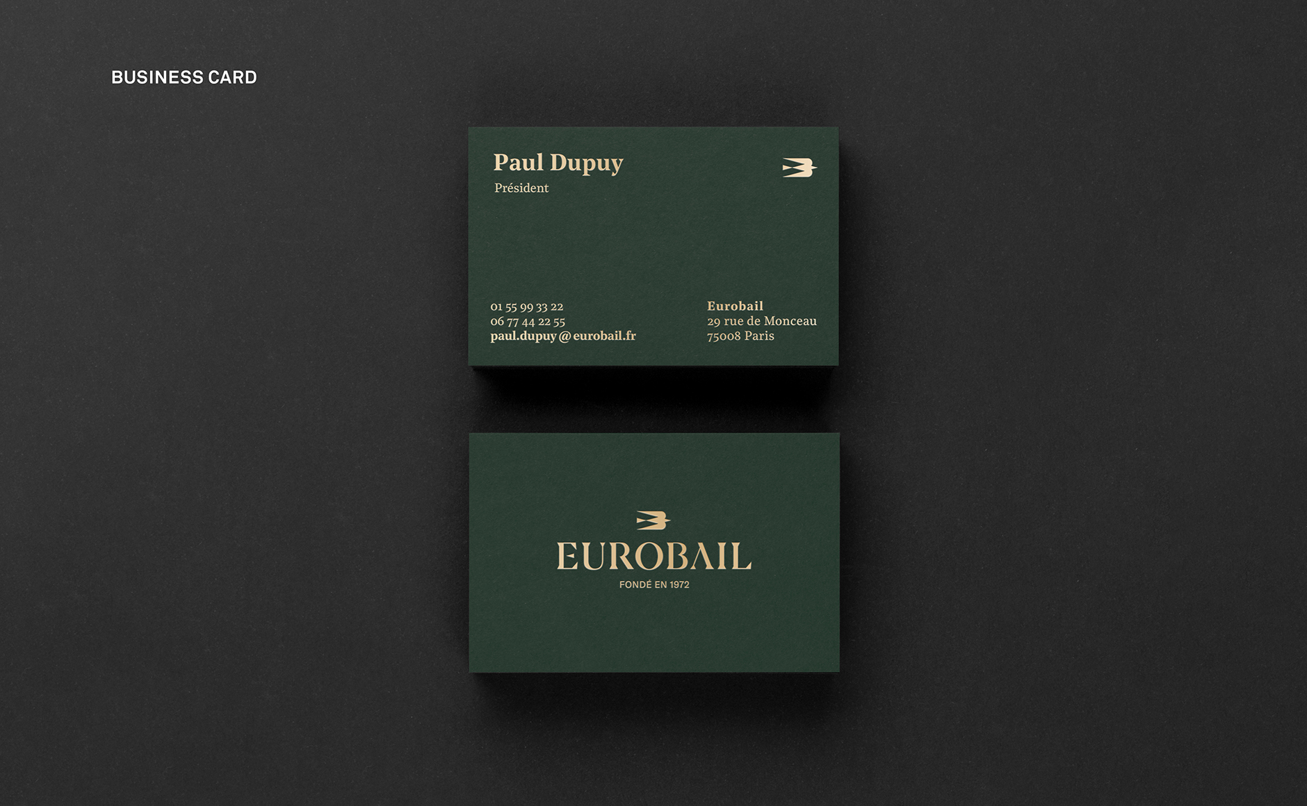 L’univers « conquérant » des affaires est contre-balancé par les valeurs humanistes et responsables. Eurobail est un modèle de réussite qui incarne l’excellence et la discrétion. Alors que le nom « Eurobail » pouvait avoir une connotation « discount » et rétro ; l’identité réalisée se veut discrète et flamboyante.