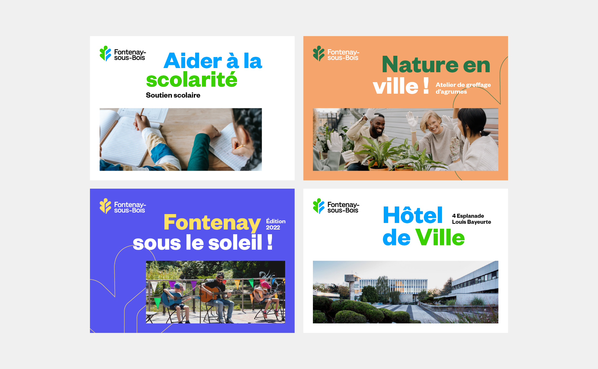La nouvelle identité visuelle de Fontenay-sous-Bois renforce les valeurs portées par la municipalité grâce à un design dynamique, chaleureux et accueillant pour une ville humaine et solidaire.