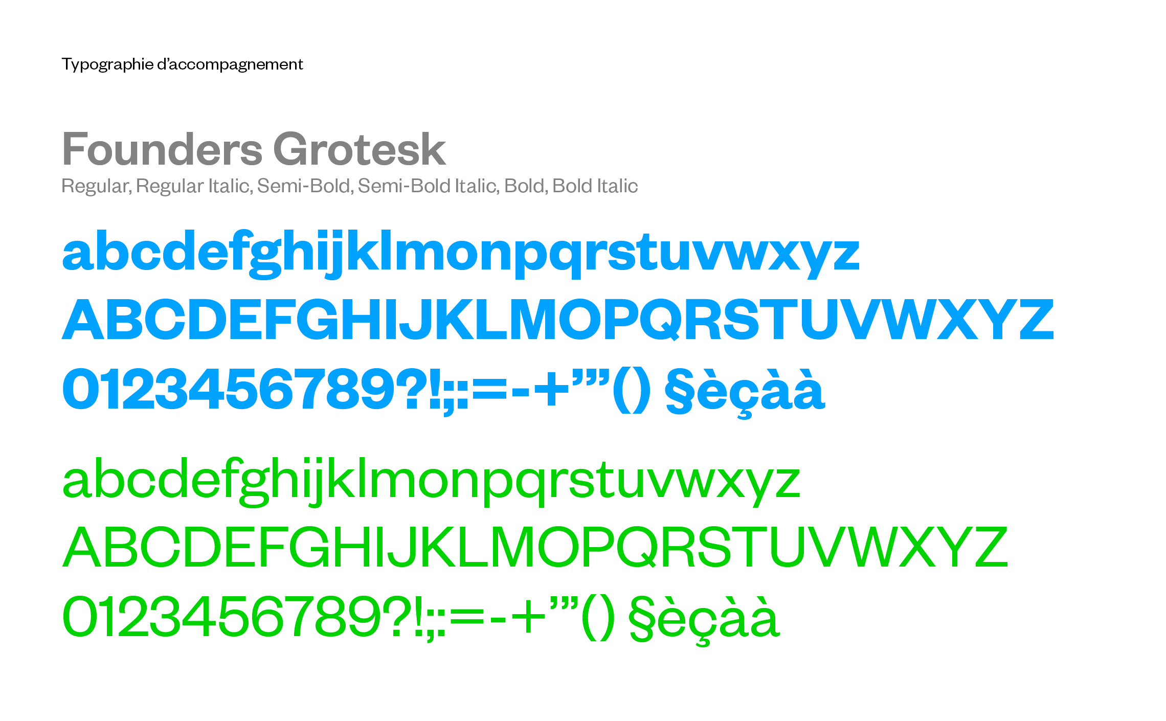 Fontenay-sous-Bois dispose désormais de la famille typographique Founders Grotesk distribuée par KlimType foundry. Ce caractère typographique a été choisi pour sa simplicité et sa lisibilité sur n’importe quels supports de communication, aussi bien en majuscules qu’en bas de casse. Le système graphique a été pensé pour s’adapter et être utilisé facilement en interne ou lors d’une campagne d’affichage. La grille de composition permet de garder une cohérence sur tous les supports et de conserver une bonne lecture de chacun des éléments. L’emblème de Fontenay-sous-Bois en filaire vient habiller sans surcharger la composition graphique. Une palette de couleurs secondaire intitulée « Palette de couleurs des saisons » valorisera les communications événementielles.