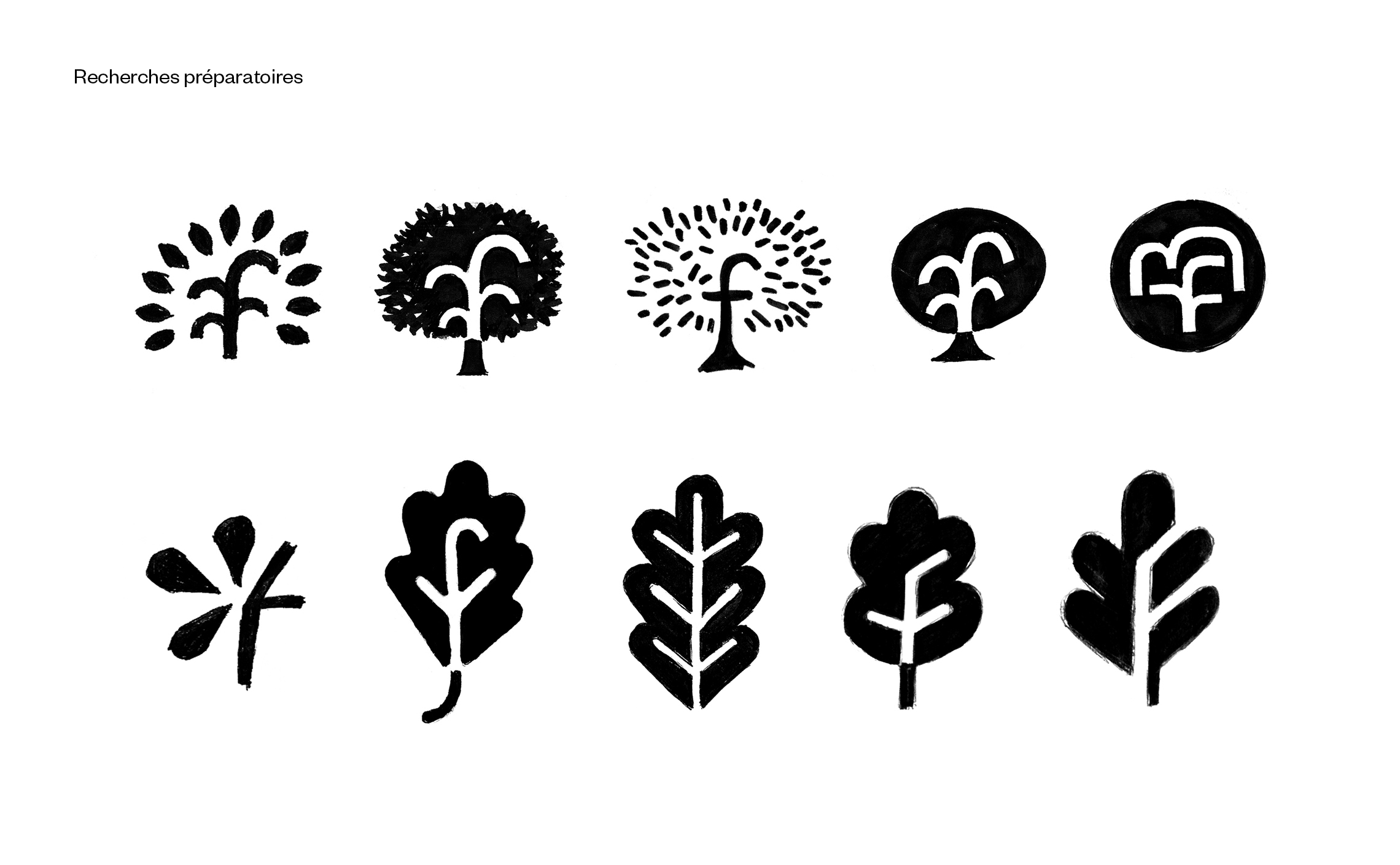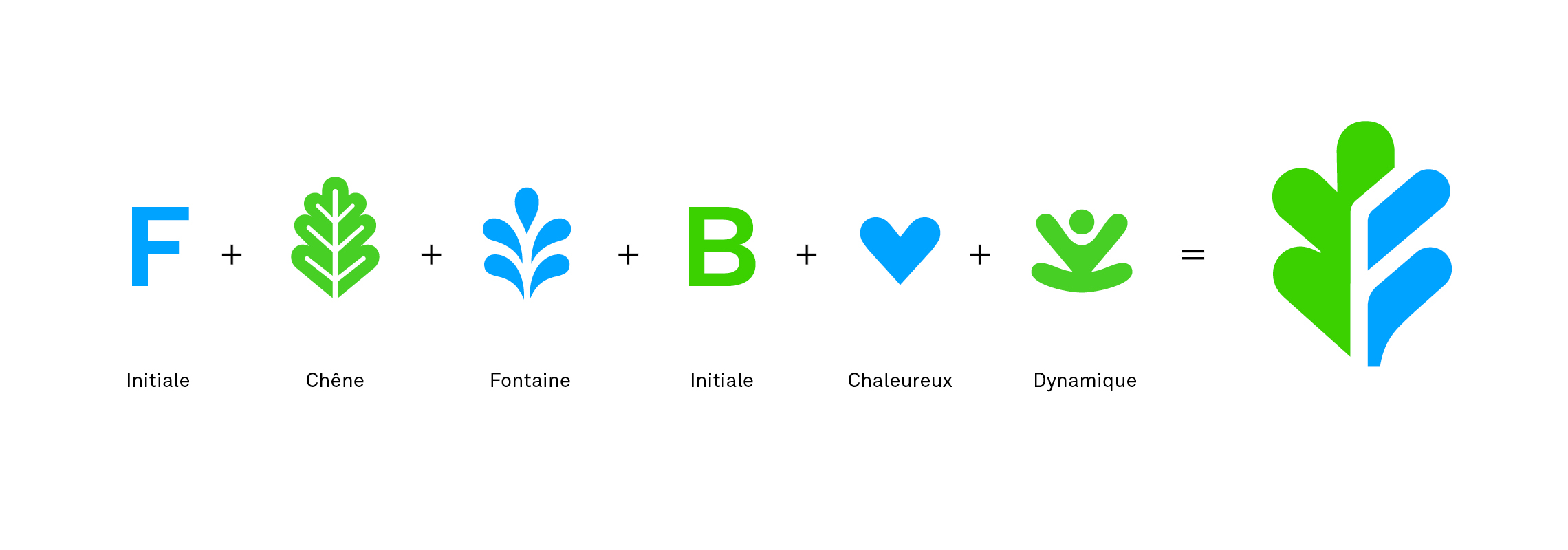 Par effet de synecdoque (figure de rhétorique qui consiste à prendre la partie pour le tout), nous avons donc choisi la feuille de chêne comme point de départ du nouveau logotype. Elle devient ici incomparable en s’entremêlant avec la figure jaillissante de la fontaine. Ce design est également unique car il laisse apparaître dans ses interstices, qui sont aussi les nervures de la feuille, les lettres F, S et B ; initiales de la cité ; réalisant ainsi une osmose entre le symbole et l’écrit.