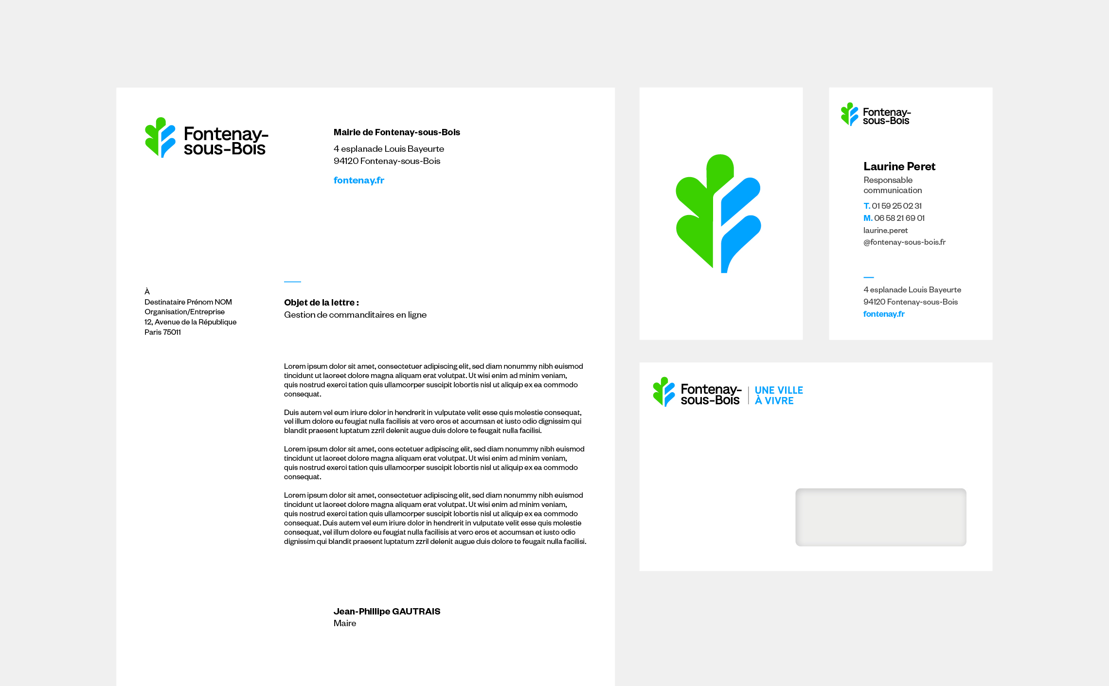 Graphéine a repensé l’identité visuelle de Fontenay-sous-Bois en poursuivant deux objectifs : insuffler dynamisme et modernité tout en conservant ses représentations historiques inscrites dans sa devise centenaire : « Querno sub tegmine fontes », qui se traduit par « les fontaines sous le feuillage du chêne ».