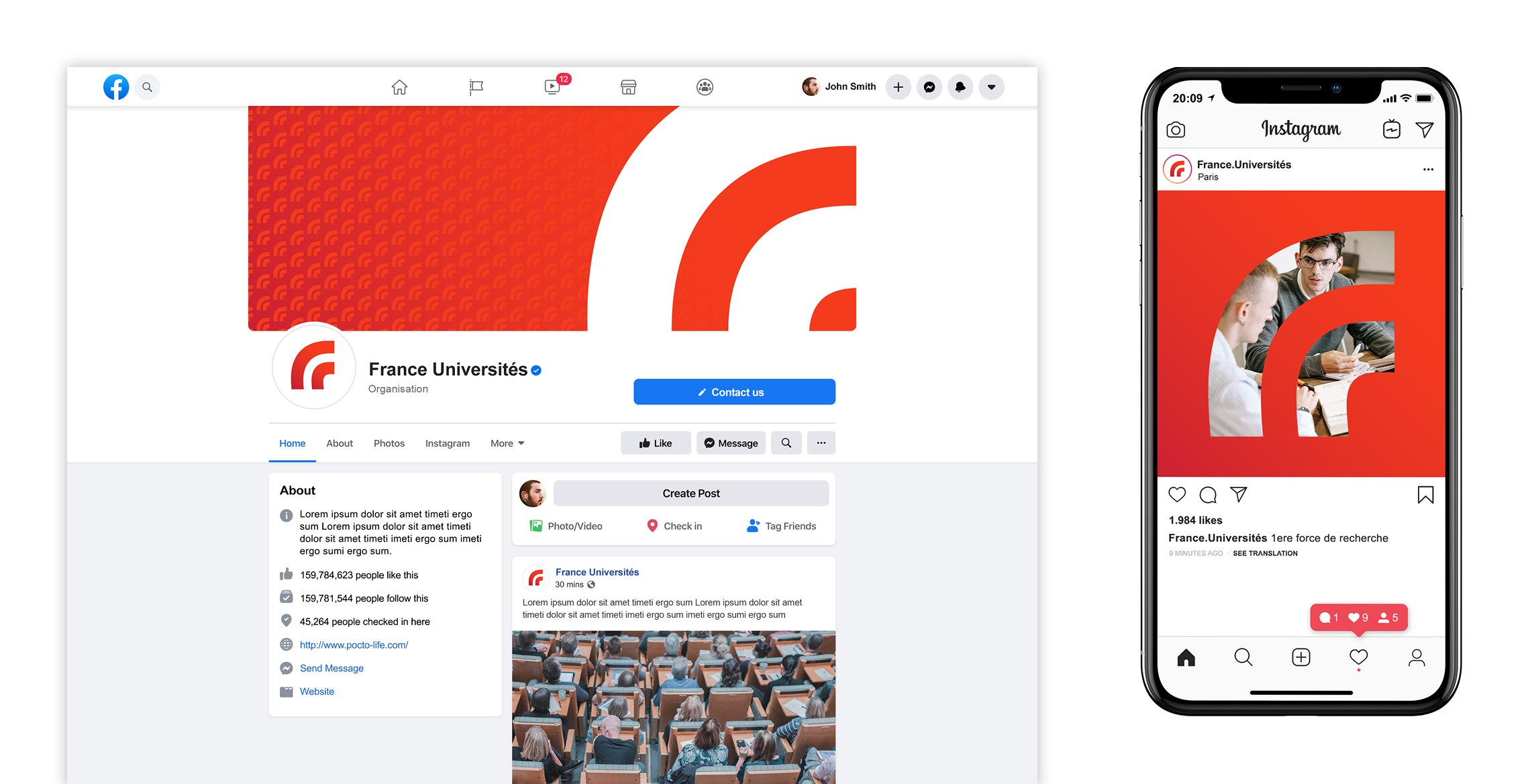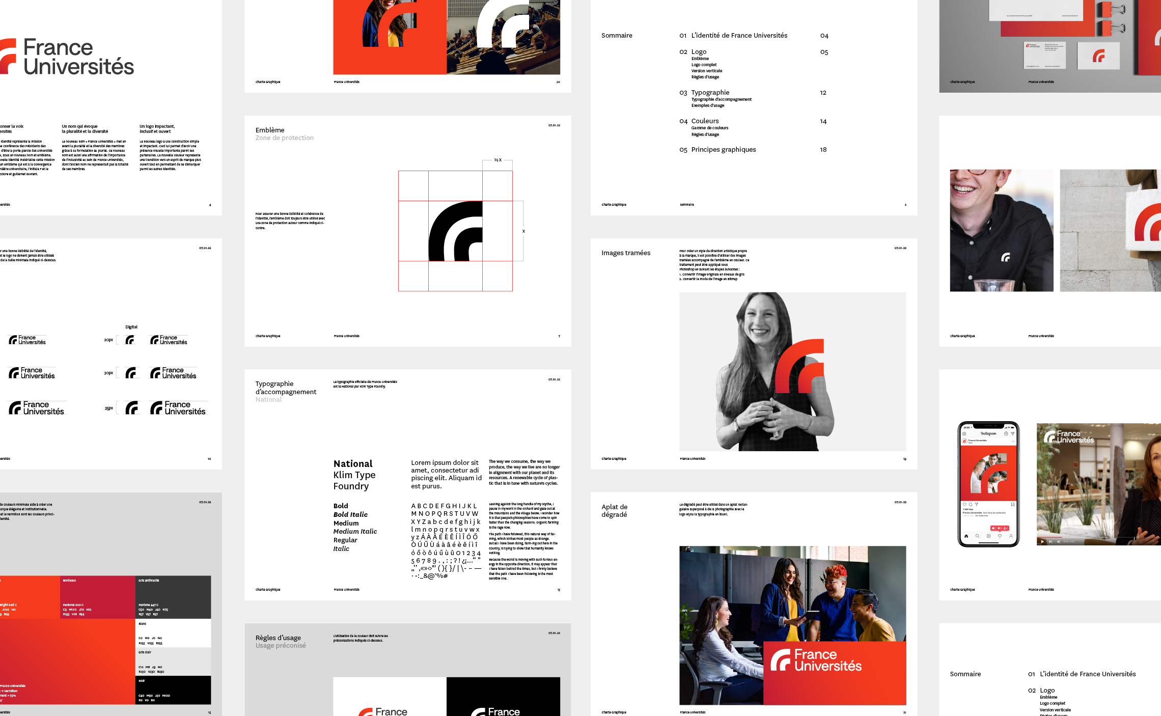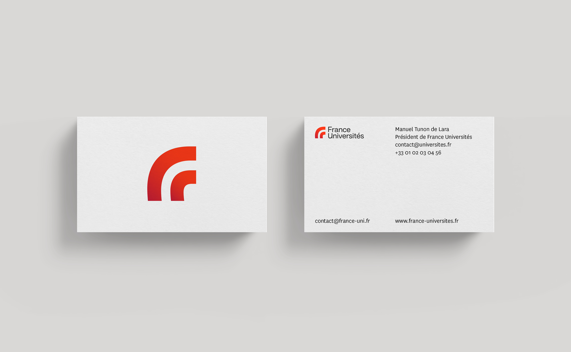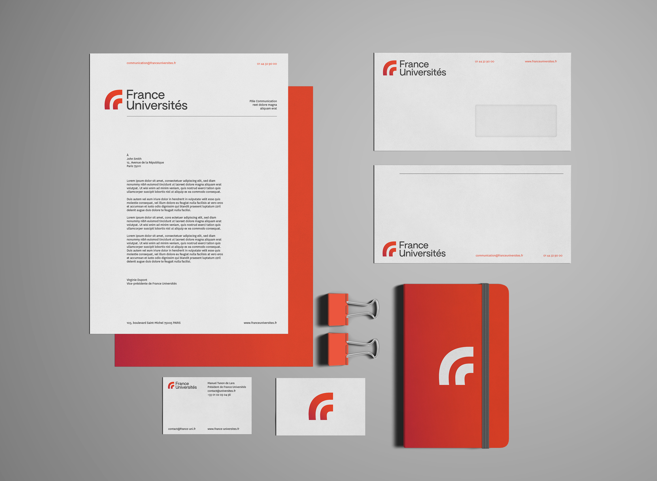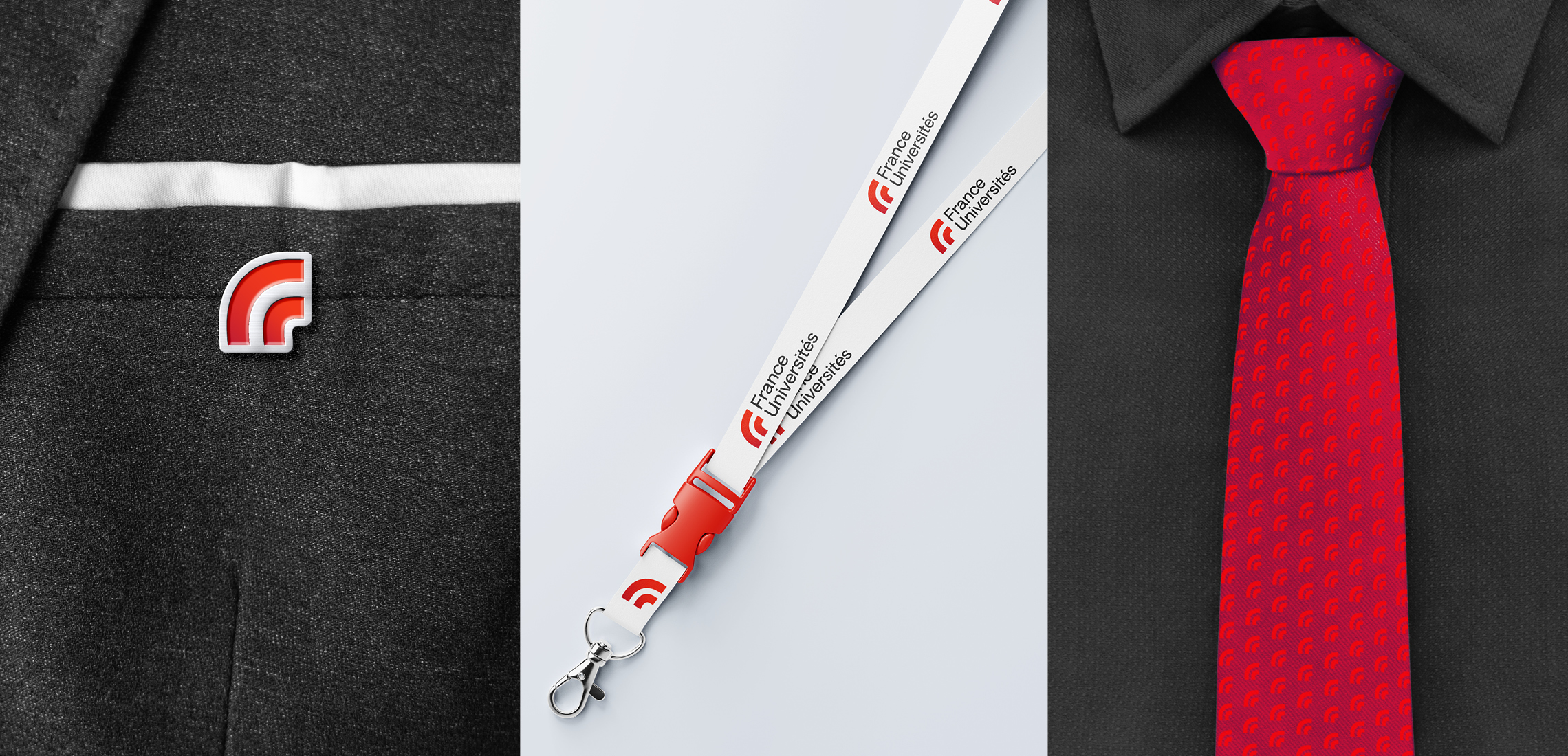 Le logo est une forme dynamique qui a du « panache ». Sa couleur rouge institutionnelle et énergisante marque une rupture avec le bleu de l’ancienne identité visuelle. Sa forme simple et impactante s’adapte parfaitement à tous les supports de communications de France Universités.