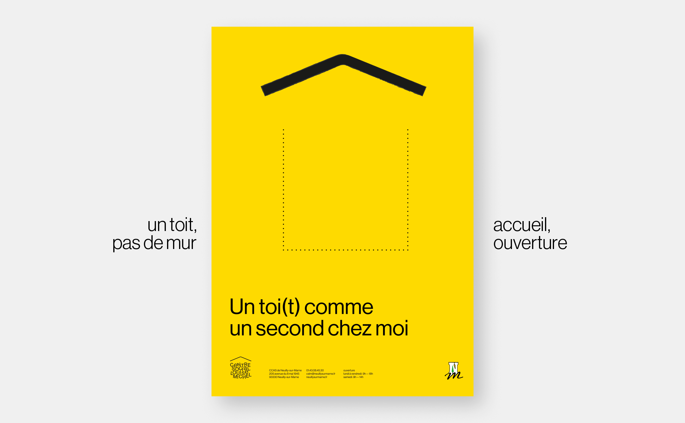 Situé à Neuilly-sur-Marne et fraîchement réhabilité, le Centre Social Louise Michel (CSLM) souffre d'un manque de reconnaissance et d'identification malgré un rôle clé dans le quartier. Lieu d'accueil et de partage, s'adressant à tous les publics, dans toutes les tranches d'âges et toutes les cultures, le CSLM prône le développement des qualités humaines des personnes en misant sur le partage des dons de chacun.