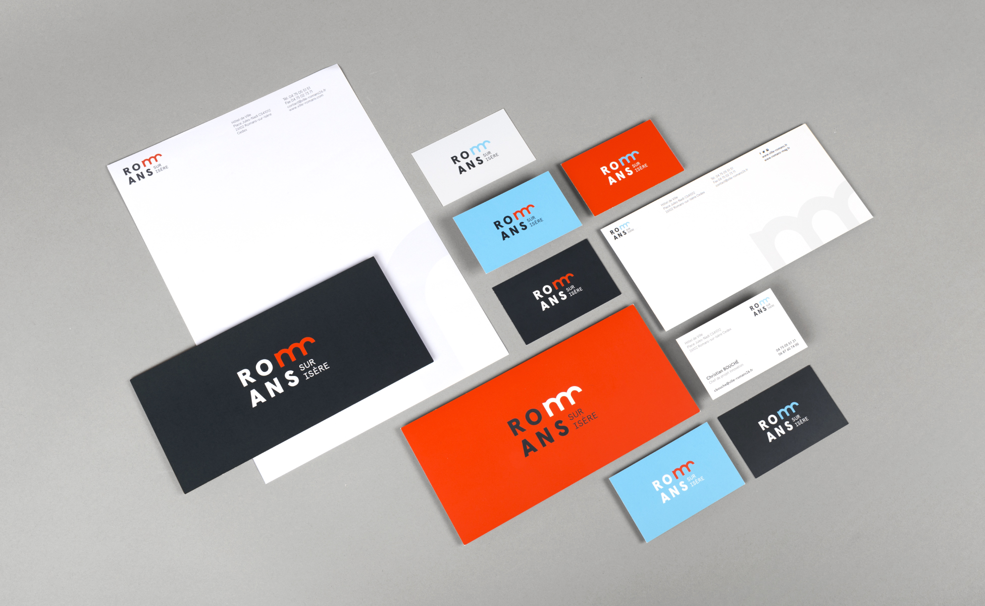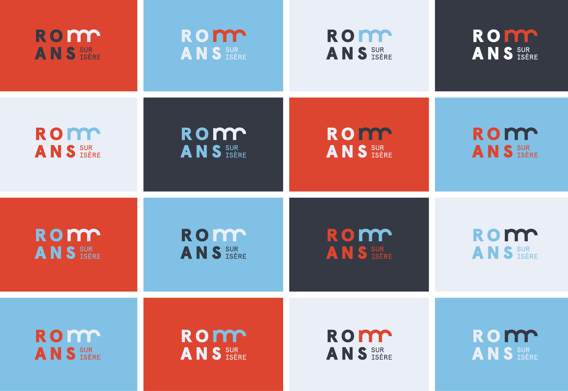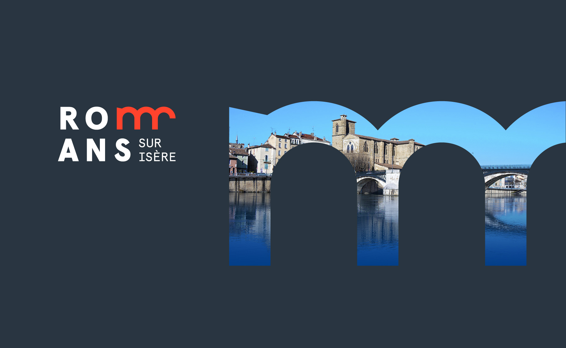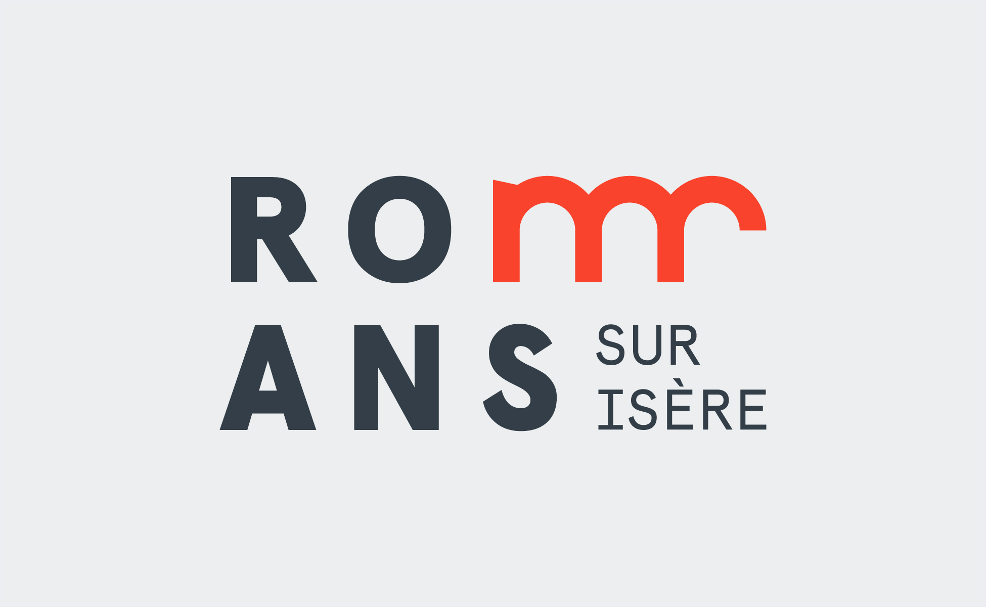 Création de l'identité visuelle de Romans-sur-Isère, ville située sur la rive droite de l'Isère à 20 km de Valence (Drôme). Avec la ville voisine de Bourg-de-Péage, établie de l'autre côté de l'Isère, elle forme une agglomération de 50 000 habitants.