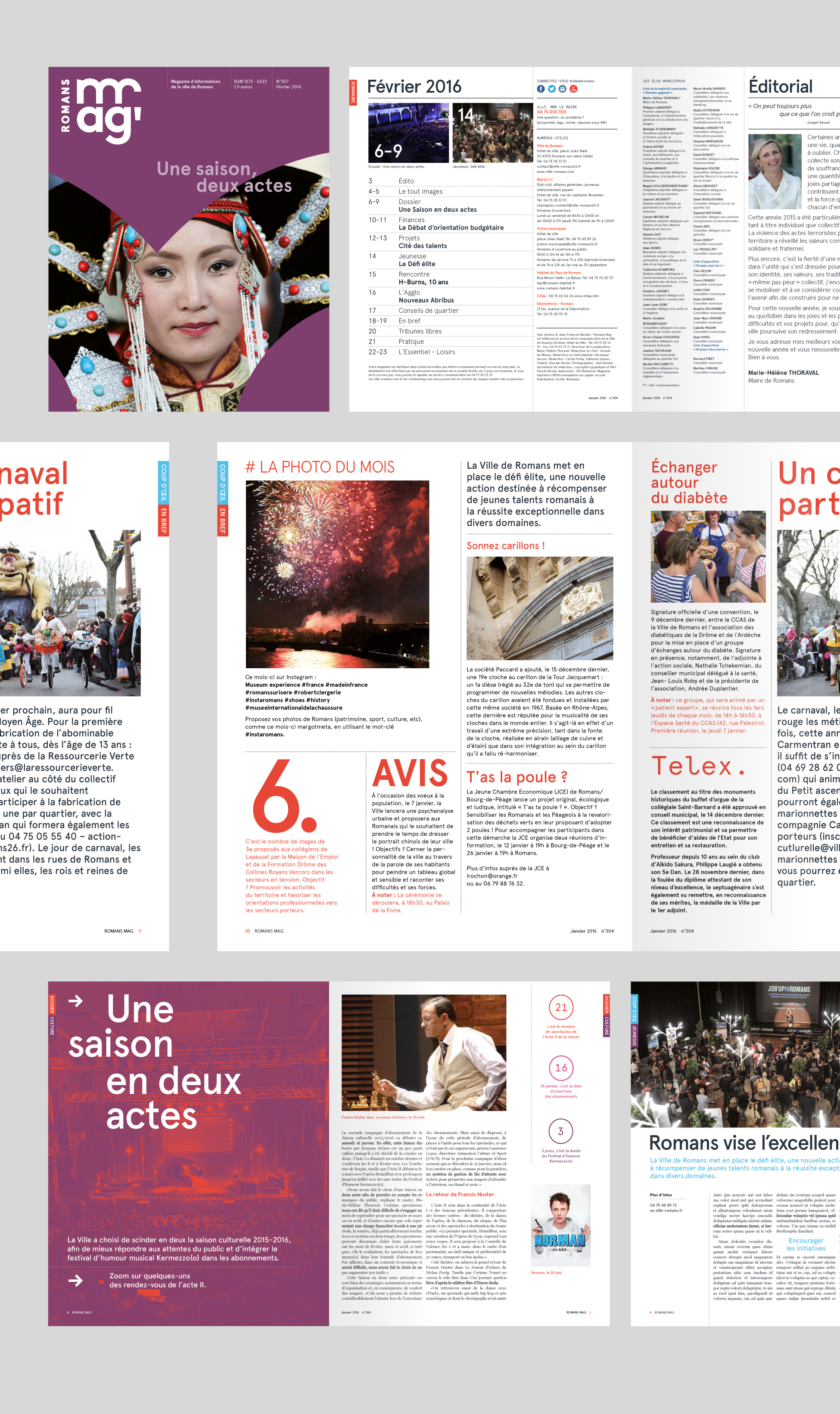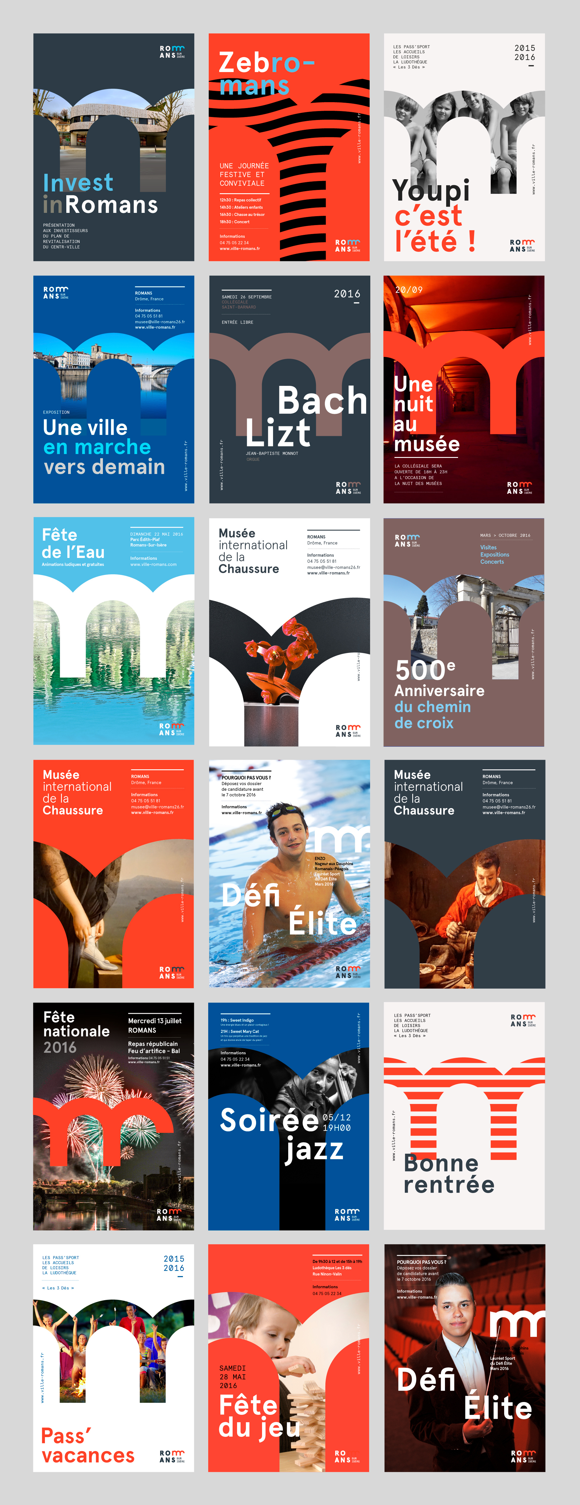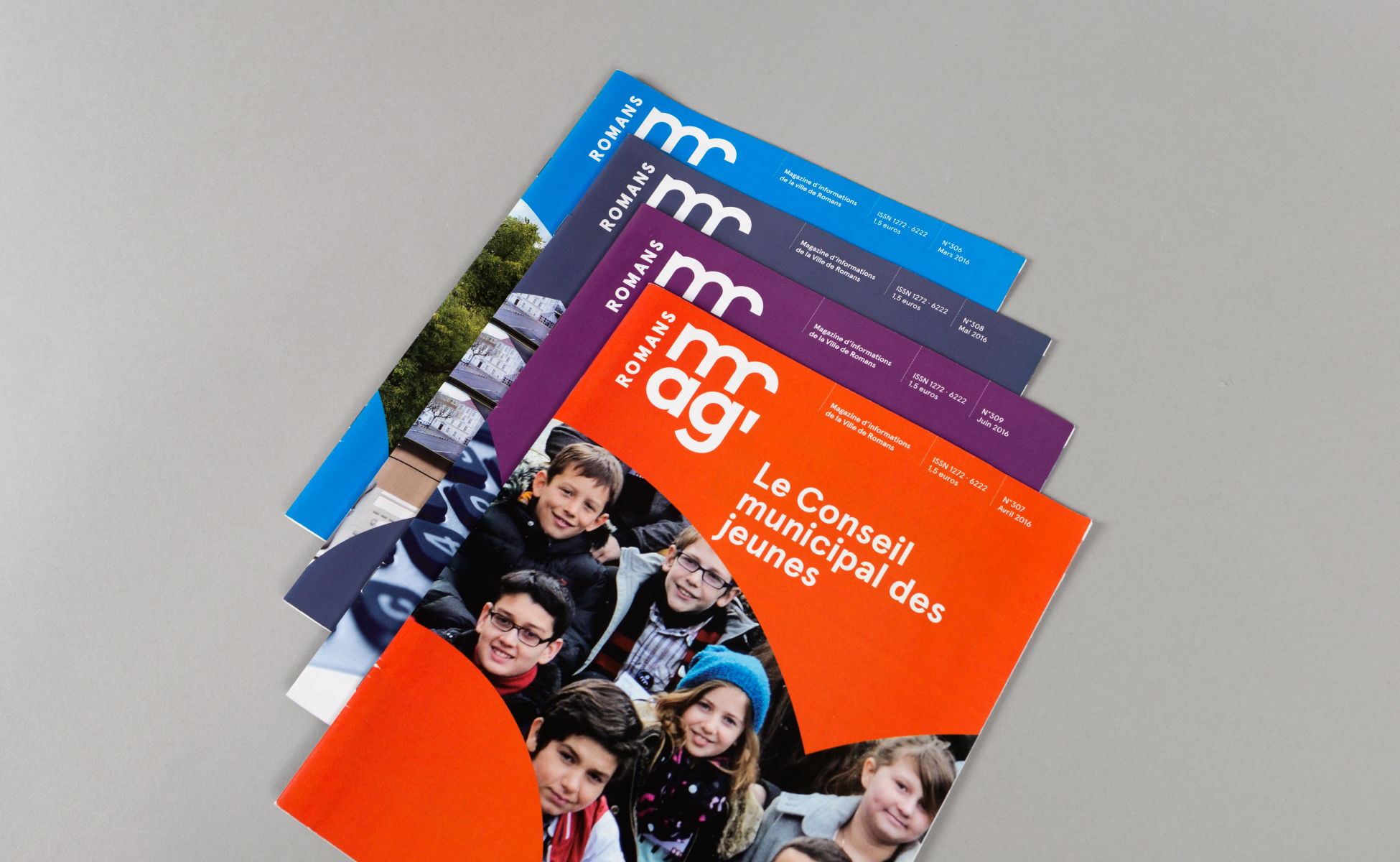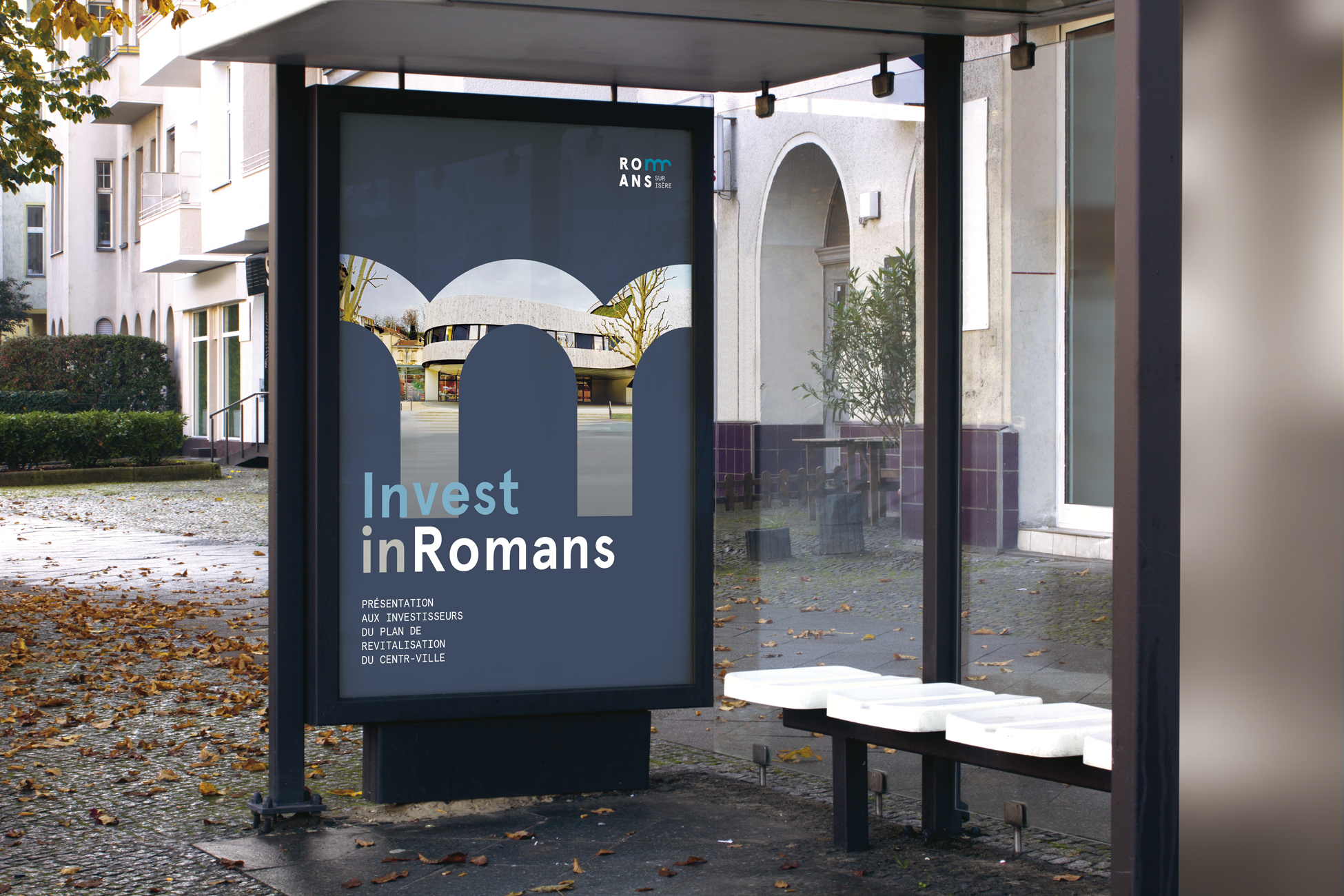 Création de l'identité visuelle de Romans-sur-Isère, ville située sur la rive droite de l'Isère à 20 km de Valence (Drôme). Avec la ville voisine de Bourg-de-Péage, établie de l'autre côté de l'Isère, elle forme une agglomération de 50 000 habitants.