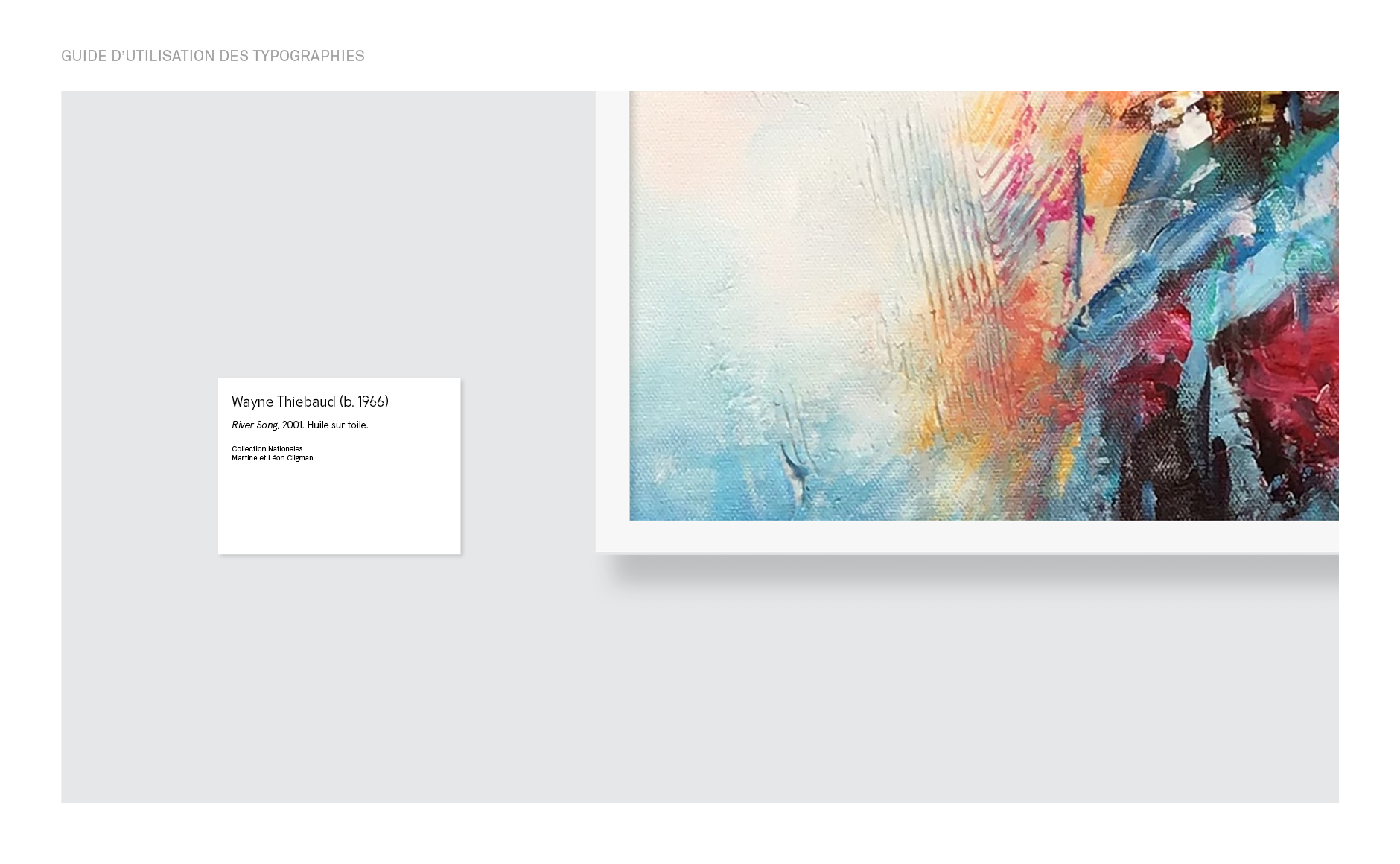 La charte graphique du musée devait pouvoir répondre à ses différents besoin en terme de scénographie muséographique et de signalétique directionnelle, autant que de donner du potentiel pour personnaliser des objets souvenirs commercialisables.