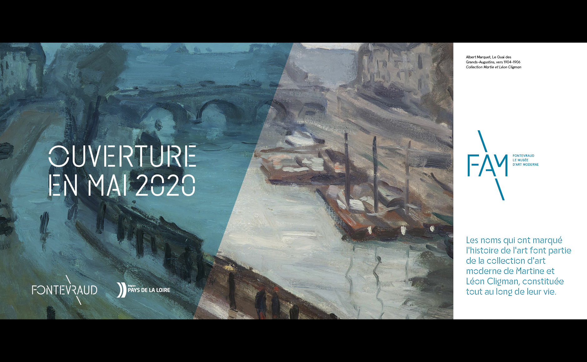 Graphéine a été contacté par la Région des Pays de la Loire afin de réaliser l'identité visuelle du musée d'Art moderne de Fontevraud dans un souci de cohérence avec le système visuel que nous avions créé pour la marque Fontevraud en 2015.