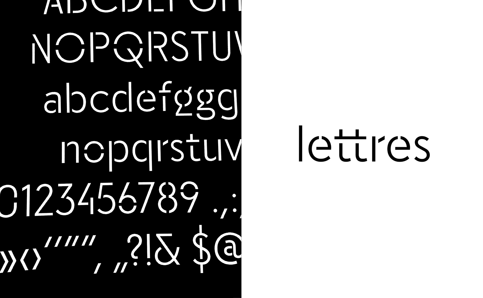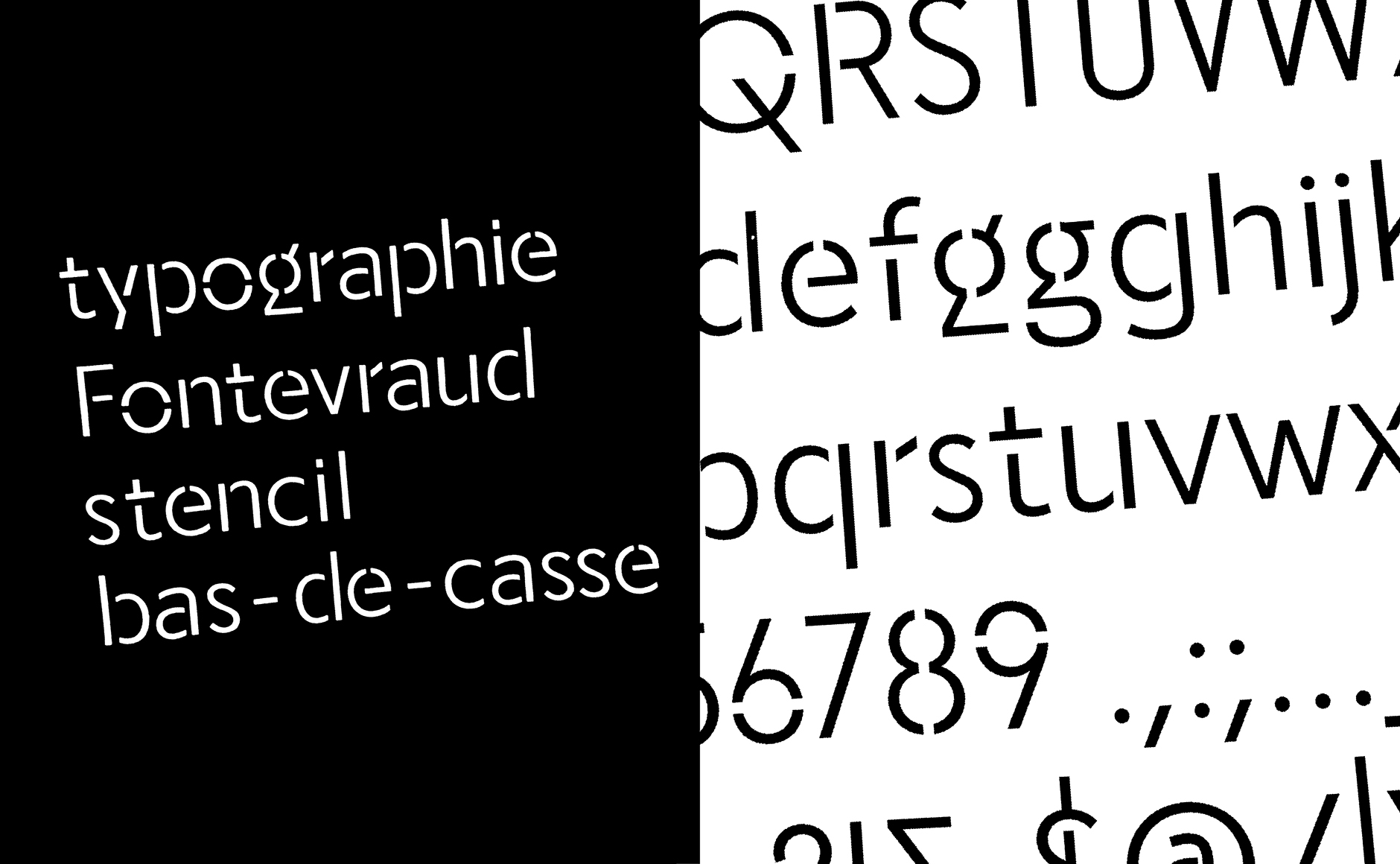 Tout l’enjeu de ce travail a été de conserver le style stencil tout en dessinant des minuscules donnant le plus grand confort de lecture possible.