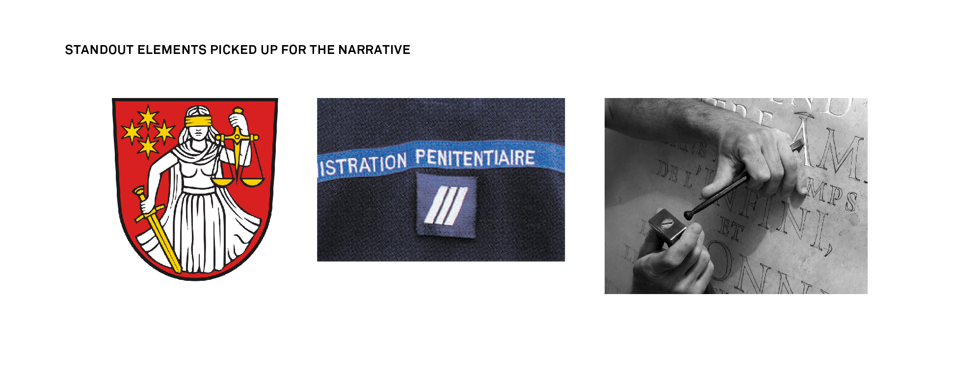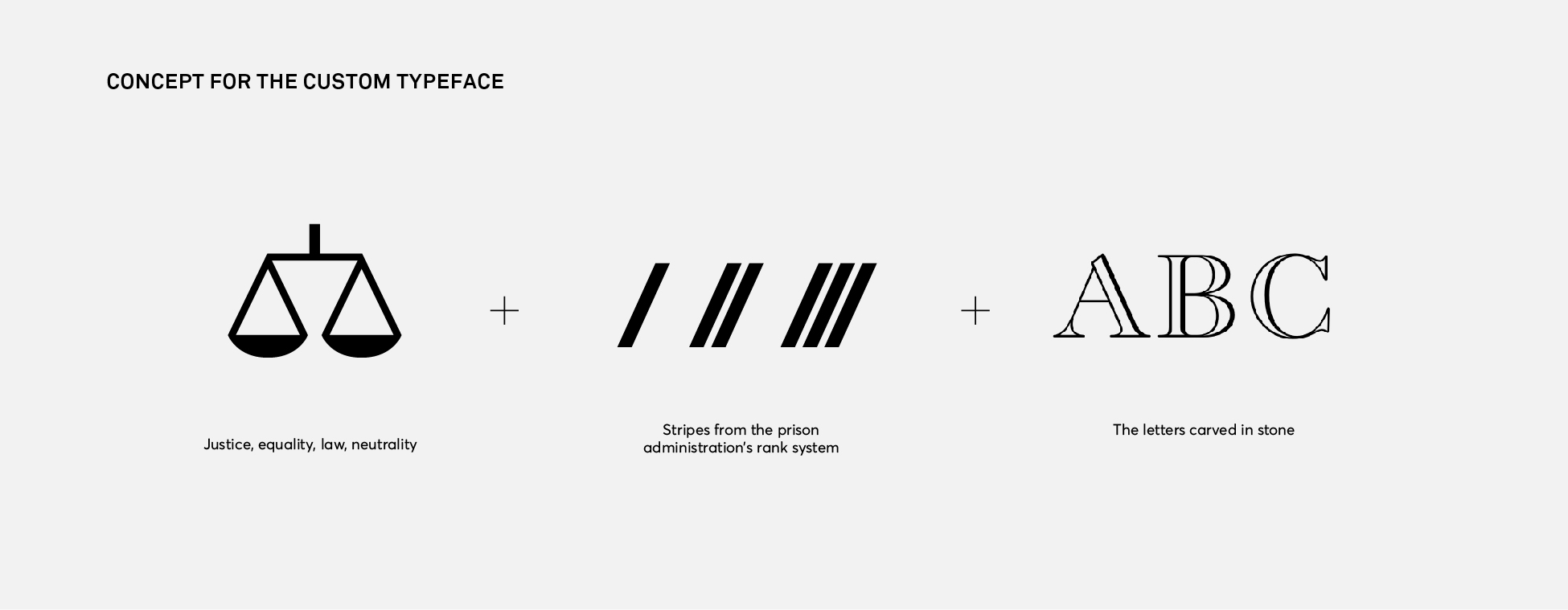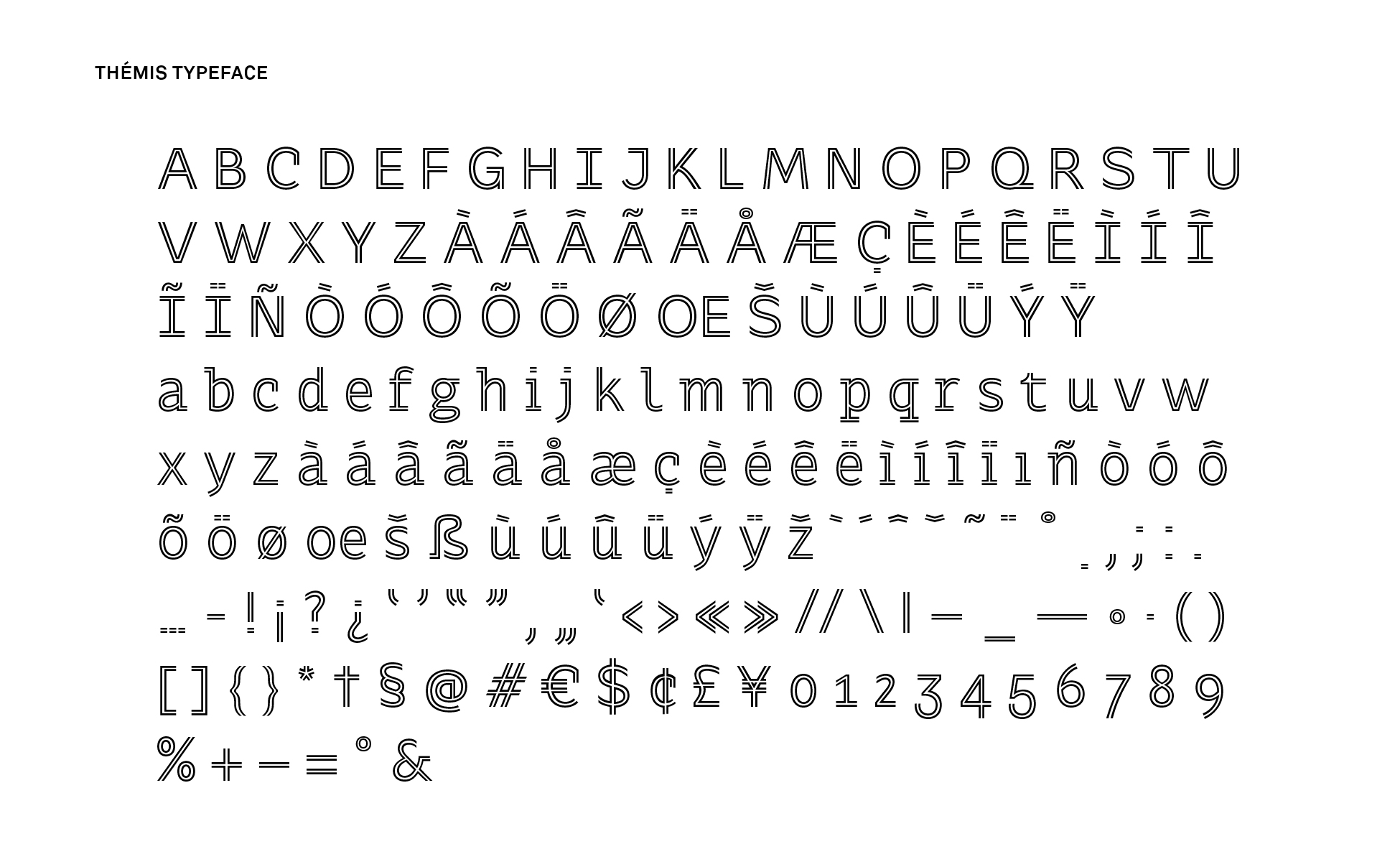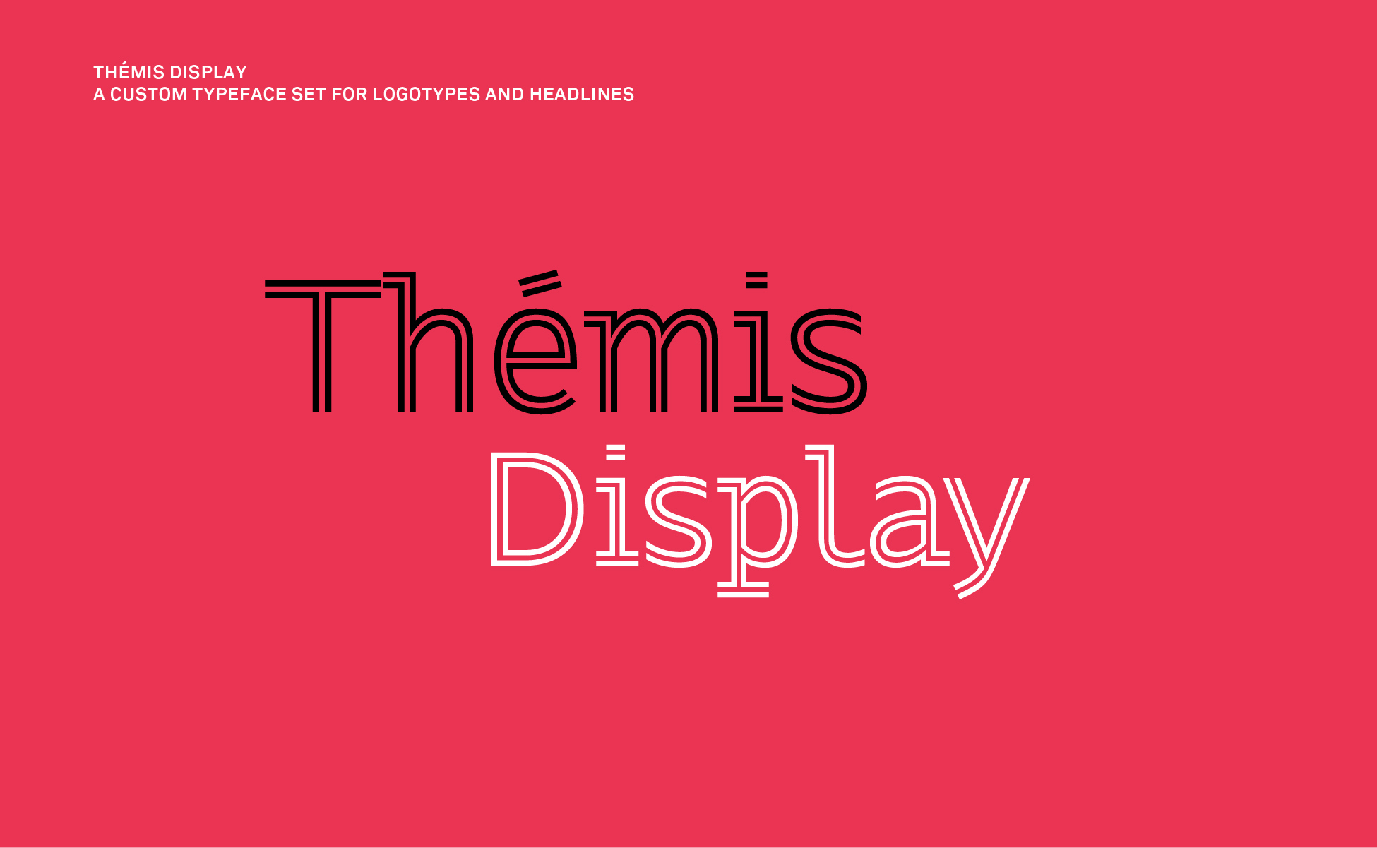 C’est à partir du design de cette typographique exclusive que c’est déployé l’ensemble de la nouvelle charte graphique du Ministère de la Justice. Nous avons nommé ce caractère "Thémis", en référence à la Déesse grecque incarnant la Justice qui est souvent représentée par une balance : symbole d’équilibre et de nécessaire impartialité de la justice. Le dessin du caractère typographique s'est construit sur la forme équilibrée du signe égal. Il fait également référence aux rayures présentes sur les uniformes indiquant les grades de l’administration pénitentiaire. Rappel à la forme des lettres gravées sur la pierre il fait référence au premier support de représentation de la loi. La typographie "Thémis" arbore un style que l'on peut qualifier à la fois de "in line" et "semi-sérif" qui lui donne une très forte personnalité.