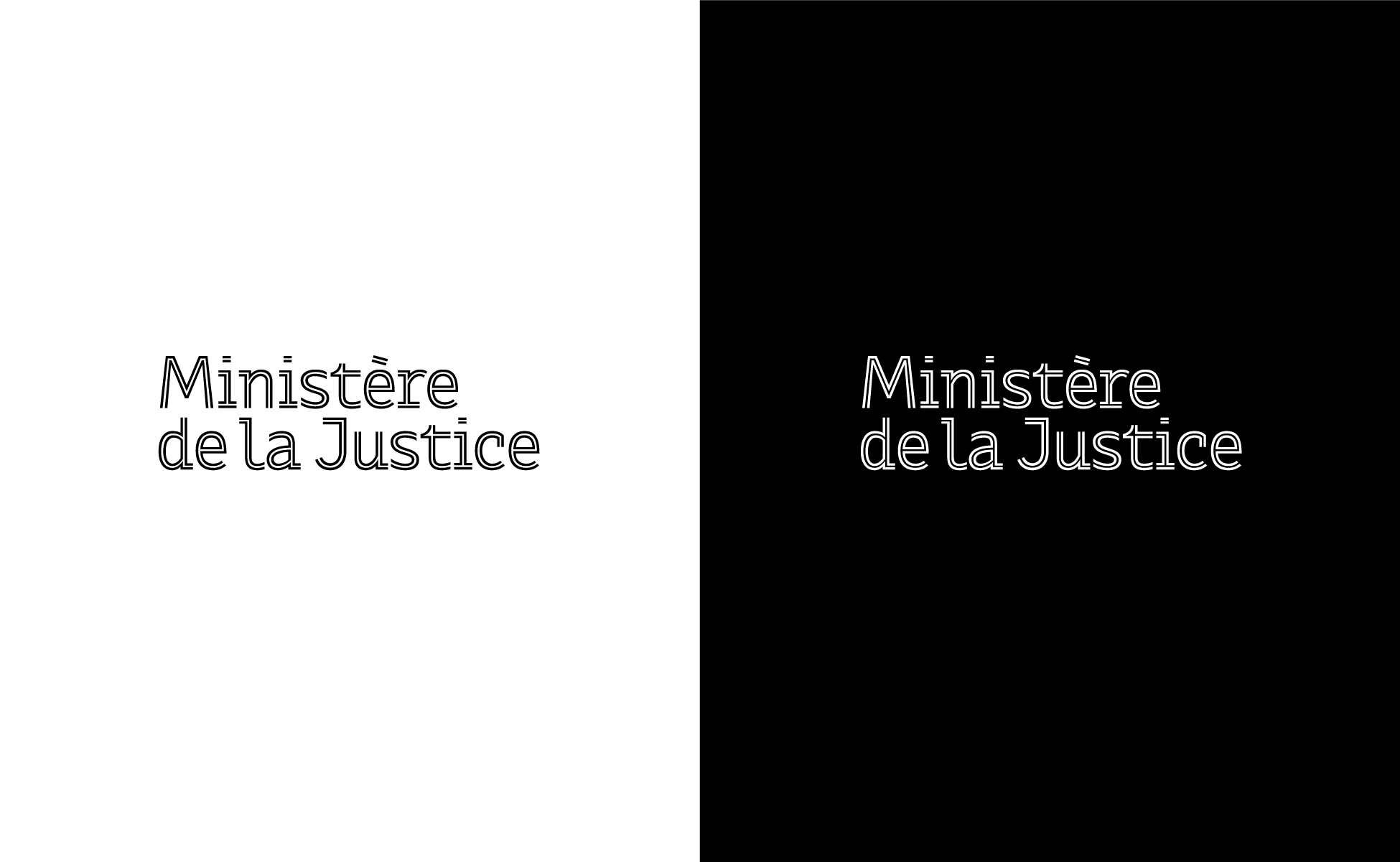 Avec cette nouvelle identité visuelle, les communications du Ministère de la Justice sont facilement identifiables. Le système proposé bien qu’éminemment institutionnel et statutaire, se conçoit avec modularité et donne un rythme attrayant aux communications. La typographie Thémis est la clé de voûte de cette charte graphique. Elle incarne à elle seule l'idée de justice et se positionne comme un signe graphique marquant.