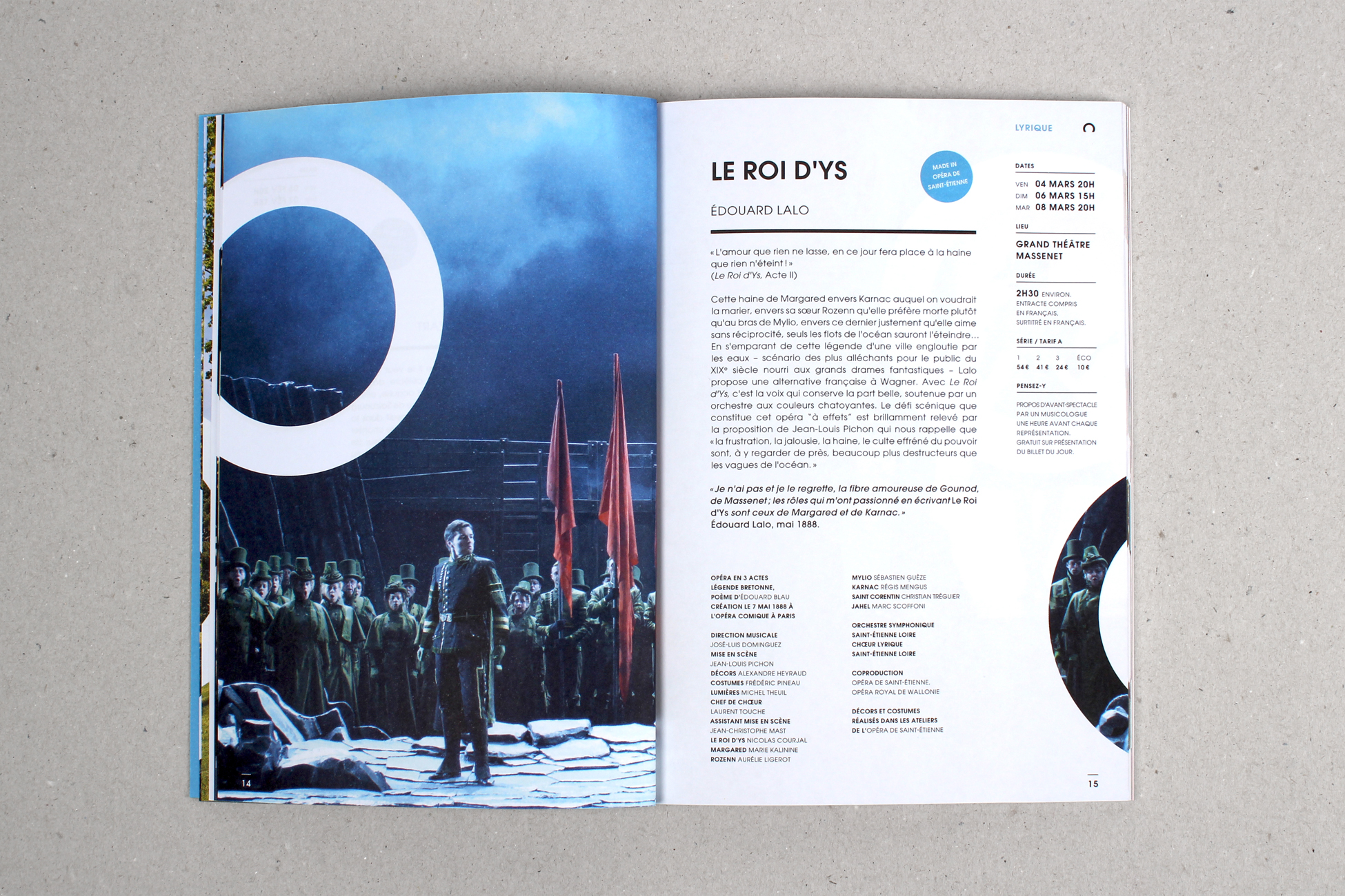 Avec plus de 150 levers de rideau pour près de 60 spectacles durant la saison 14-15, l’Opéra de Saint-Étienne est une structure culturelle d’importance, l’un des acteurs principaux de la vie culturelle stéphanoise. Voici la nouvelle identité visuelle que nous avons conçue pour eux.