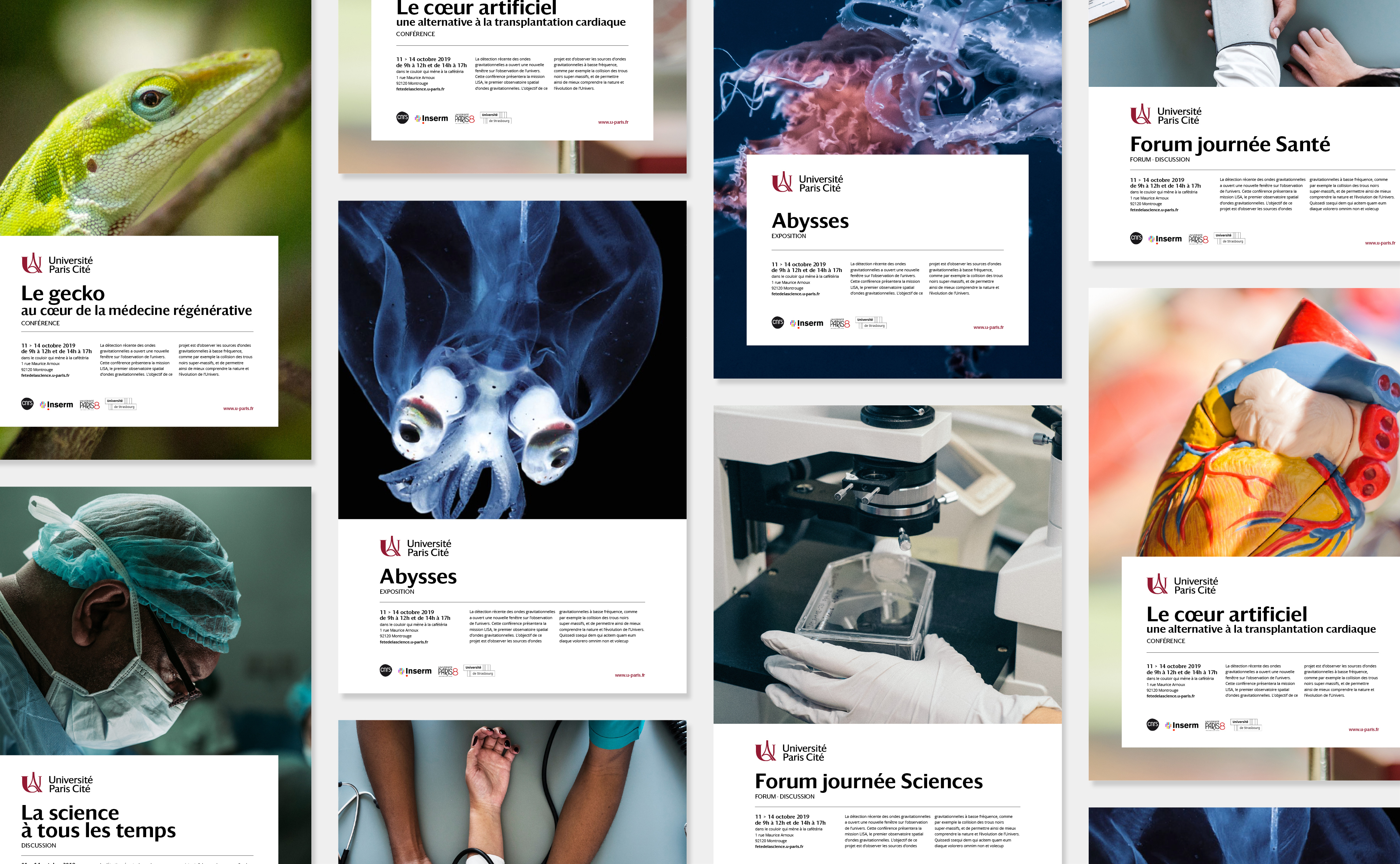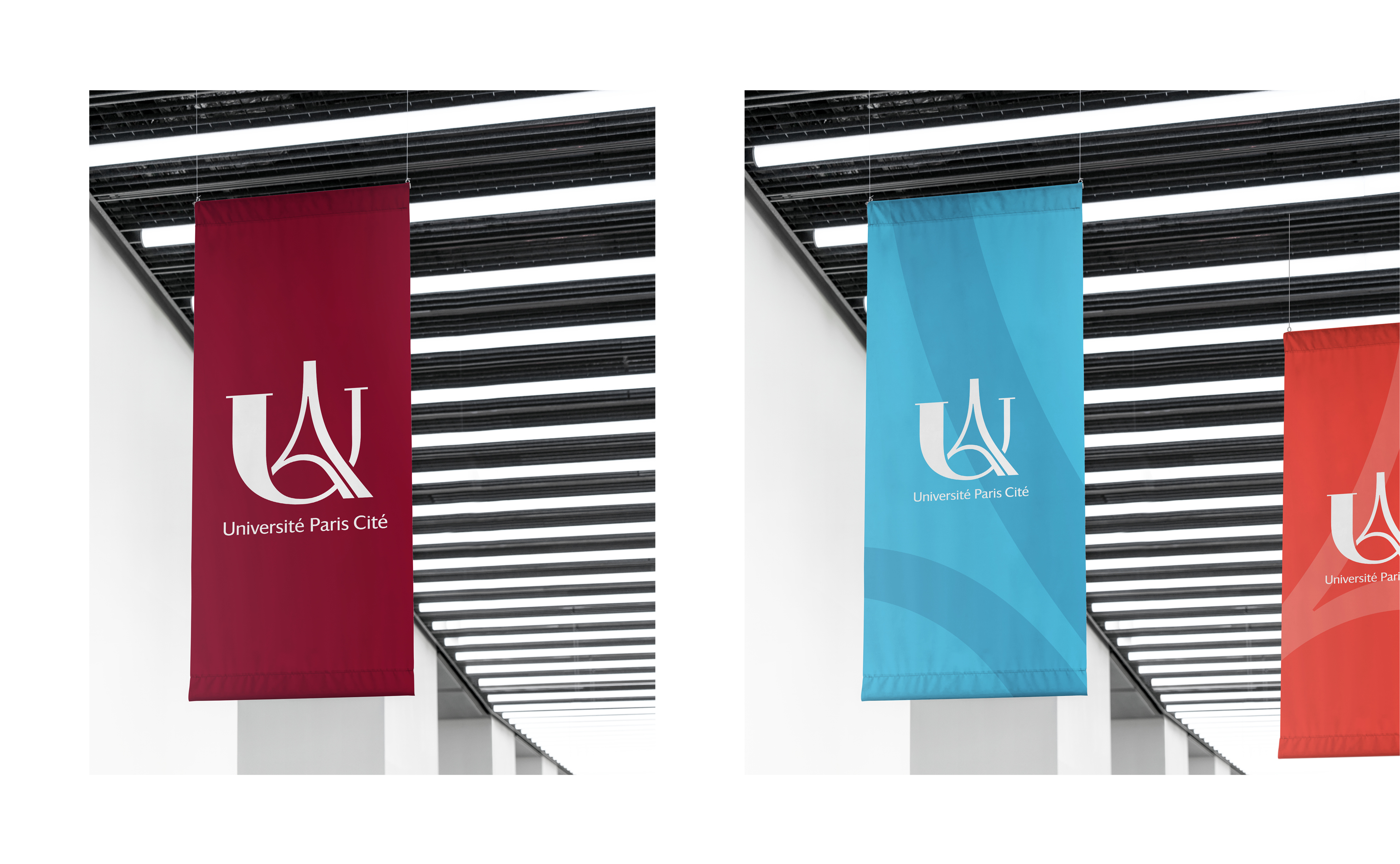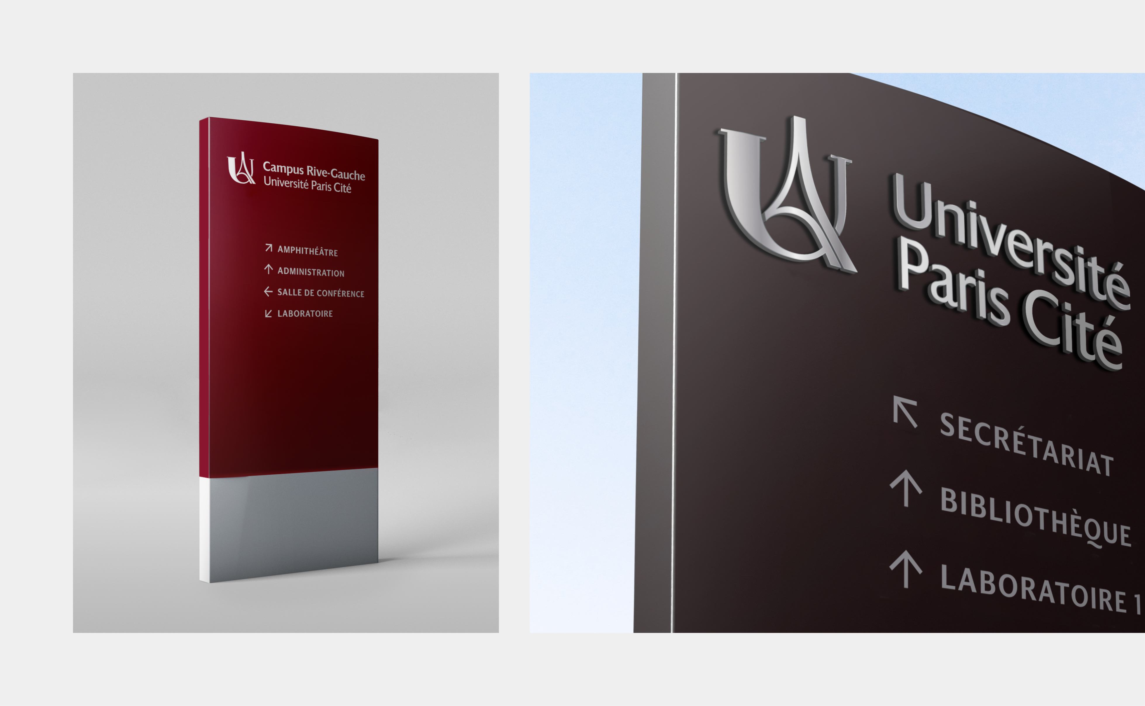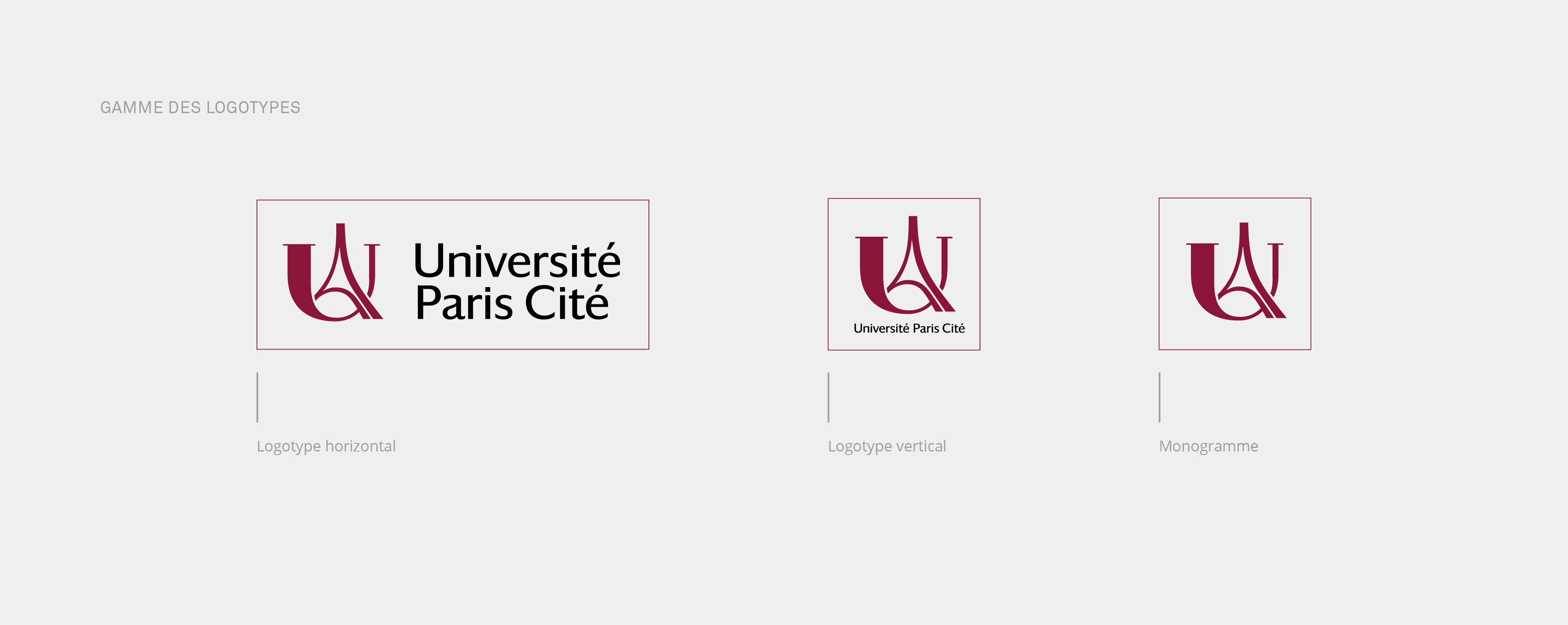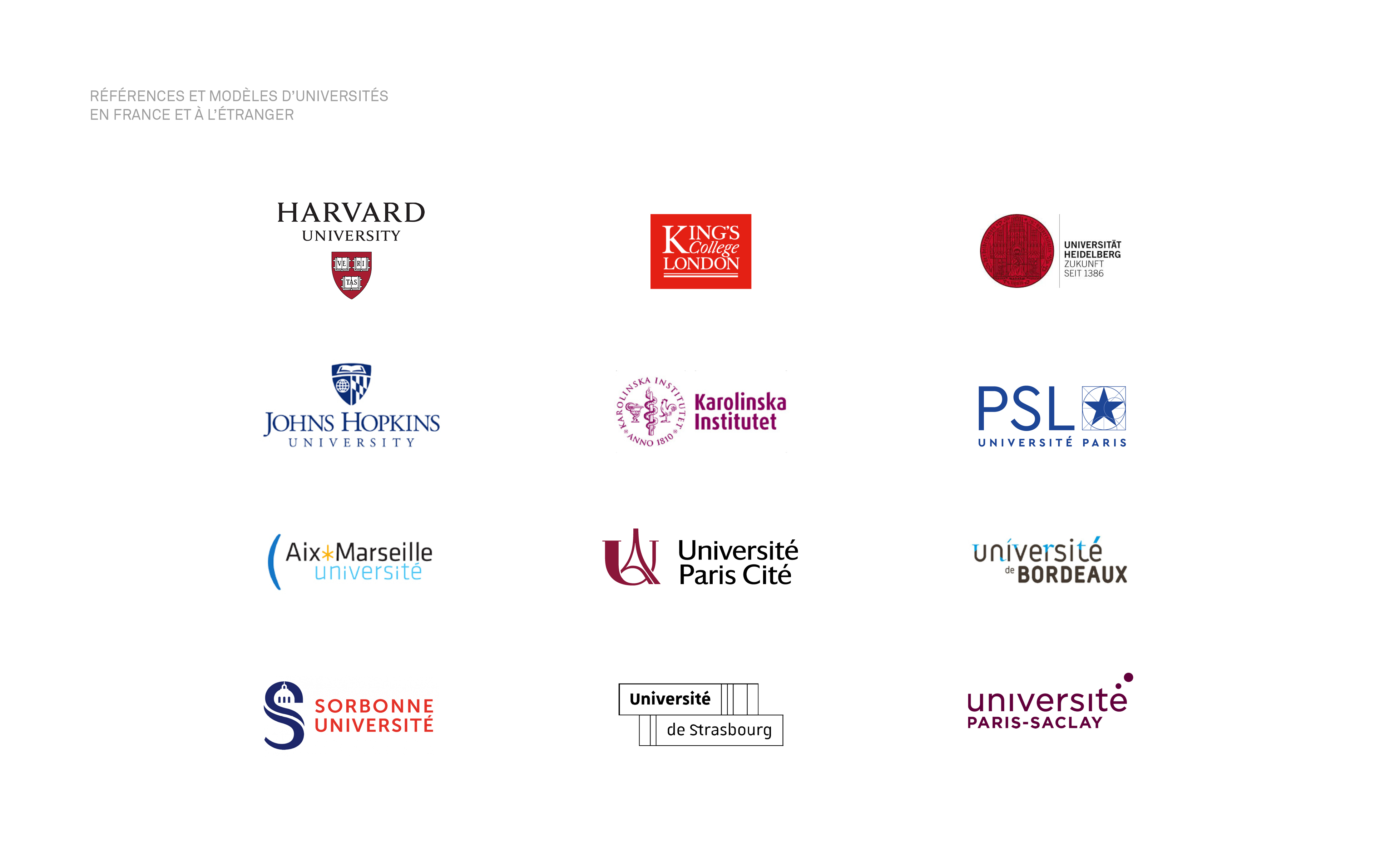 Trois axes stratégiques d'identité visuelle ont émergé suite aux phases de concertations et de workshops avec les équipes de l'université. Certains cherchant à réinventer l'imaginaire parisien par une esthétique technologique destinée à communiquer l'idée d'innovation. D'autres à l'inverse puisant dans le panorama de signes culturels parisiens pour ancrer le projet historiquement et territorialement. L'opposition entre tradition et innovation fut l'occasion de débats passionnés et passionnants entre les membres du comité de pilotage et Graphéine. L'orientation "héritage" fut finalement privilégiée. Elle est le positionnement le plus efficace pour hisser le rassemblement à la hauteur des plus grands campus universitaires anglo-saxons et mondiaux.