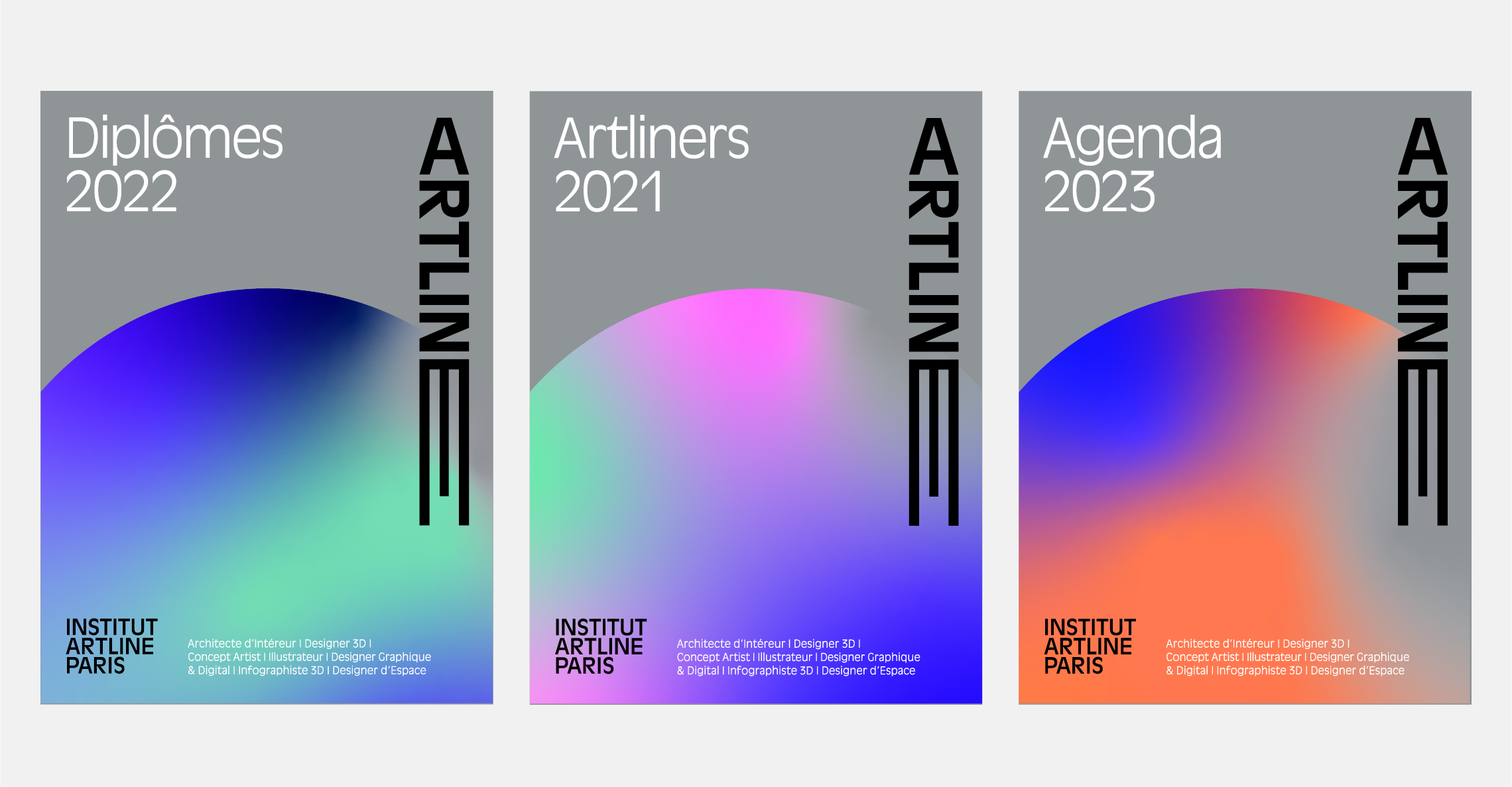Cette identité visuelle fait référence à l’espace, en vous inscrivant à l’Institut Artline vous faites partie d’un équipage qui décolle et s’envole suivant une trajectoire, celle de la connaissance et de la créativité.