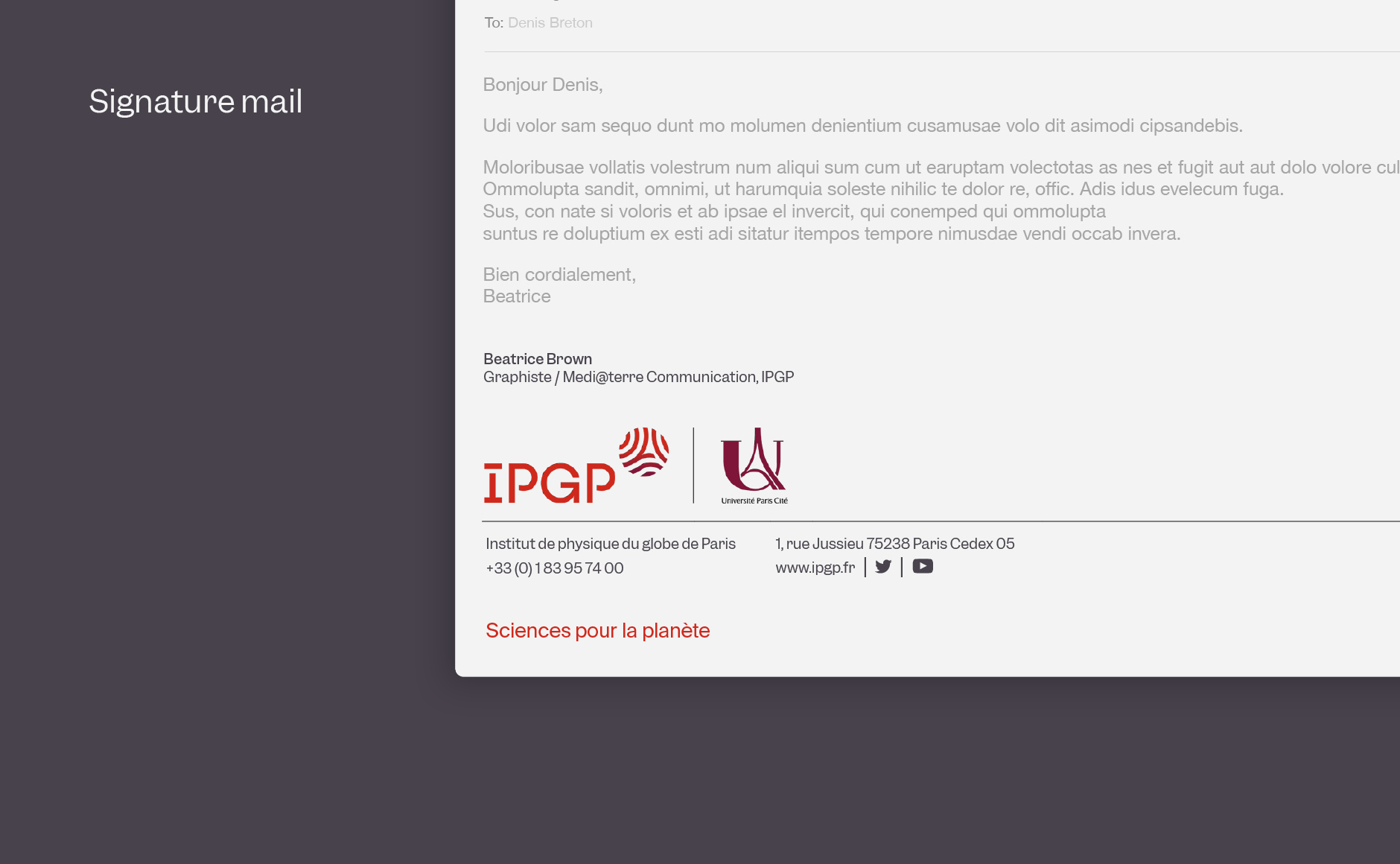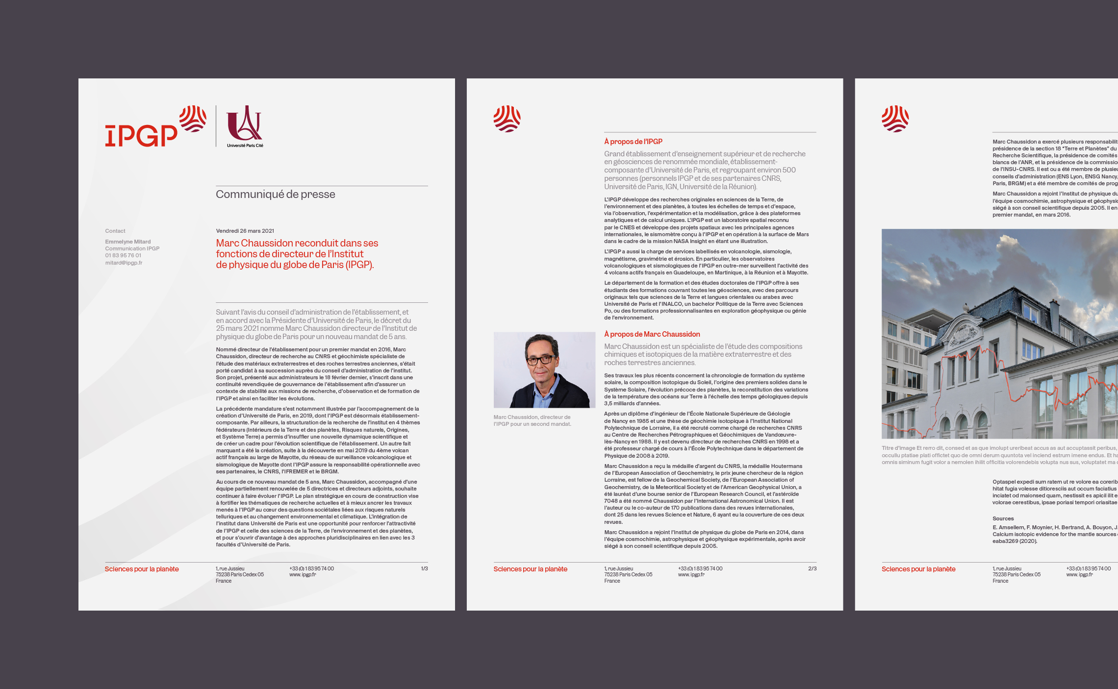 Avec cette nouvelle identité visuelle, l’IPGP est maintenant plus lisible est plus intemporelle ; elle gagne en crédibilité. Désormais, son identité visuelle associée à celle de ses paires traduit véritablement le caractère innovant de l’institution. Sa communication déploie un langage graphique flexible et reconnaissable pour une meilleure identification à l’international.