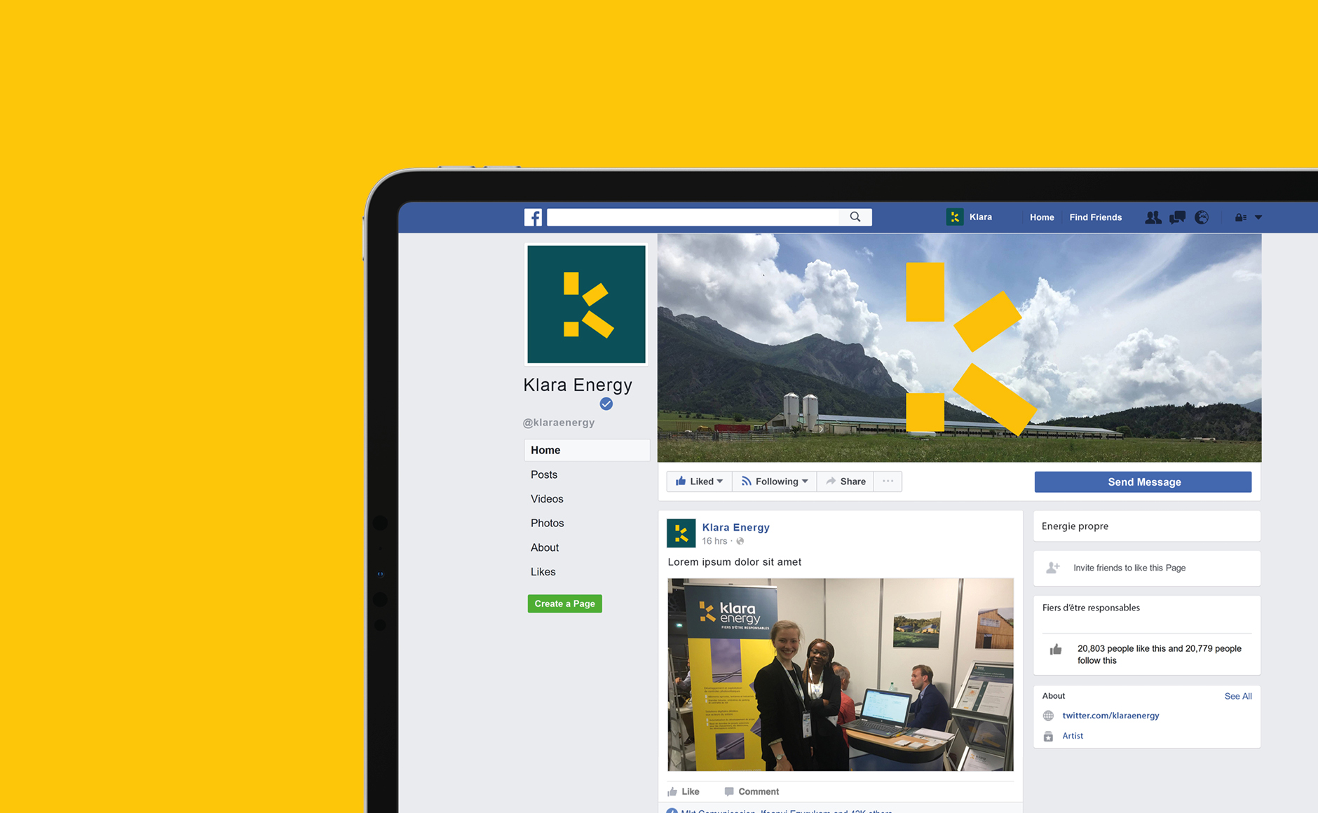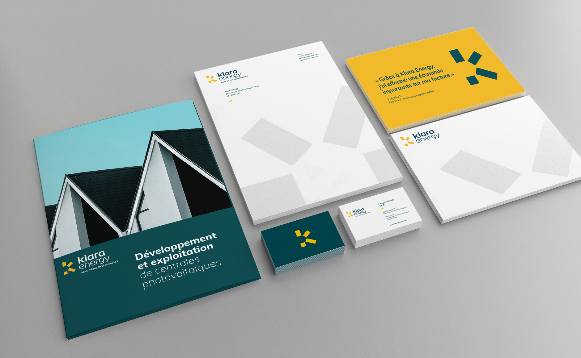 Klara Energy a pour objectif de développer un territoire de marque qui respecte et valorise à la fois le savoir-faire technique d’ingénierie énergétique lié à l’installation de panneaux photovoltaïques, ainsi que l’agilité et la simplicité d'utilisation des solutions digitales créées pour les exploiter. L’agence Graphéine a conseillé Klara Energy dans son positionnement stratégique à la fois éditorial et graphique.