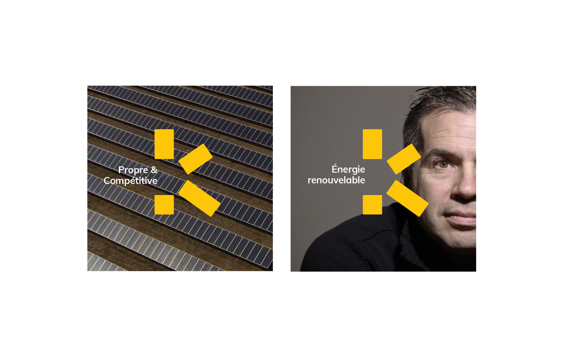 Cette réflexion a tout d’abord abouti à l'évolution du nom de marque. Le passage en anglais du mot "énergie" amorce la volonté d'une image de marque plus ambitieuse. L’étape suivante a été la création du slogan « Fiers d’être responsables » qui communique désormais efficacement l’engagement écologique de la société par la création d'énergies propres.